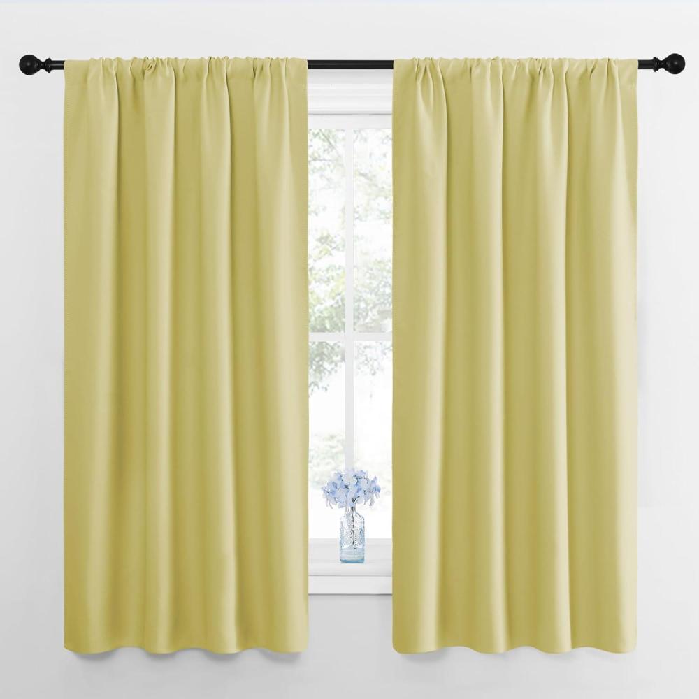 NICETOWN Kitchen Curtains, Short Blackout Curtains & Drapes, Paler Yellow, 34″ Wide by 54″ Long, 2 PCs, Thermal Insulated Blackout Curtain Panels for Kids Room, Play Room