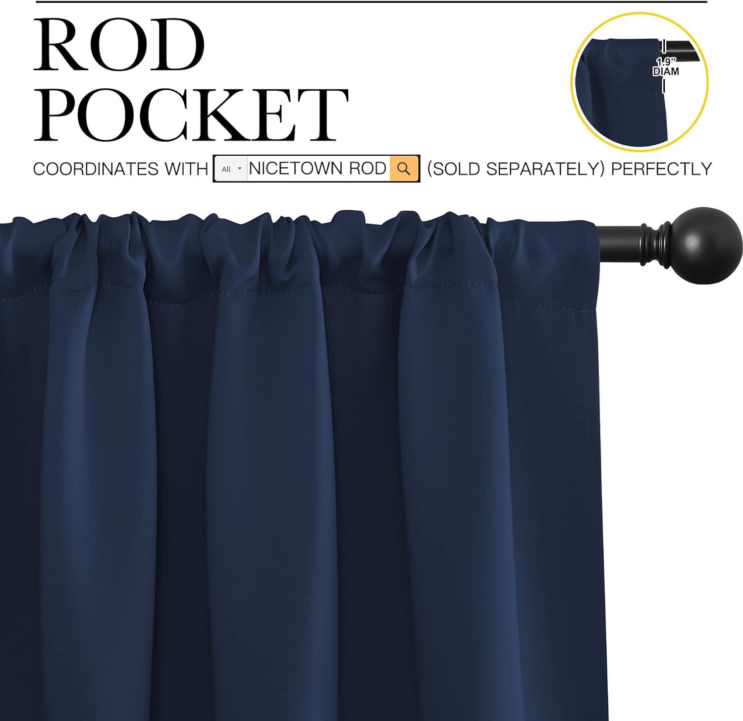 ELEGANT DESIGN: 2 panels per package. Each Blackout Curtain Panel measures 42 inches wide x 54 inches long. The NICETOWN drapery is constructed with rod pocket, fitting the curtain rod of your choice up to 2 inches in diameter, making the curtains easy to install and slide.