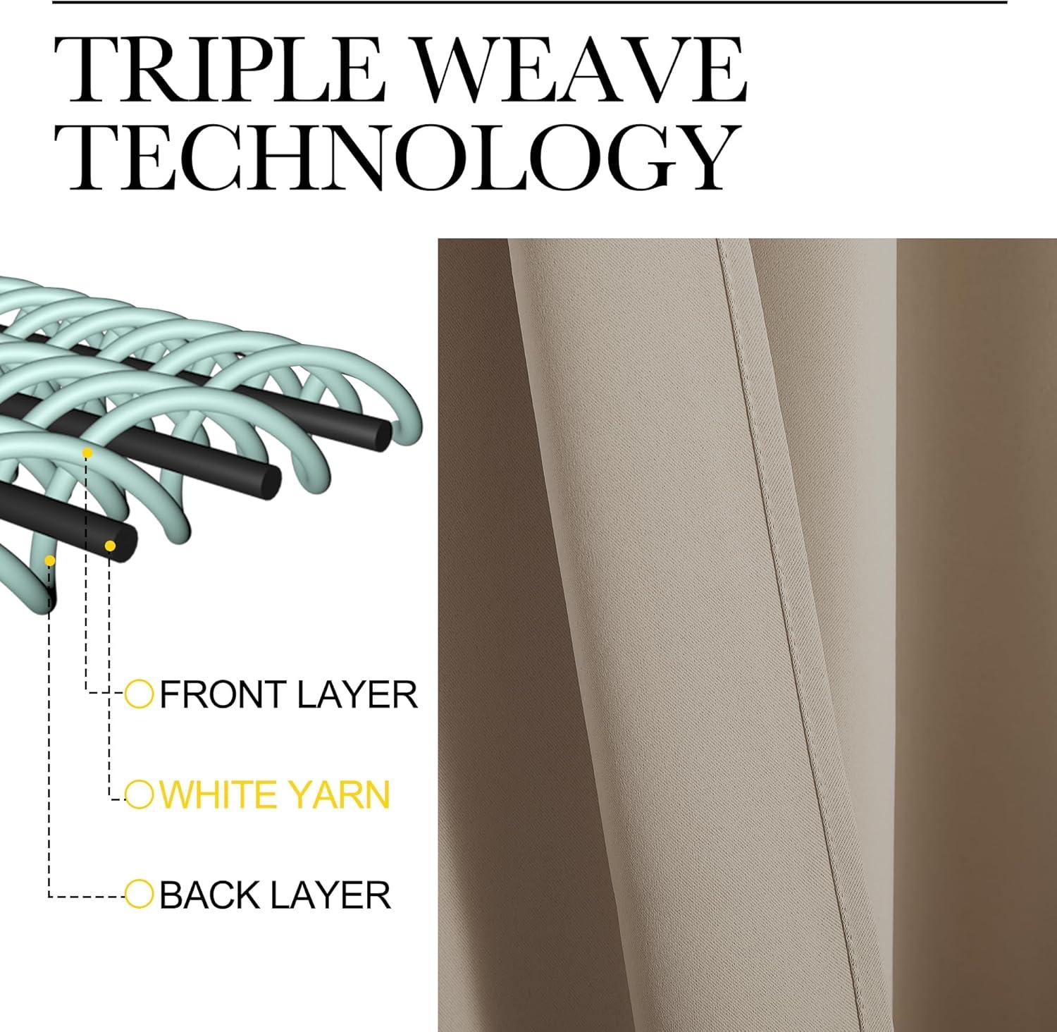 AMAZING MATERIAL: This unique, soft and heavy-duty blackout fabric is woven with three-layer construction. The middle layer of black yarns creates a curtain panel that is excellent for blocking out 85%-99% of light (Dark color works better on blocking light) while providing privacy.