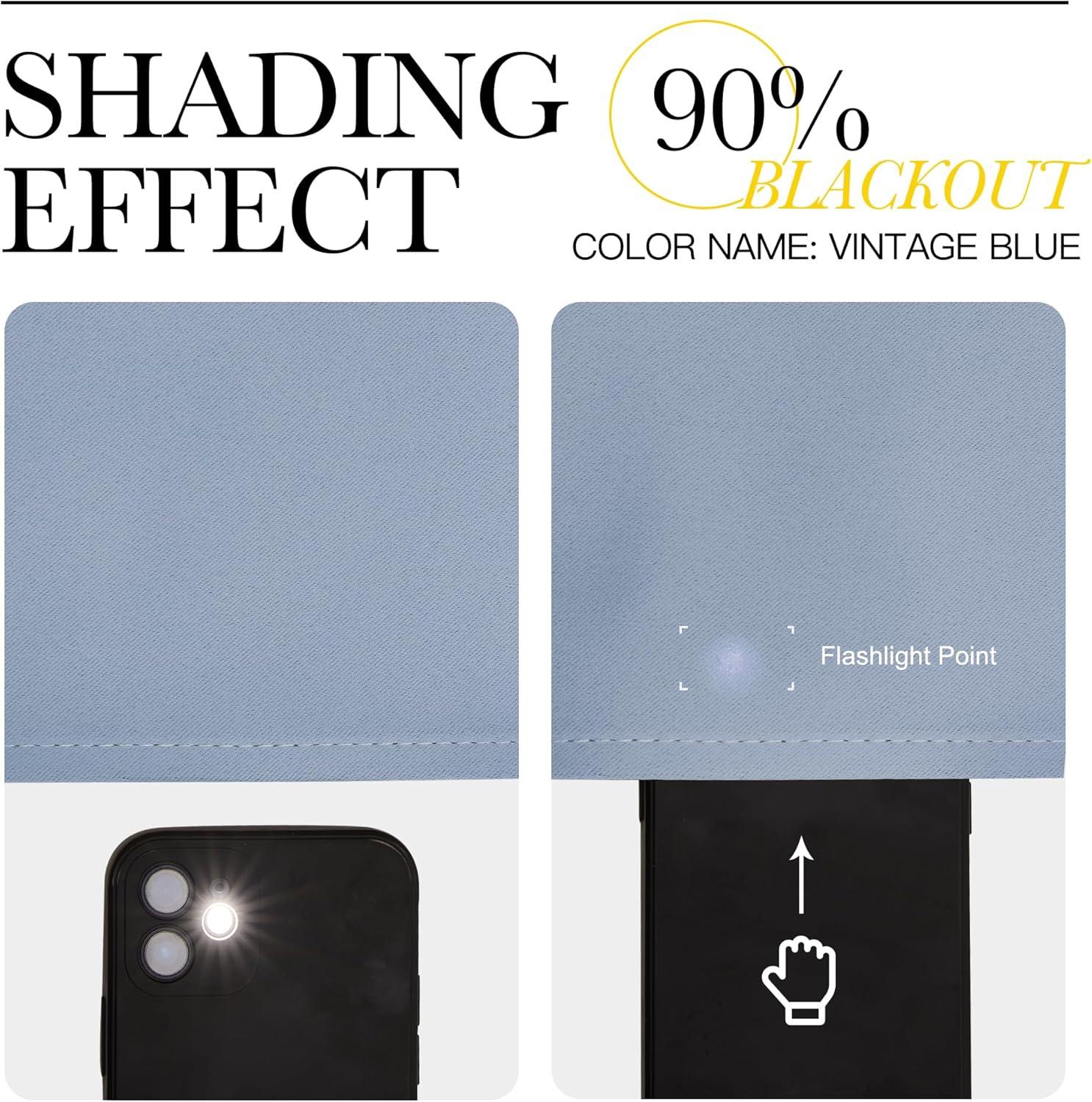 imageNICETOWN Kitchen Curtains Short Blackout Drapes Vintage Blue 34 in x 45 in W x L Set of 2 Thermal Insulated Rod Pocket Window Treatment Draperies for Nursery