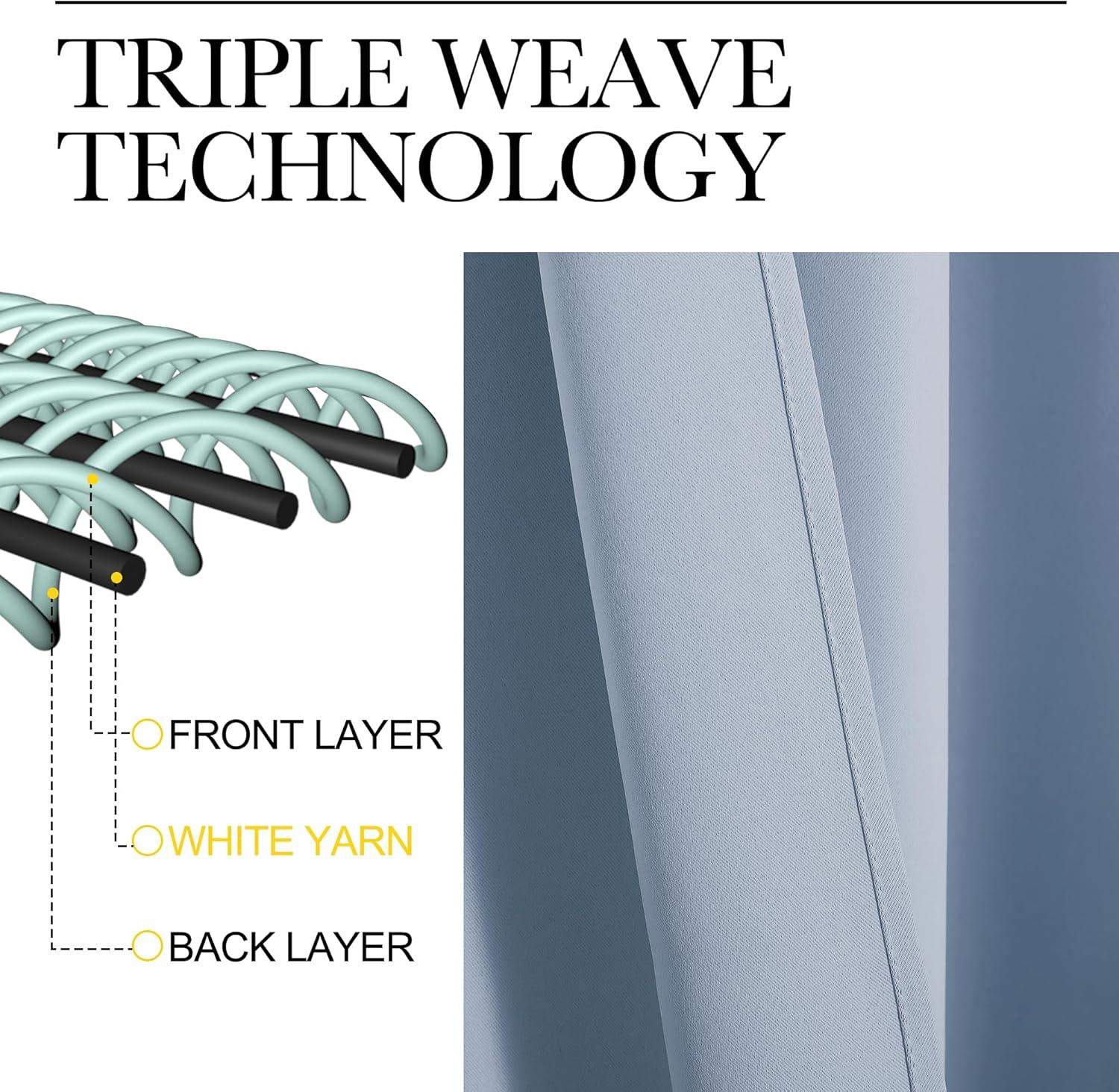 AMAZING MATERIAL: This unique, soft and heavy-duty blackout fabric is woven with three-layer construction. The middle layer of black yarns creates a curtain panel that is excellent for blocking out 85%-99% of light (Dark color works better on blocking light) while providing privacy.