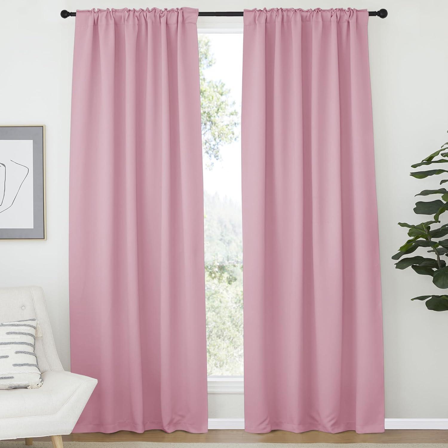 NICETOWN Light Reducing Curtain Panels Window Draperies – (Rouge Pink Color) 52×84 inch, 2 Pieces, Insulating Room Darkening Drapes for Bedroom