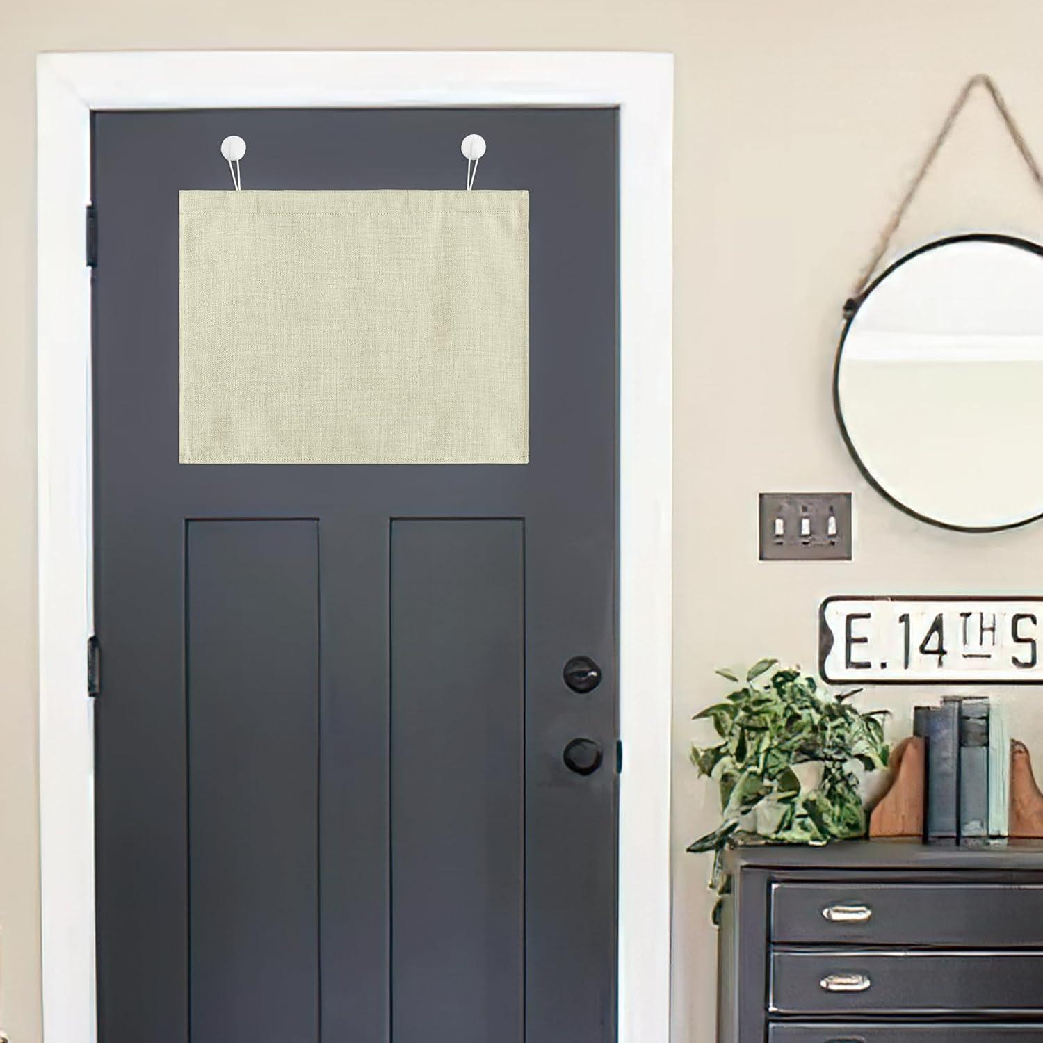 NICETOWN Linen Blackout Classroom Door Curtains, Privacy Classroom Window Covering Thermal Insulate with Self Adhesive Hooks for Patio Glass Front Door, 10 x 30 inches, Grey, 1 Panel(Beige)