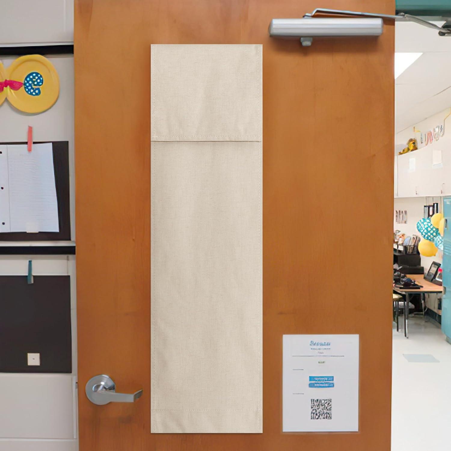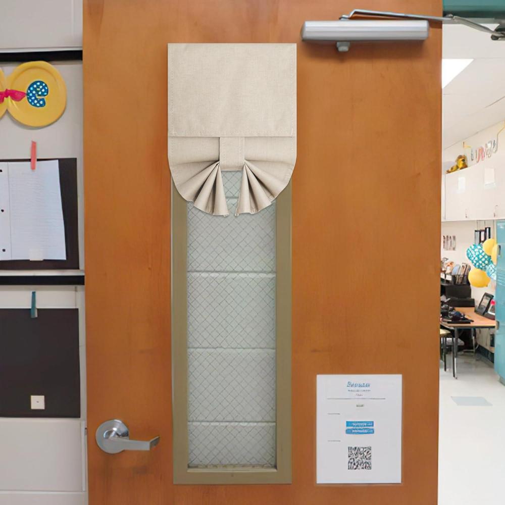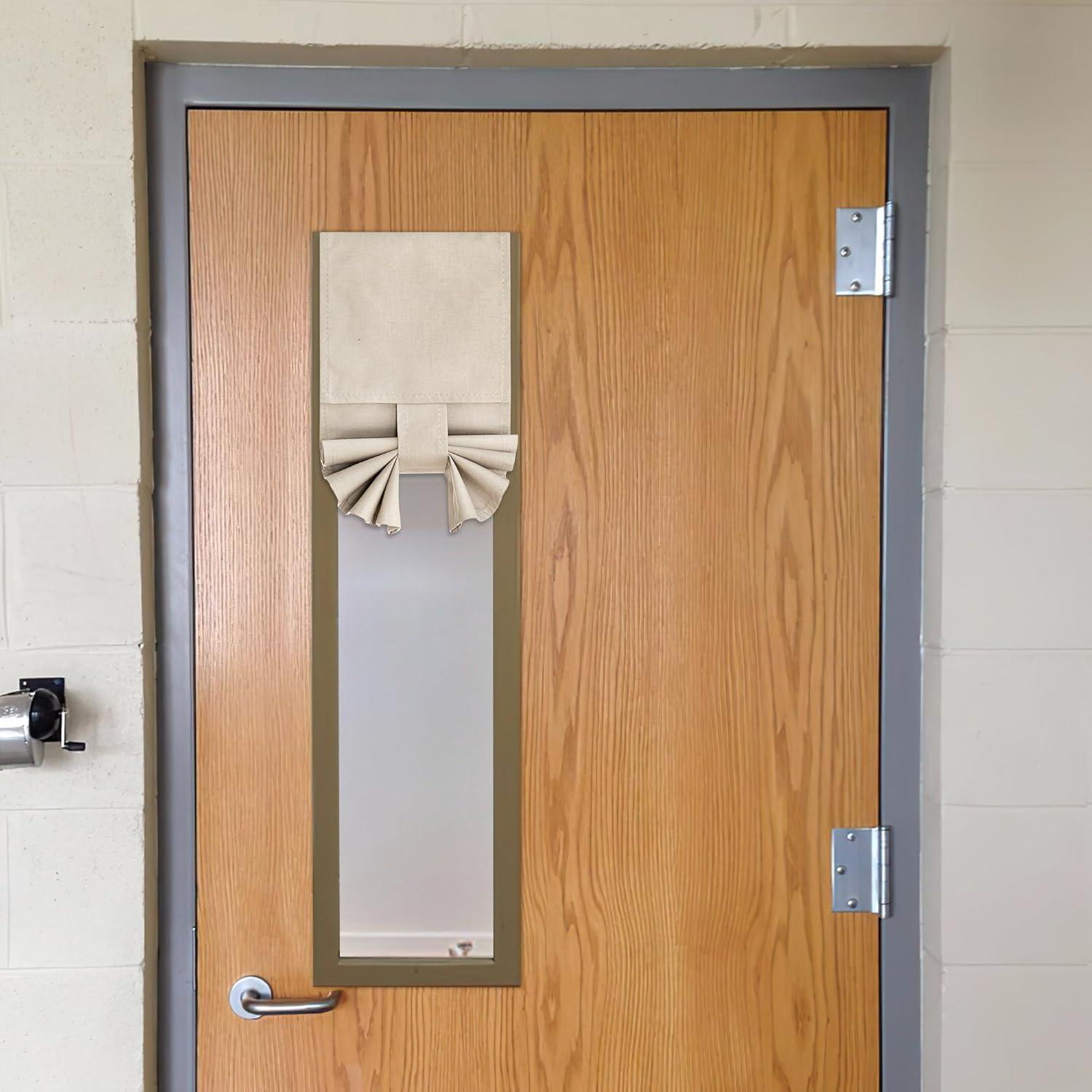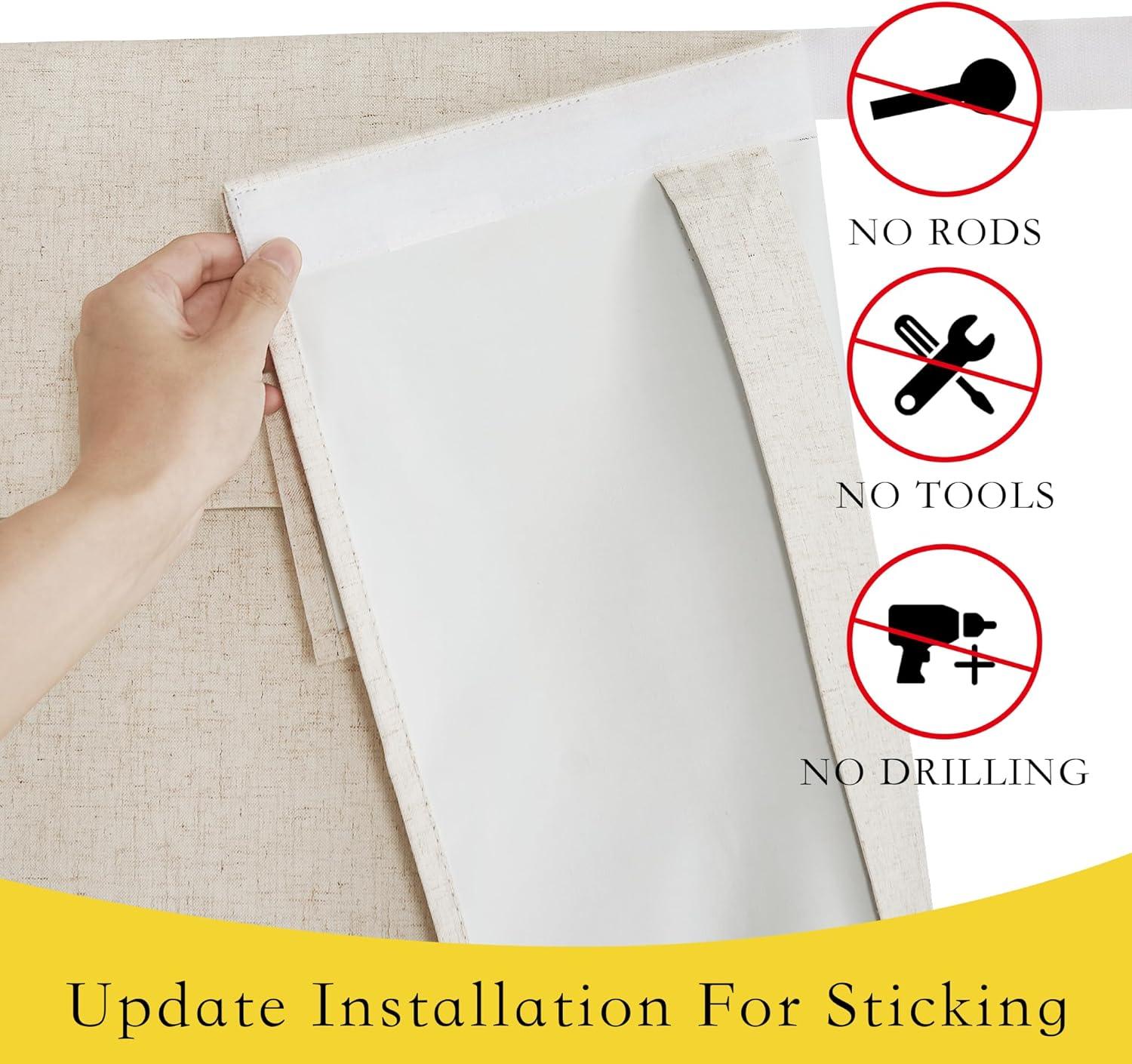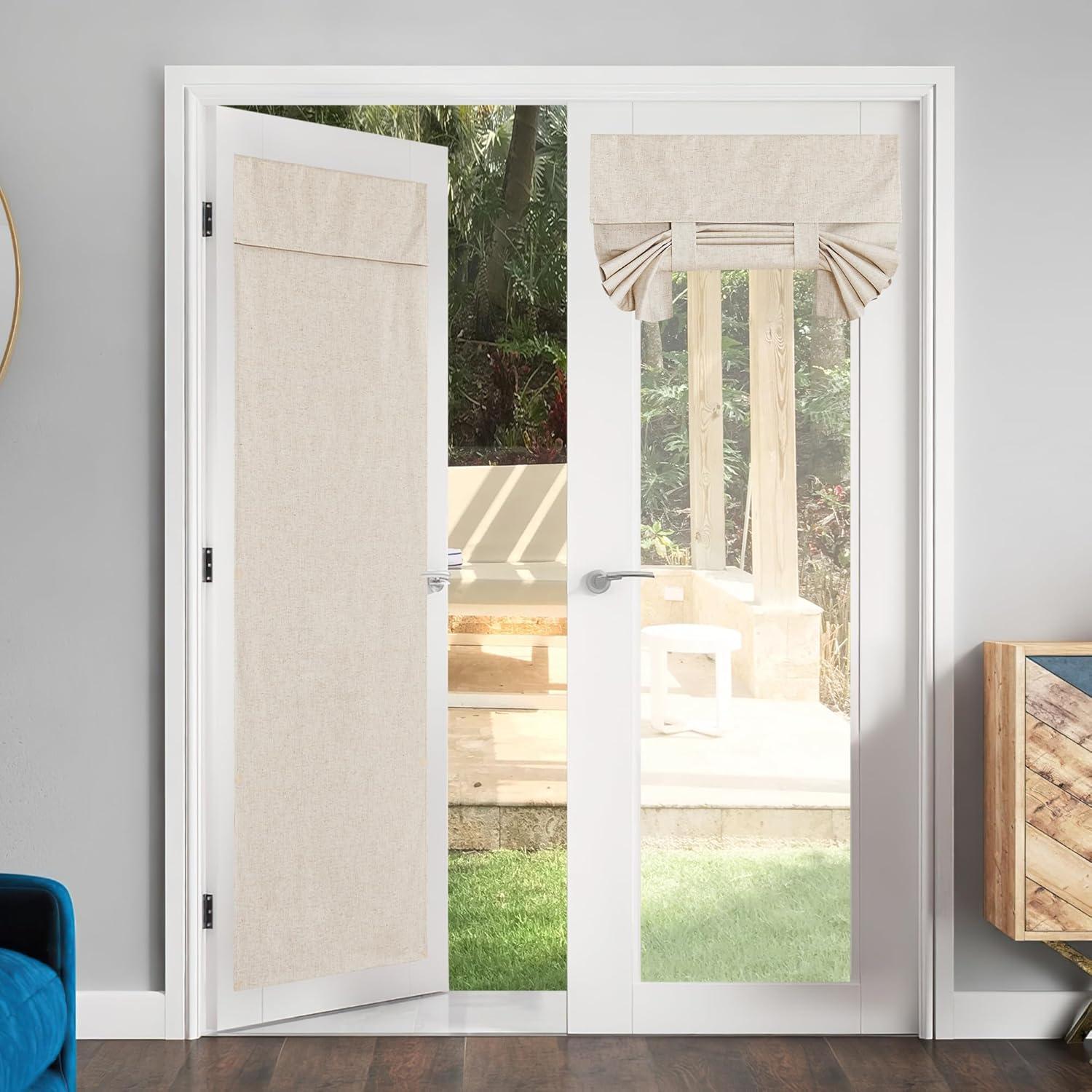 imageNICETOWN Linen Curtain for French Door  100 Blackout Self Adhesive Window Curtain Thermal Insulated Privacy Door Blinds for Sidelight Curtains 26 x 64 inch Long Skylark Blue 1 PCBeige