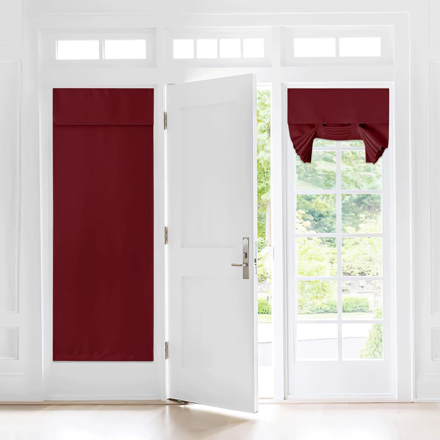 NICETOWN Linen Curtain for French Door - 100% Blackout Self Adhesive Window Curtain Thermal Insulated Privacy Door Blinds for Sidelight Curtains, 26 x 64 inch Long, Skylark Blue, 1 PC(Burgundy Red)
