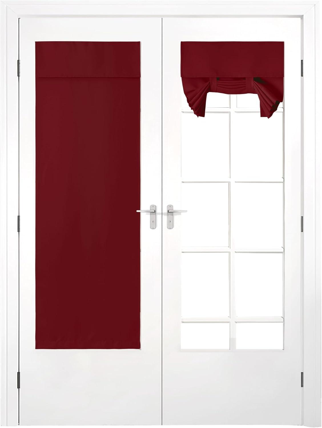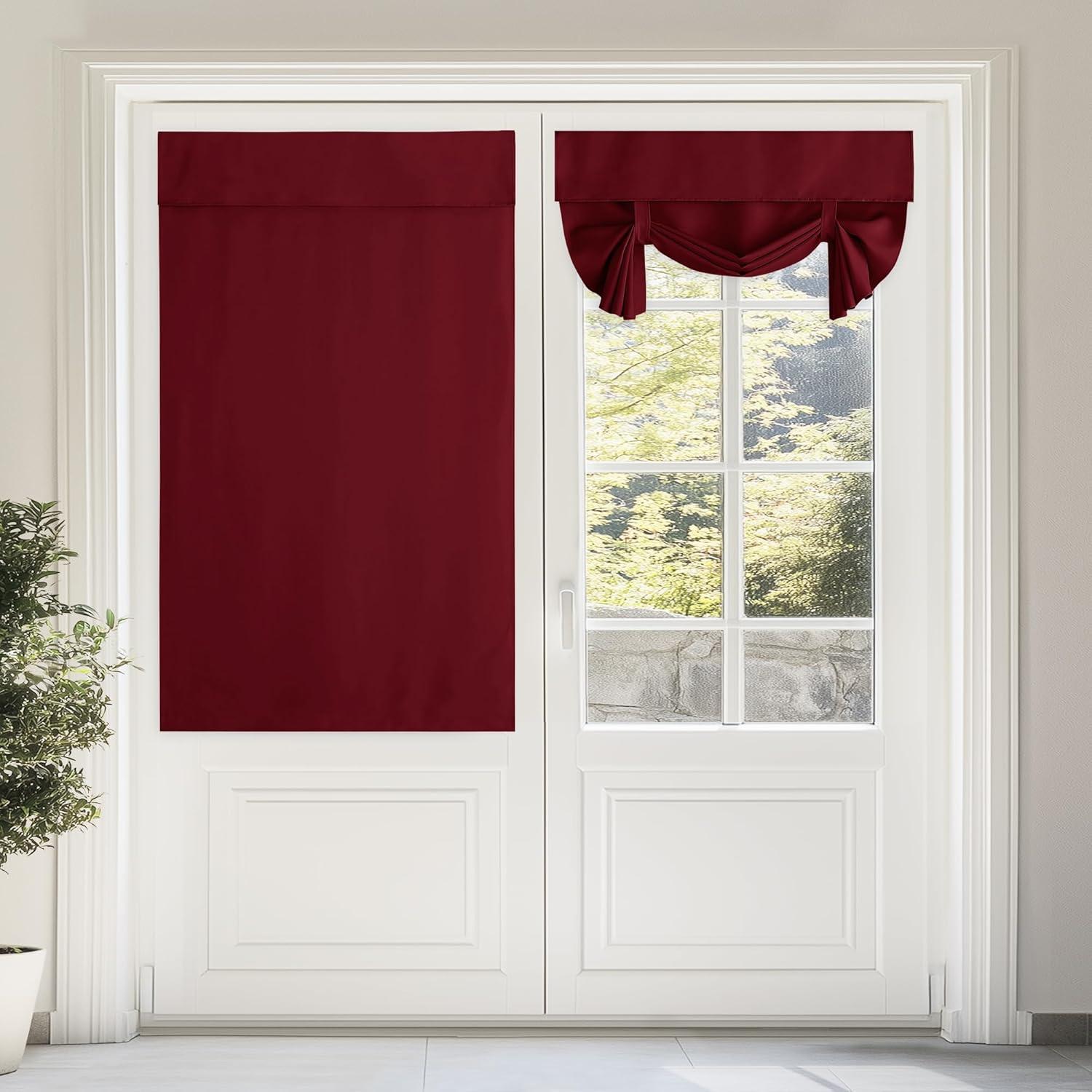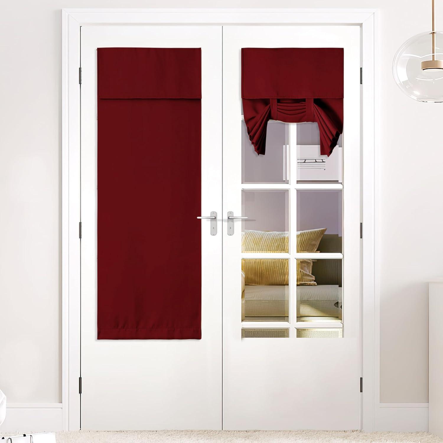 imageNICETOWN Linen Curtain for French Door  100 Blackout Self Adhesive Window Curtain Thermal Insulated Privacy Door Blinds for Sidelight Curtains 26 x 64 inch Long Skylark Blue 1 PCBurgundy Red