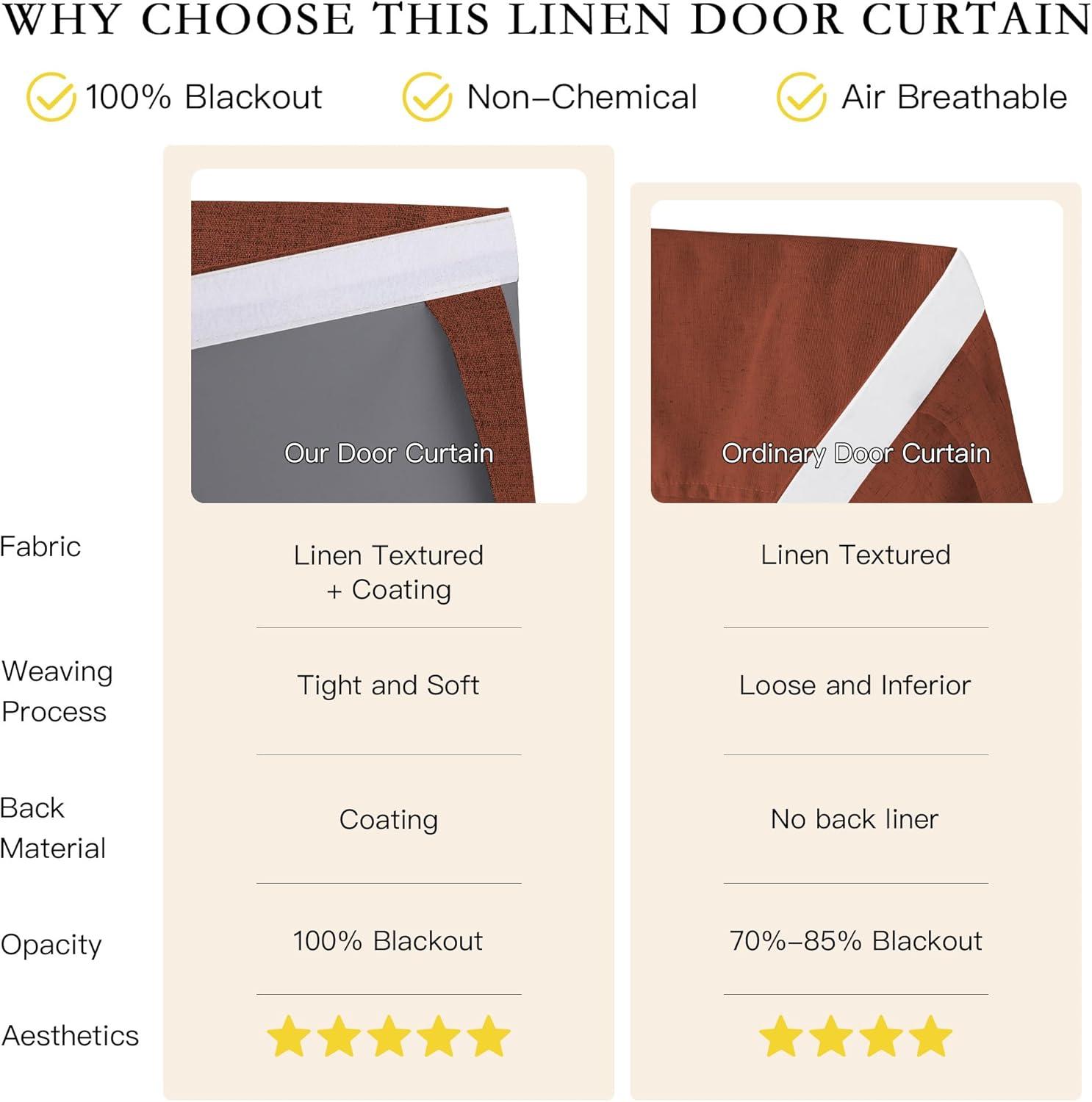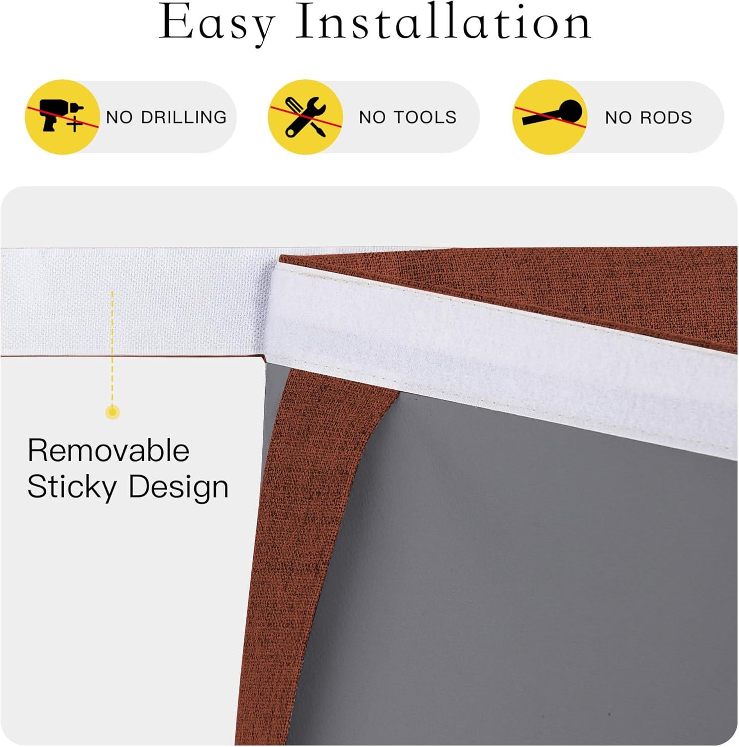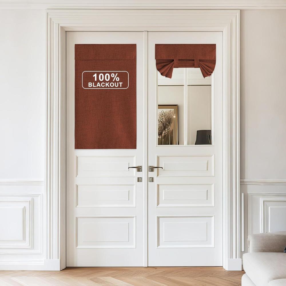 imageNICETOWN Linen Curtain for French Door  100 Blackout Self Adhesive Window Curtain Thermal Insulated Privacy Door Blinds for Sidelight Curtains 26 x 64 inch Long Skylark Blue 1 PCCaramel
