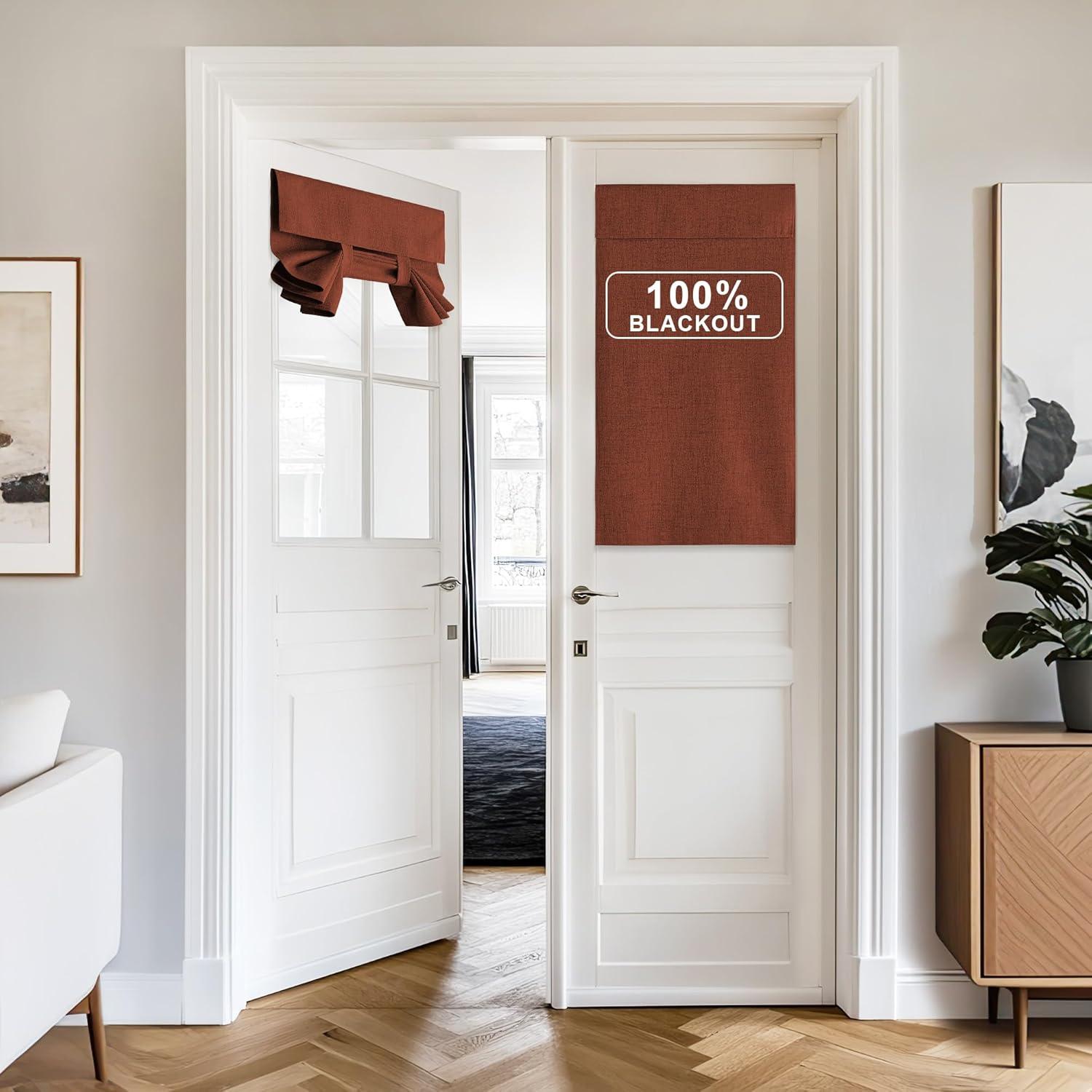NICETOWN Linen Curtain for French Door – 100% Blackout Self Adhesive Window Curtain Thermal Insulated Privacy Door Blinds for Sidelight Curtains, 26 x 64 inch Long, Skylark Blue, 1 PC(Caramel)