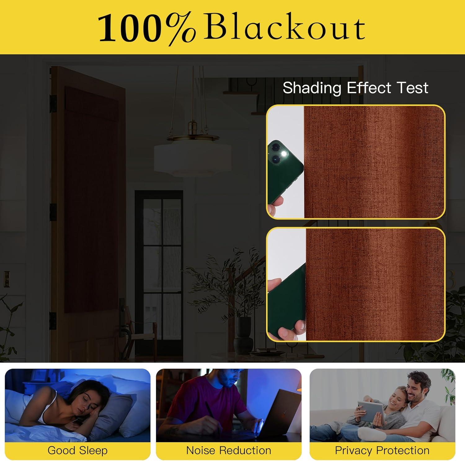 100% Blackout: The real blackout curtains on the market. Linen blackout curtains crafted with white liner backing make the drapes completely keep out the 100% sunlight and UV ray. The greatest benefit is to offer you a real dark environment, bringing you a good night's sleep during the day.