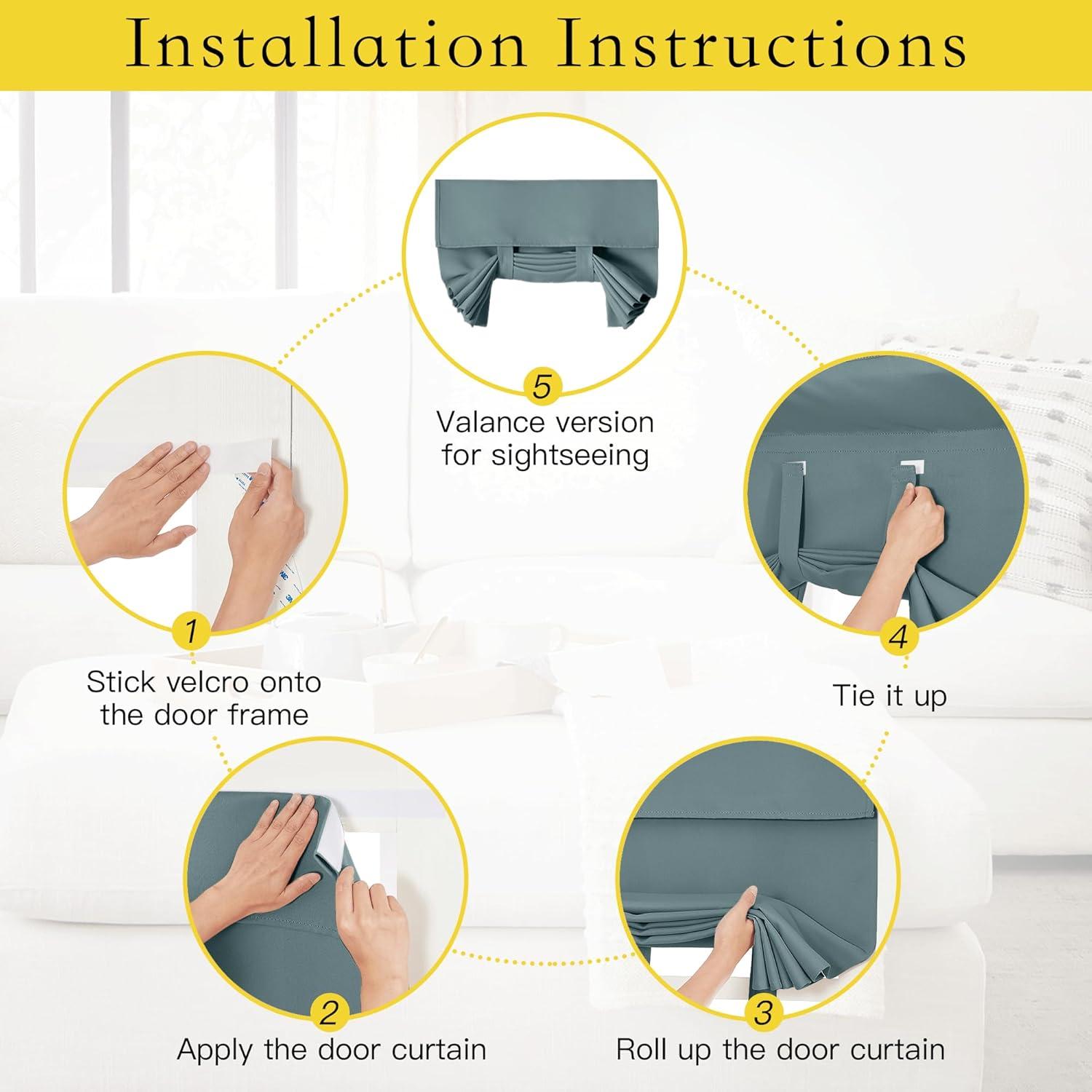 Well Made:Package includes 1 panel door curtain + free sticky strap. The door curtain is finished with sticker for easy to install. The back of the door curtain is also designed rod/pole pocket, to meet your various needs.