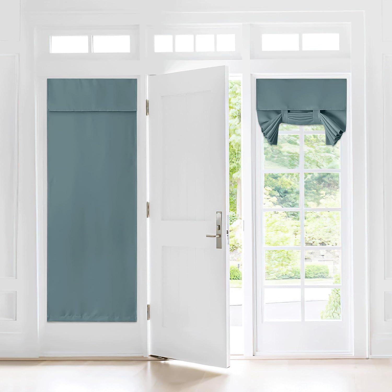 NICETOWN Linen Curtain for French Door - 100% Blackout Self Adhesive Window Curtain Thermal Insulated Privacy Door Blinds for Sidelight Curtains, 26 x 64 inch Long, Skylark Blue, 1 PC(Greyish Blue)