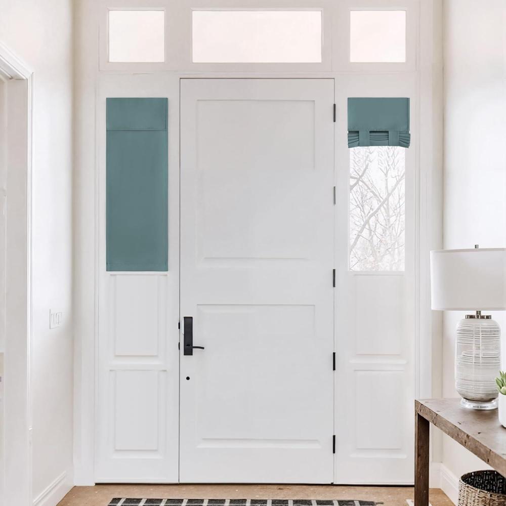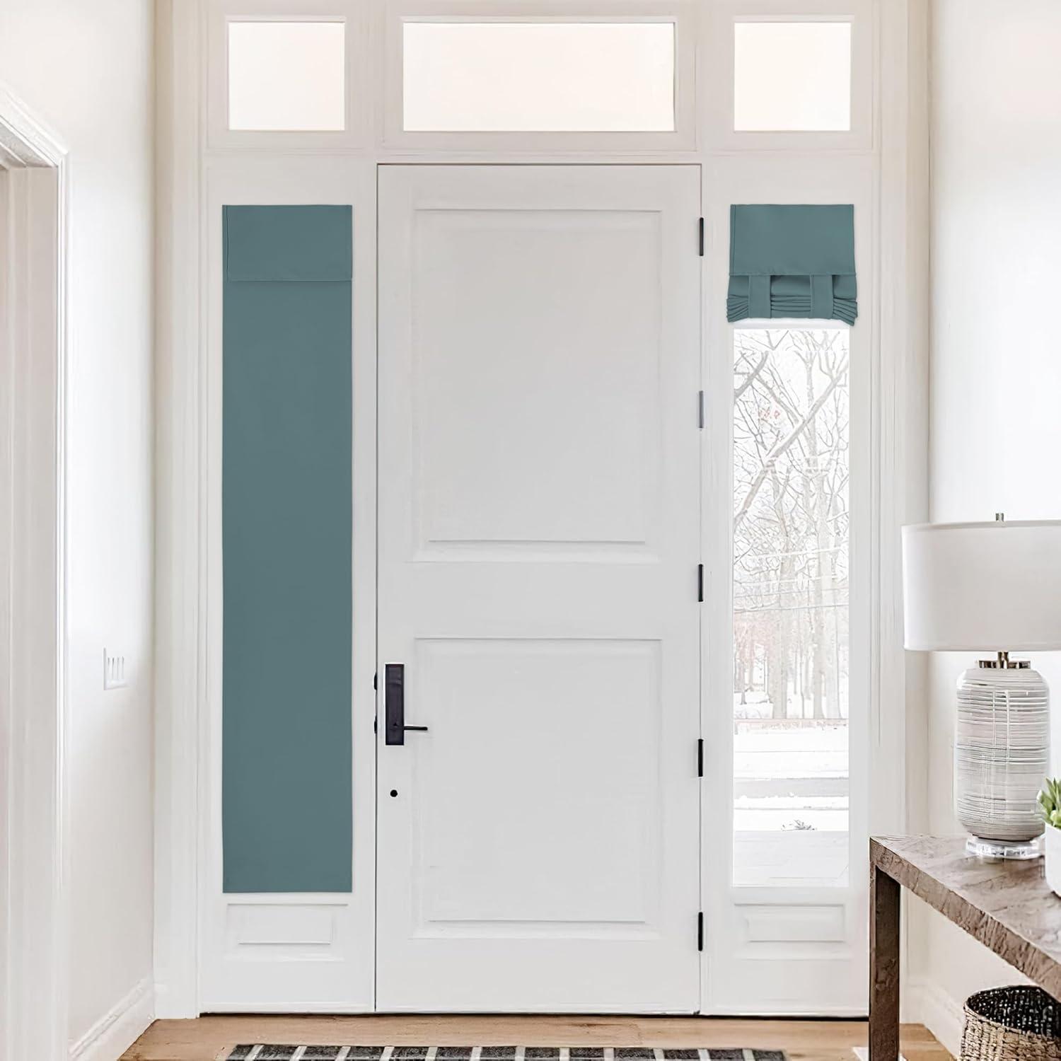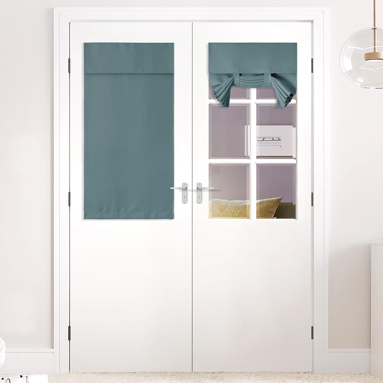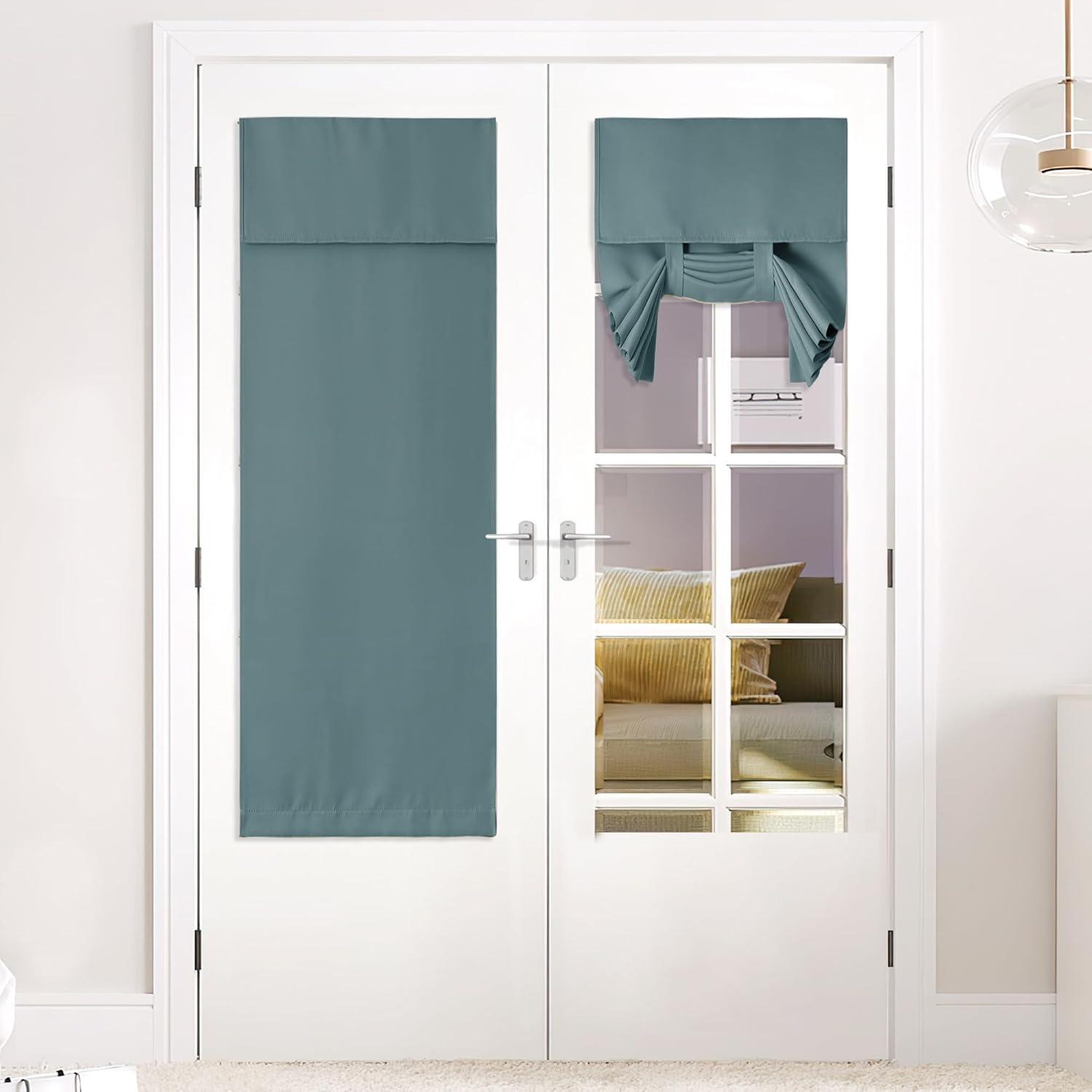 NICETOWN Linen Curtain for French Door – 100% Blackout Self Adhesive Window Curtain Thermal Insulated Privacy Door Blinds for Sidelight Curtains, 26 x 64 inch Long, Skylark Blue, 1 PC(Greyish Green)