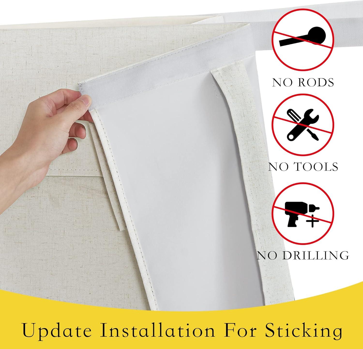 imageNICETOWN Linen Curtain for French Door  100 Blackout Self Adhesive Window Curtain Thermal Insulated Privacy Door Blinds for Sidelight Curtains 26 x 64 inch Long Skylark Blue 1 PCOatmeal