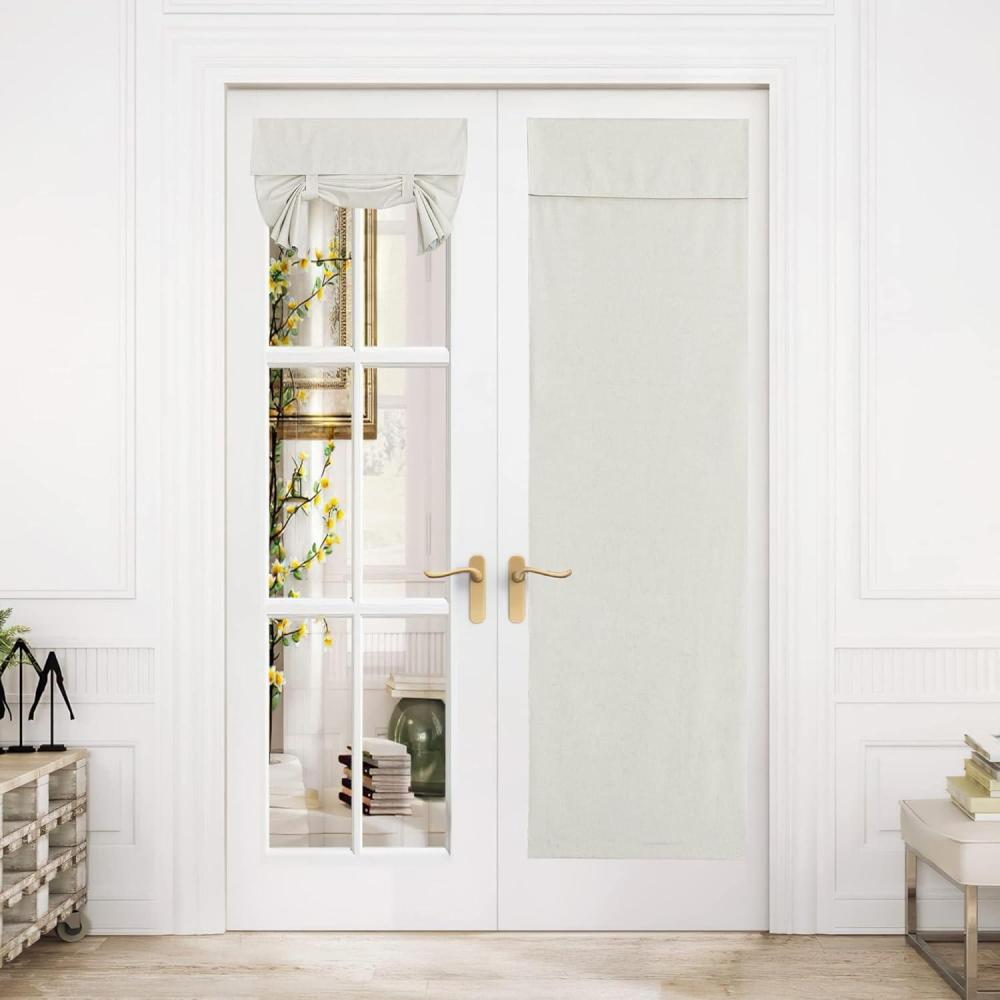 imageNICETOWN Linen Curtain for French Door  100 Blackout Self Adhesive Window Curtain Thermal Insulated Privacy Door Blinds for Sidelight Curtains 26 x 64 inch Long Skylark Blue 1 PCOff White
