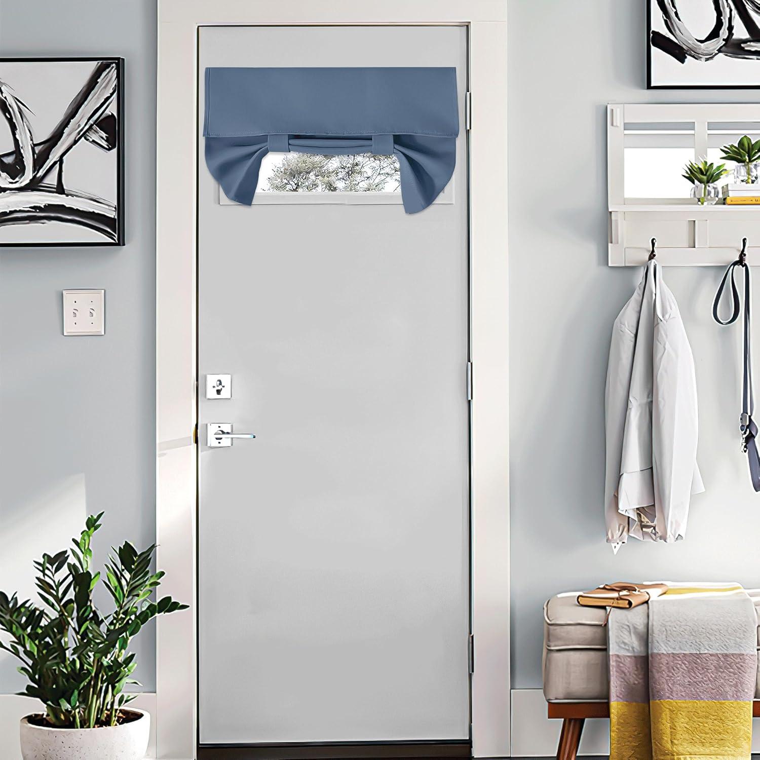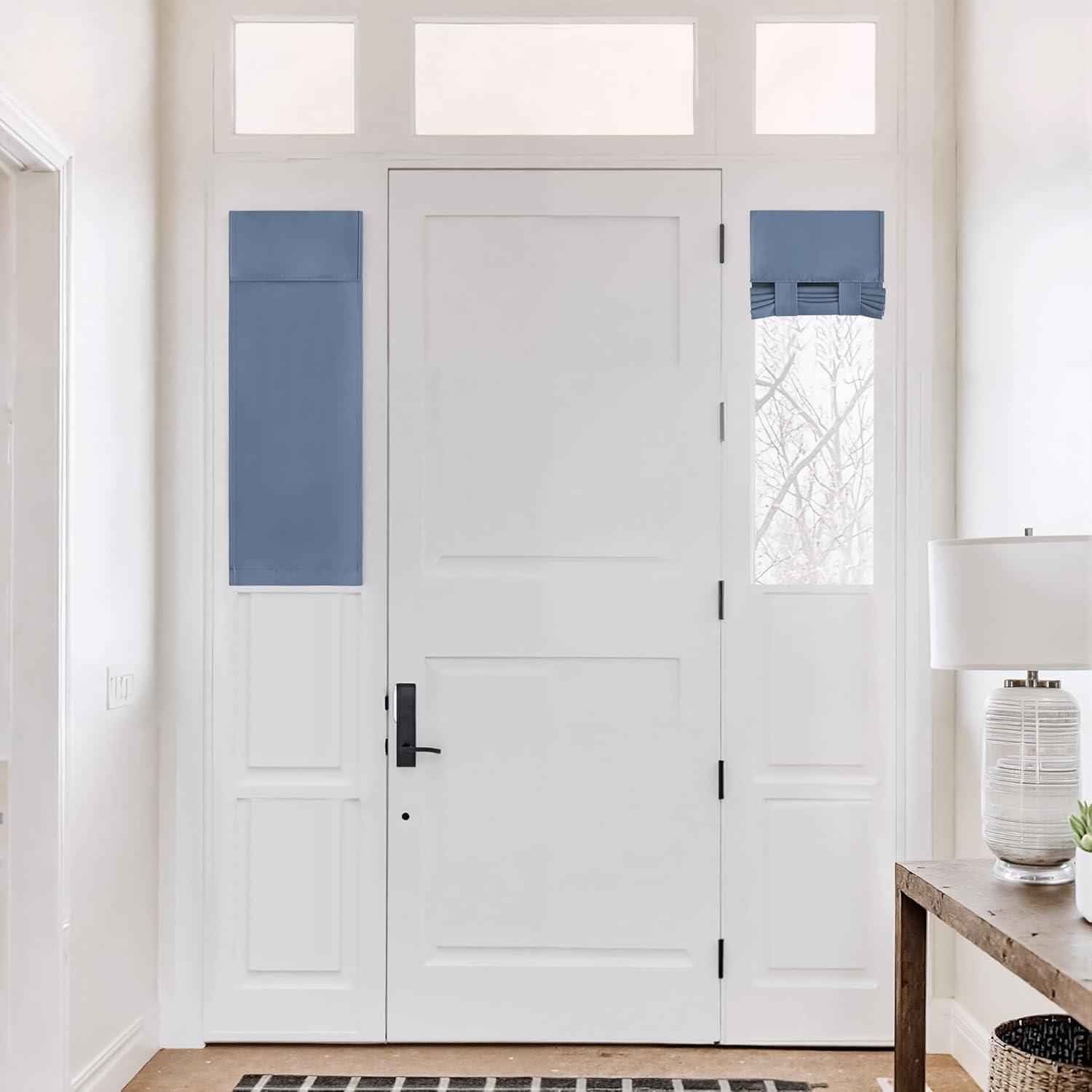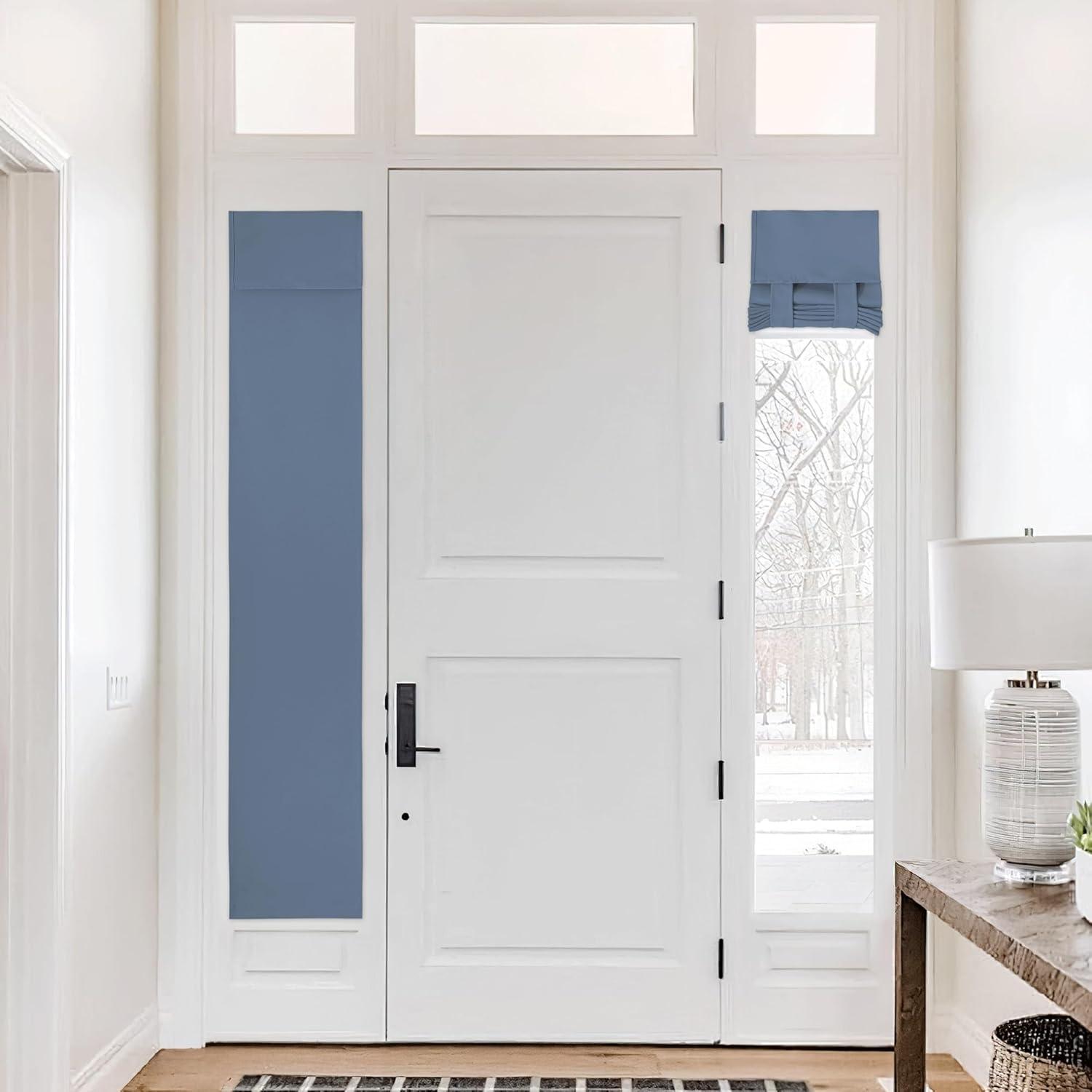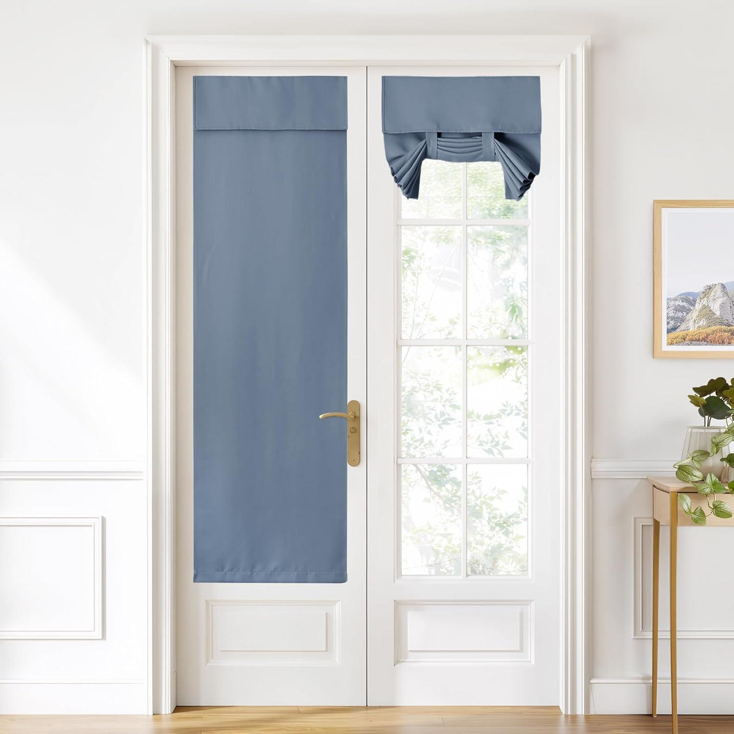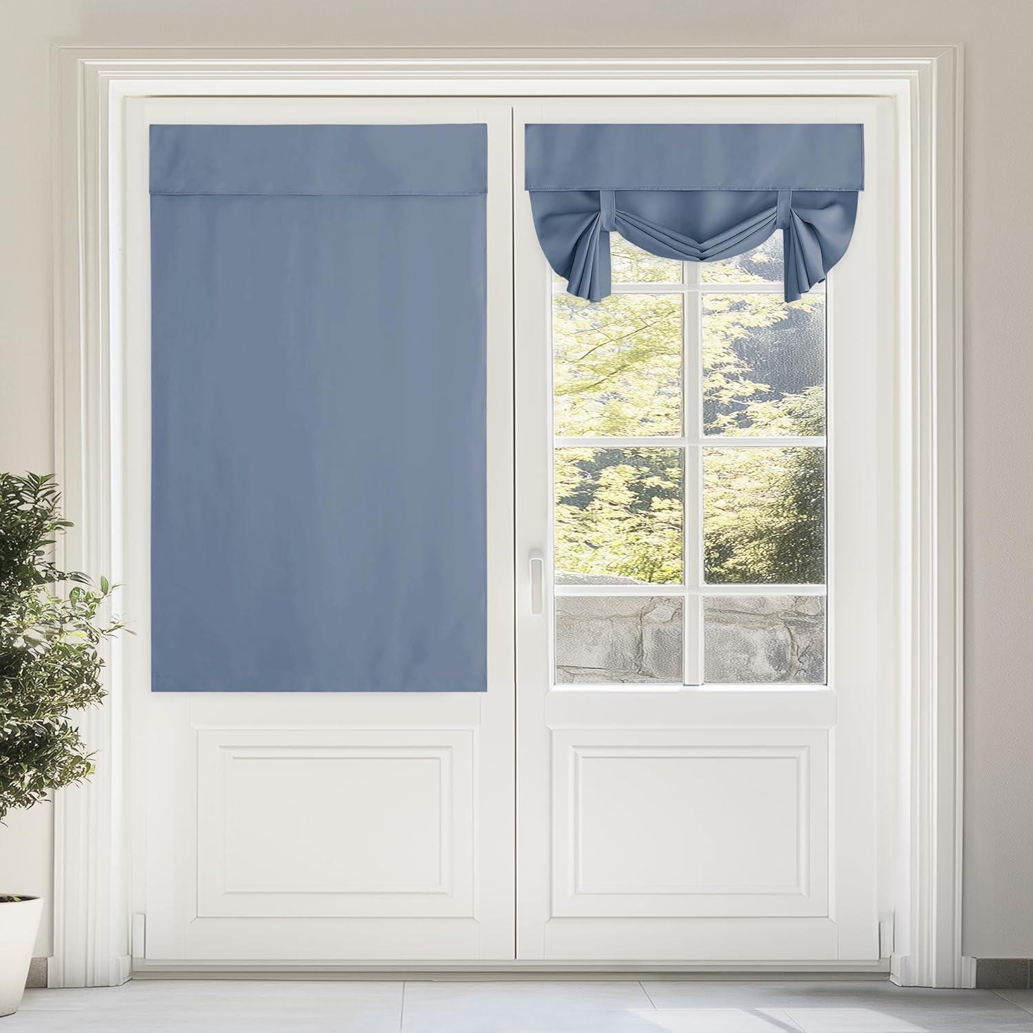 NICETOWN Linen Curtain for French Door – 100% Blackout Self Adhesive Window Curtain Thermal Insulated Privacy Door Blinds for Sidelight Curtains, 26 x 64 inch Long, Skylark Blue, 1 PC(Skylark Blue)