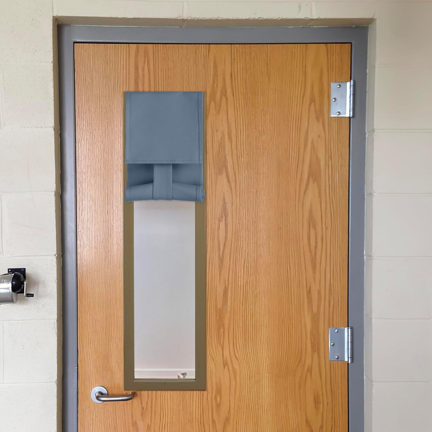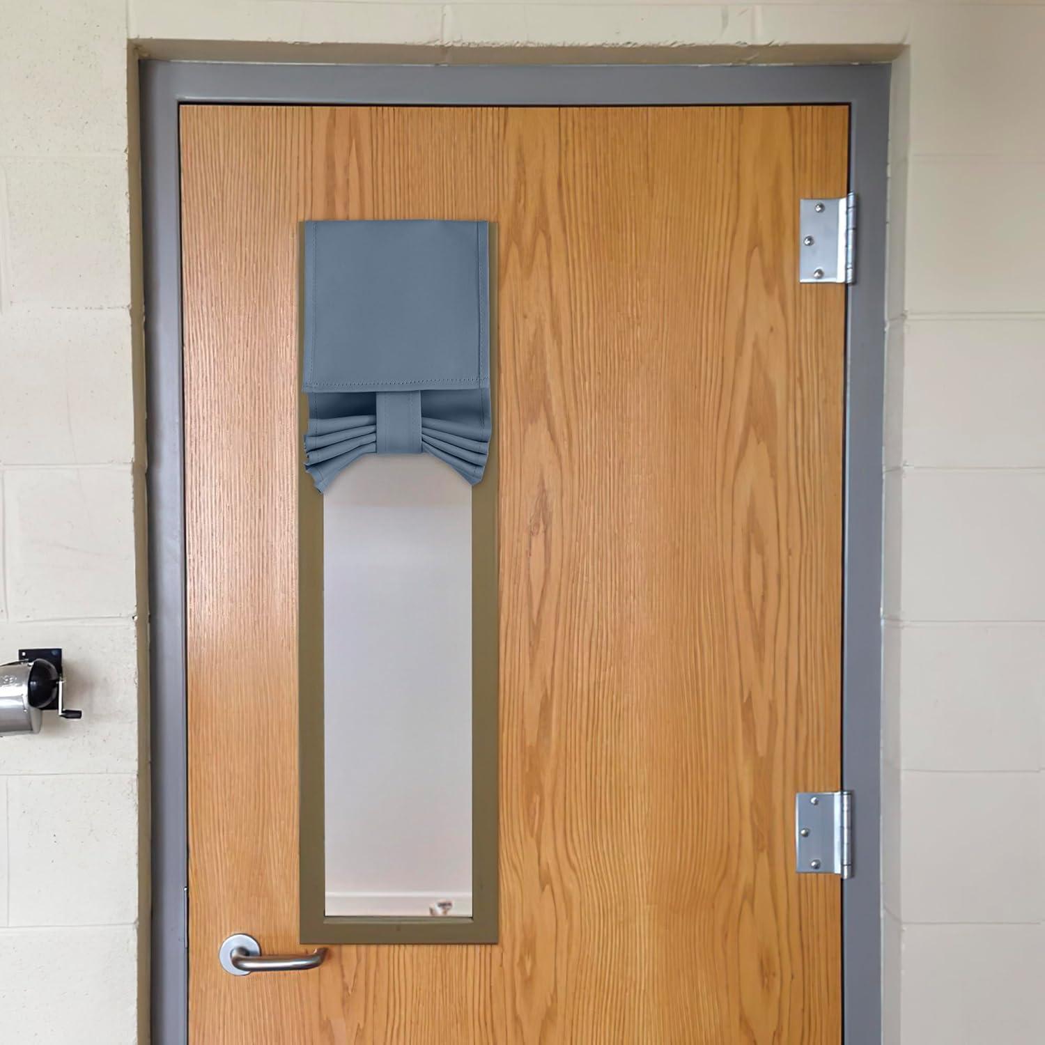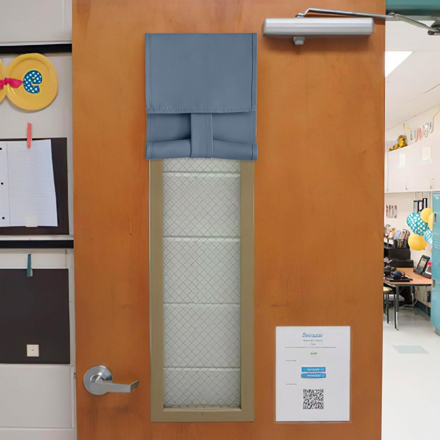 imageNICETOWN Linen Curtain for French Door  100 Blackout Self Adhesive Window Curtain Thermal Insulated Privacy Door Blinds for Sidelight Curtains 26 x 64 inch Long Skylark Blue 1 PCStone Blue