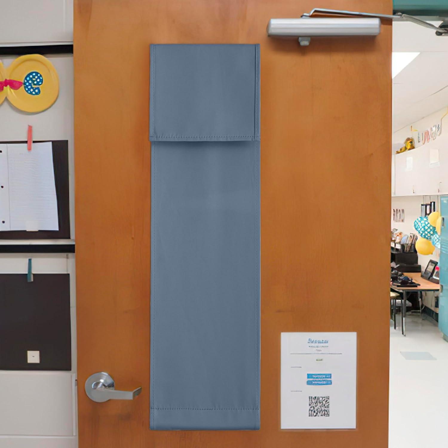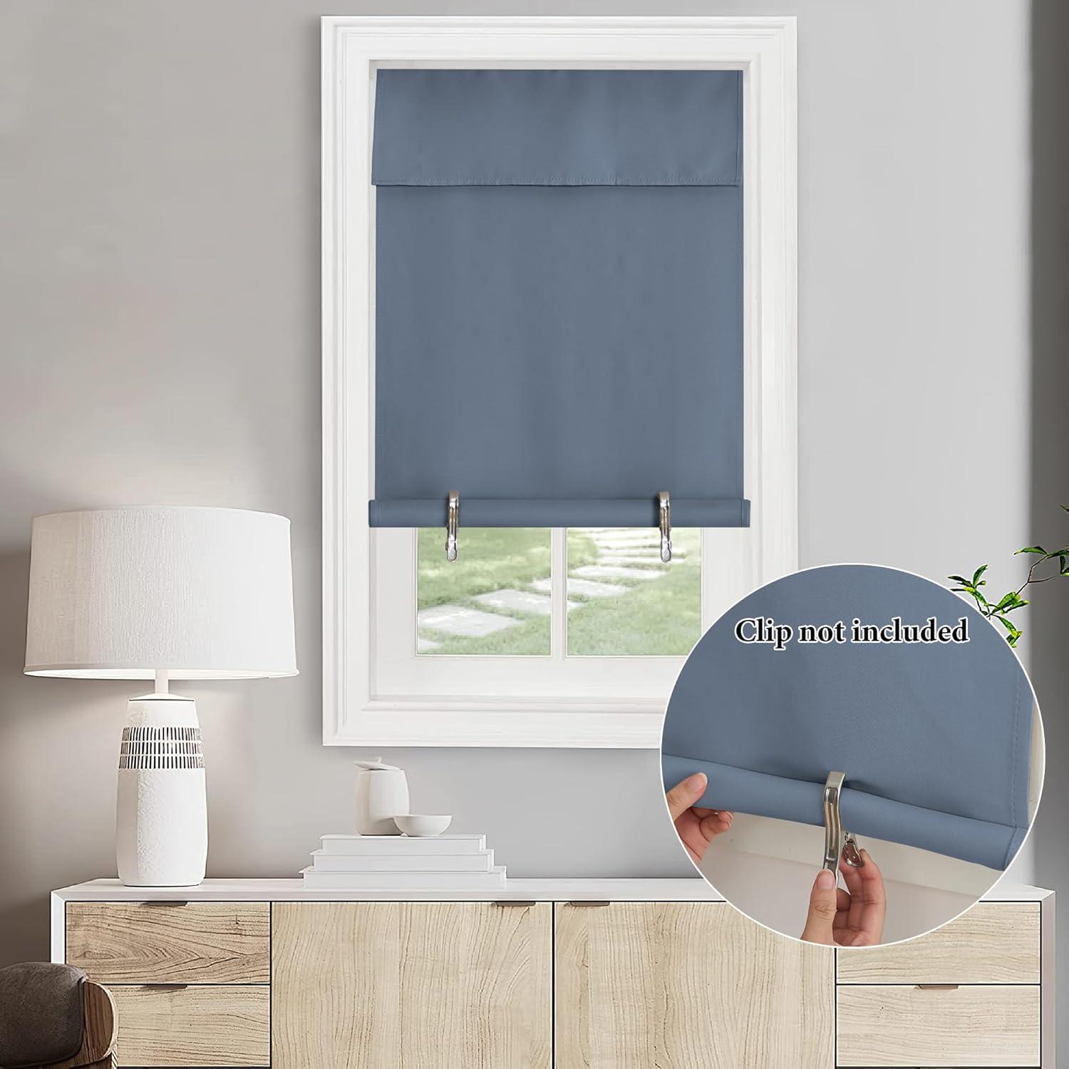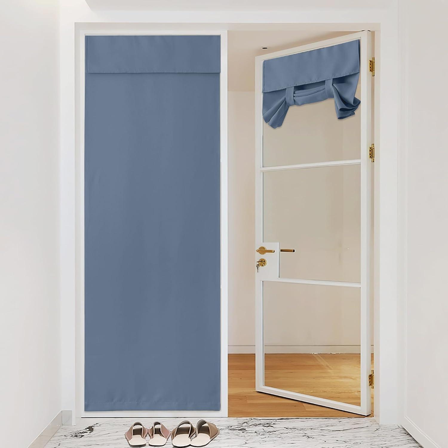 NICETOWN Linen Curtain for French Door - 100% Blackout Self Adhesive Window Curtain Thermal Insulated Privacy Door Blinds for Sidelight Curtains, 26 x 64 inch Long, Skylark Blue, 1 PC(Stone Blue)