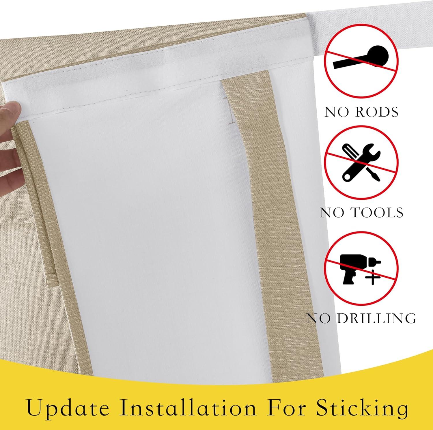 imageNICETOWN Linen Curtain for French Door  100 Blackout Self Adhesive Window Curtain Thermal Insulated Privacy Door Blinds for Sidelight Curtains 26 x 64 inch Long Skylark Blue 1 PCTaupe