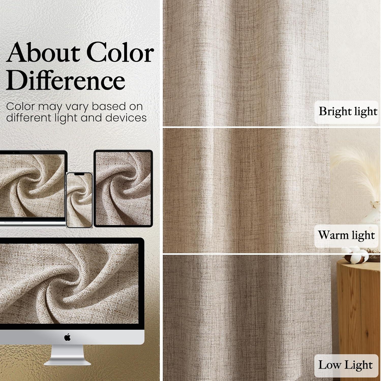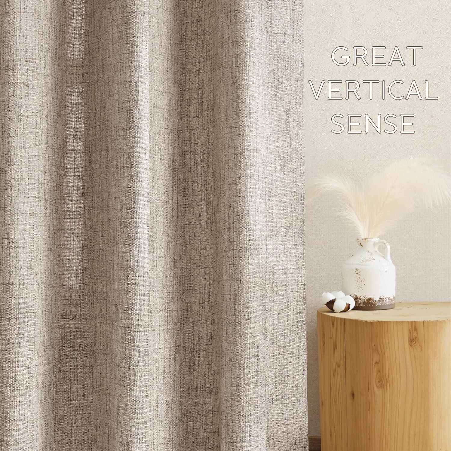 Linen Textured Elegance:Crafted from a premium blend of 30% linen and 70% polyester, our curtains offer a natural, organic look with a subtly uneven texture that adds depth and character to any space. Perfect for living rooms, bedrooms, dining areas, and farmhouse styles, they effortlessly elevate your décor with understated chic.