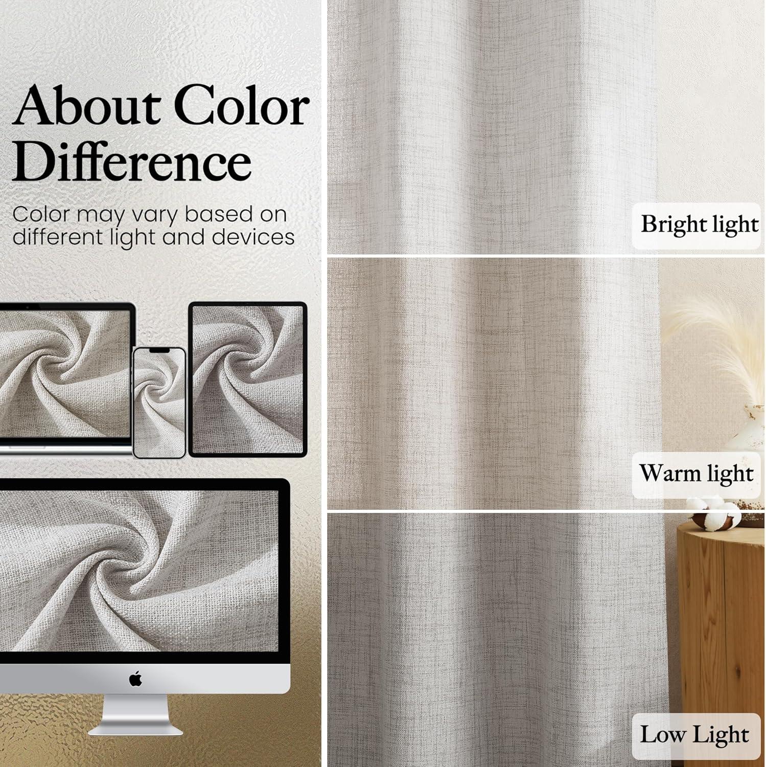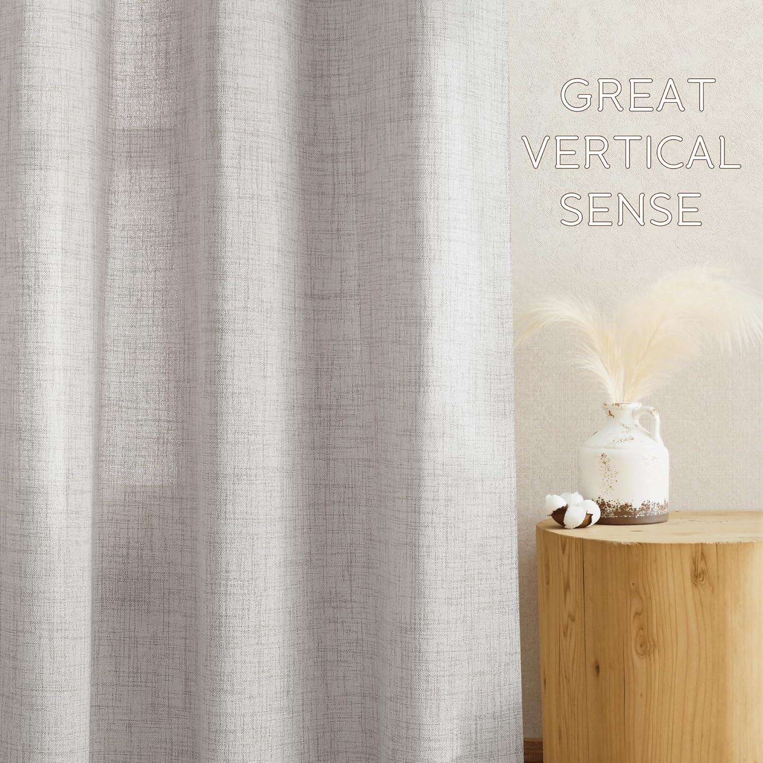 Linen Textured Elegance:Crafted from a premium blend of 30% linen and 70% polyester, our curtains offer a natural, organic look with a subtly uneven texture that adds depth and character to any space. Perfect for living rooms, bedrooms, dining areas, and farmhouse styles, they effortlessly elevate your décor with understated chic.
