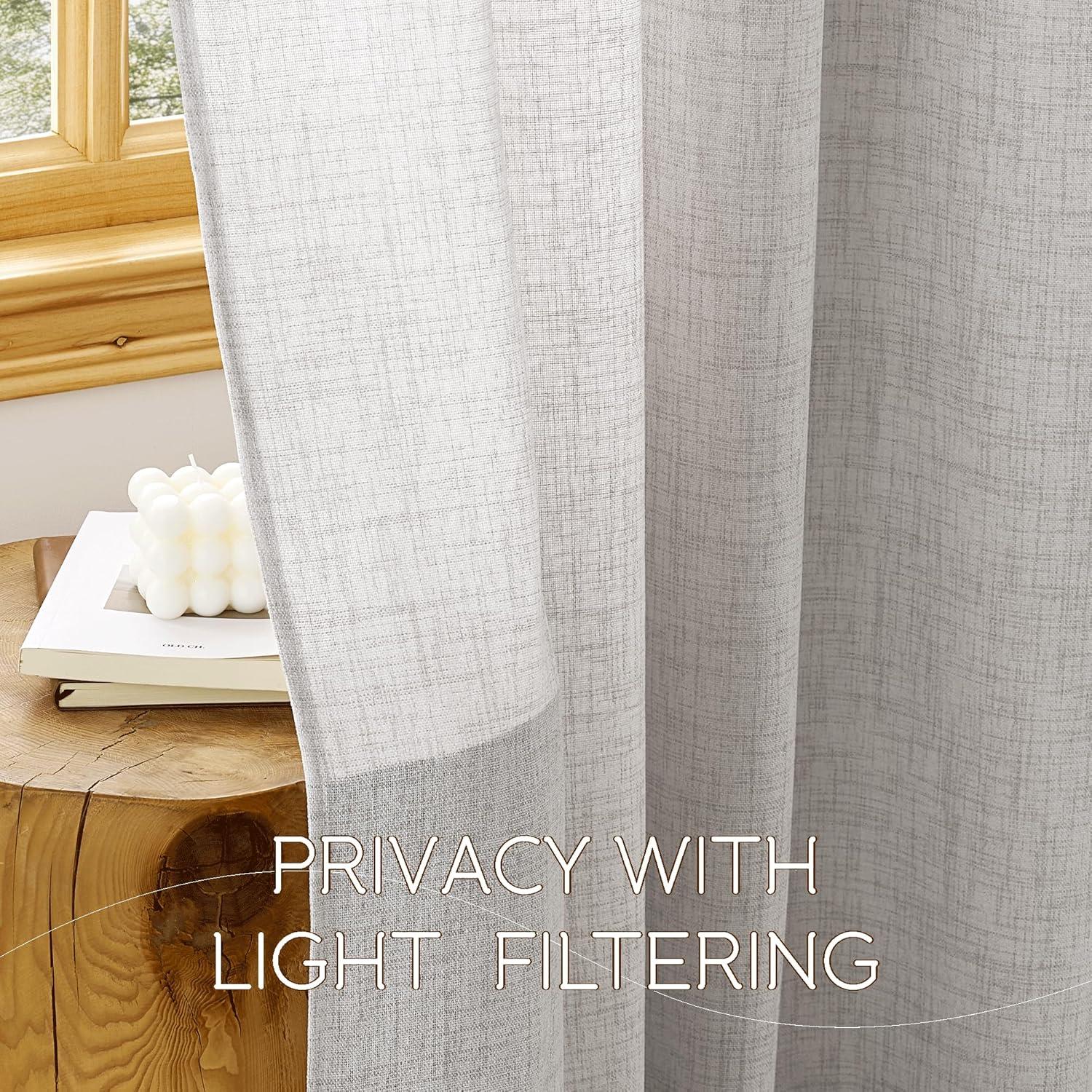 imageNICETOWN Linen Curtains 96 Inch Length for Living Room 2 Panels Farmhouse Light Filtering White Semi Sheer Curtain Soft Grommet Linen Textured Privacy Window Drapes for Bedroom 52 W x 96 LNatural
