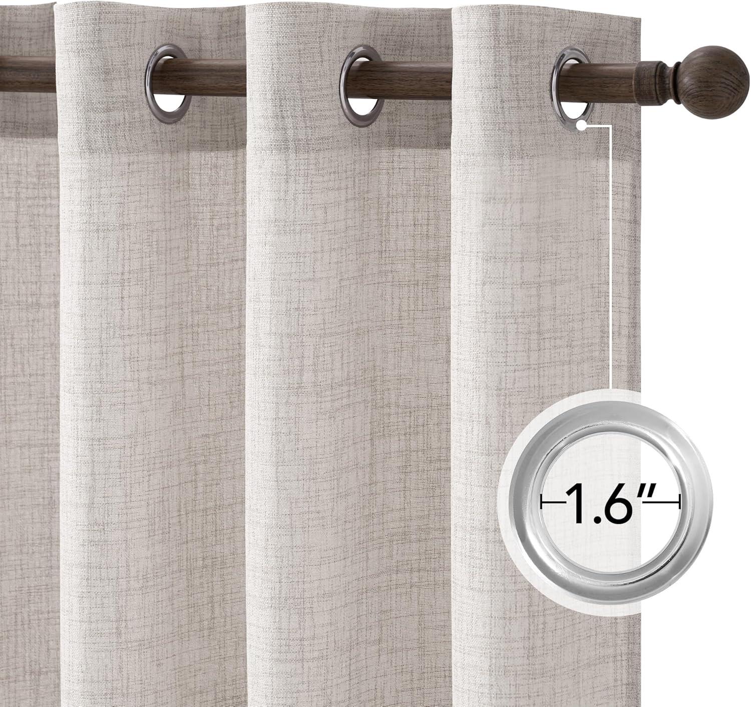 imageNICETOWN Linen Curtains 96 Inch Length for Living Room 2 Panels Farmhouse Light Filtering White Semi Sheer Curtain Soft Grommet Linen Textured Privacy Window Drapes for Bedroom 52 W x 96 LOatmeal