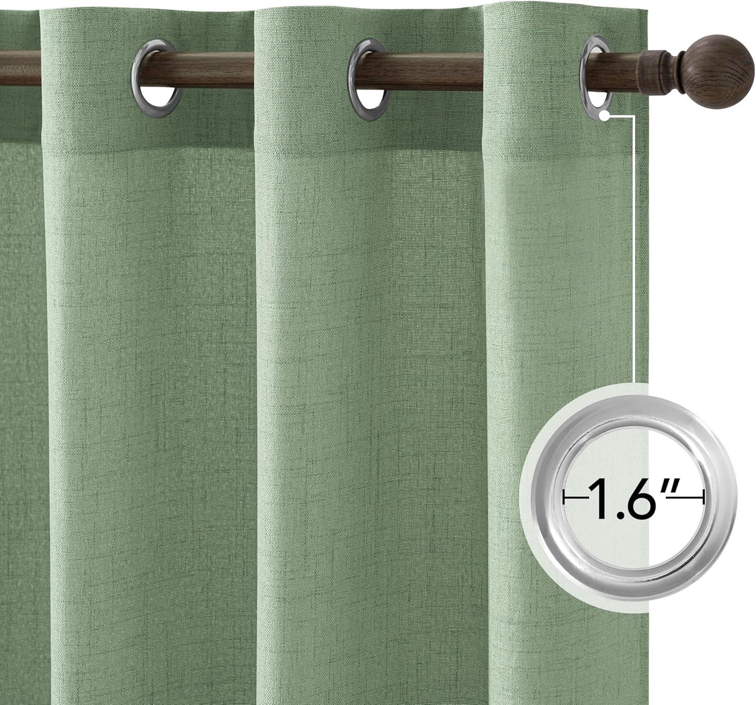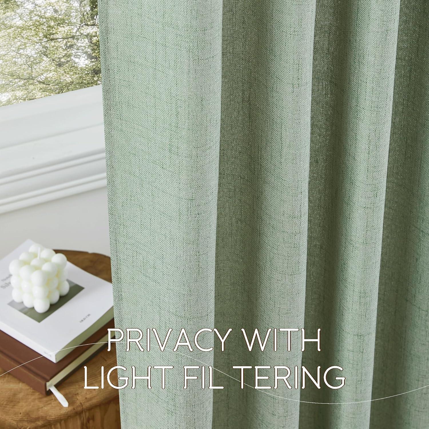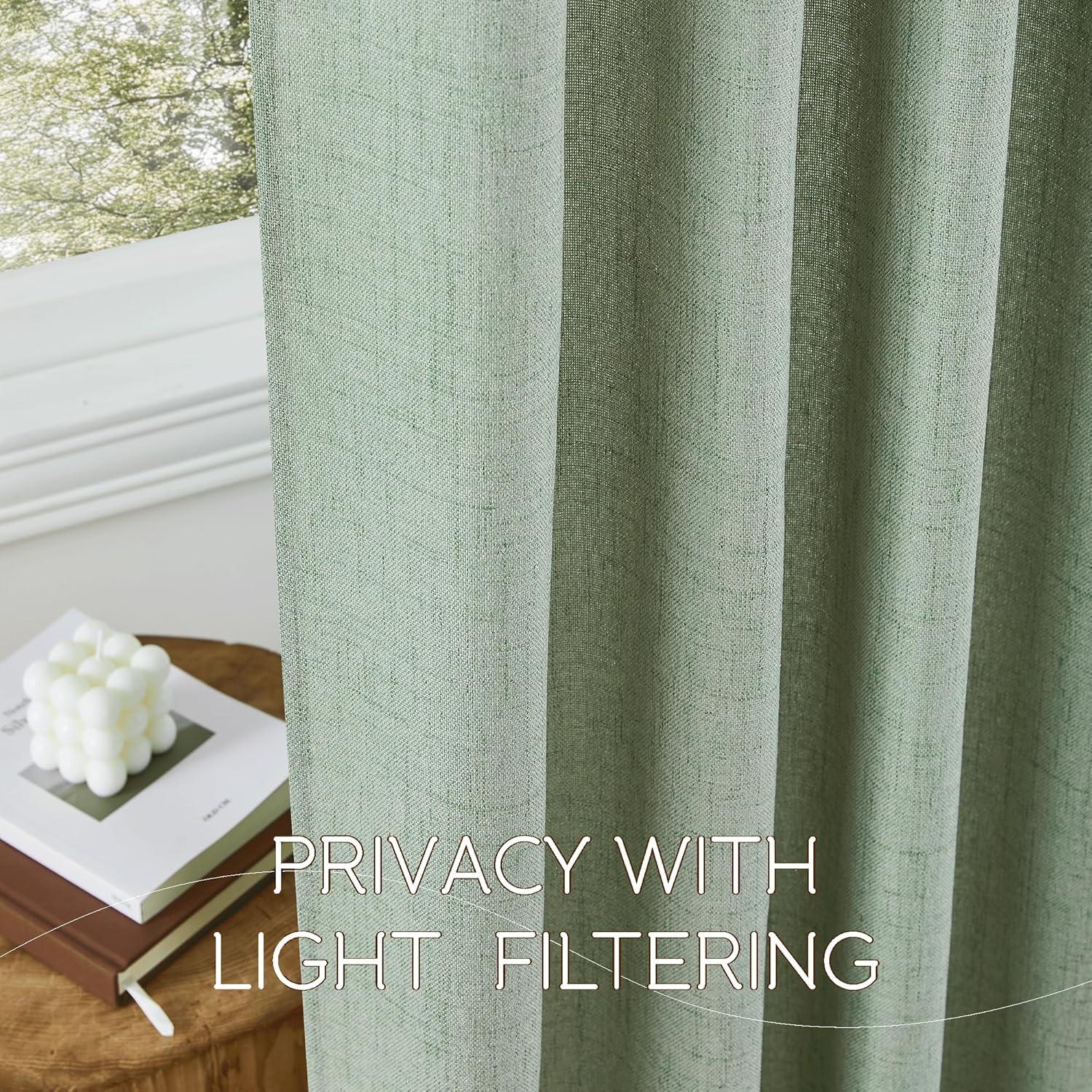 imageNICETOWN Linen Curtains 96 Inch Length for Living Room 2 Panels Farmhouse Light Filtering White Semi Sheer Curtain Soft Grommet Linen Textured Privacy Window Drapes for Bedroom 52 W x 96 LSage Green