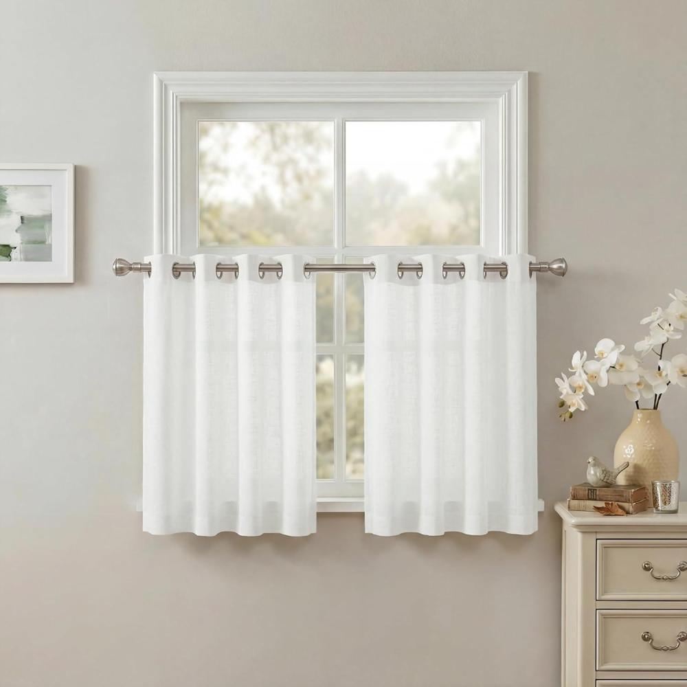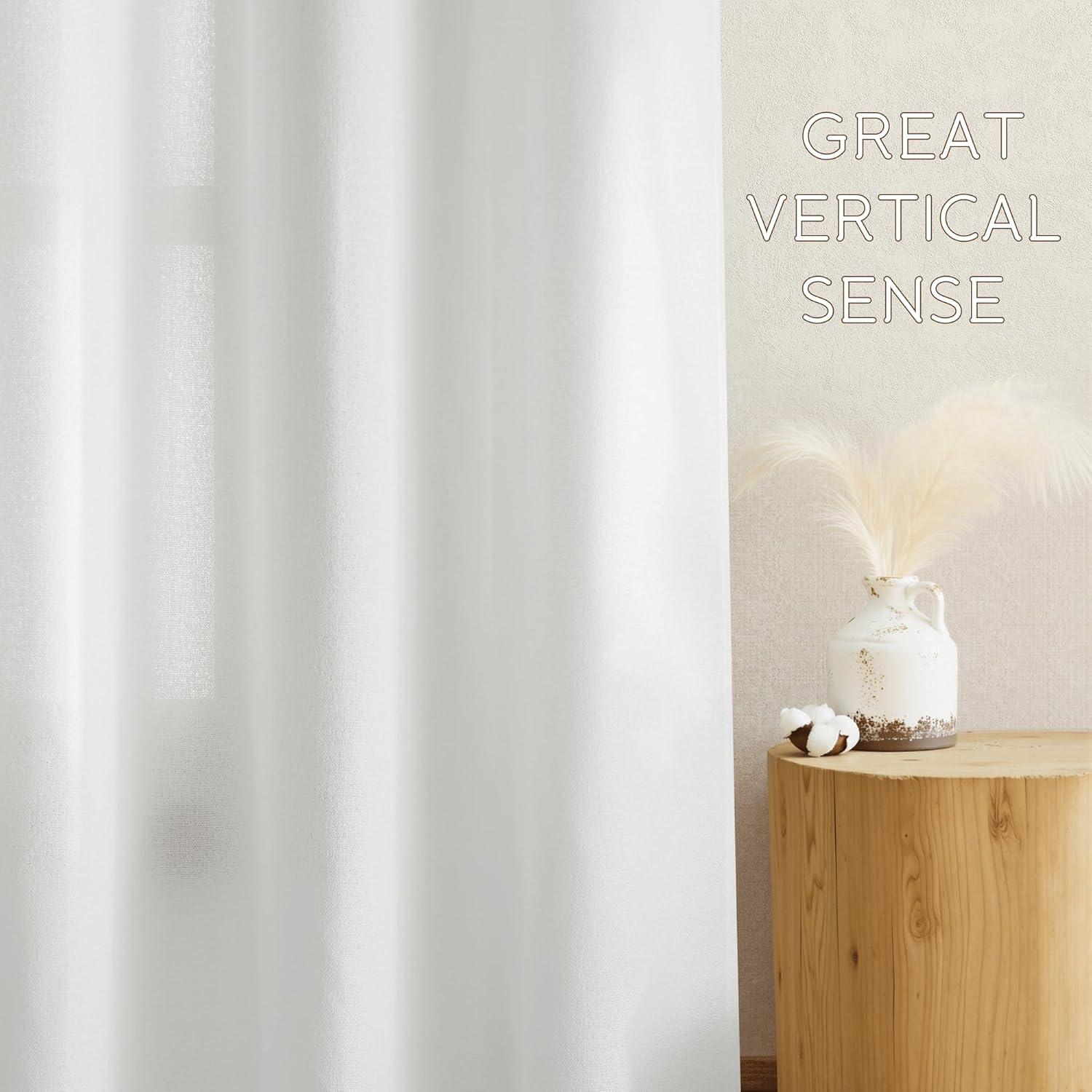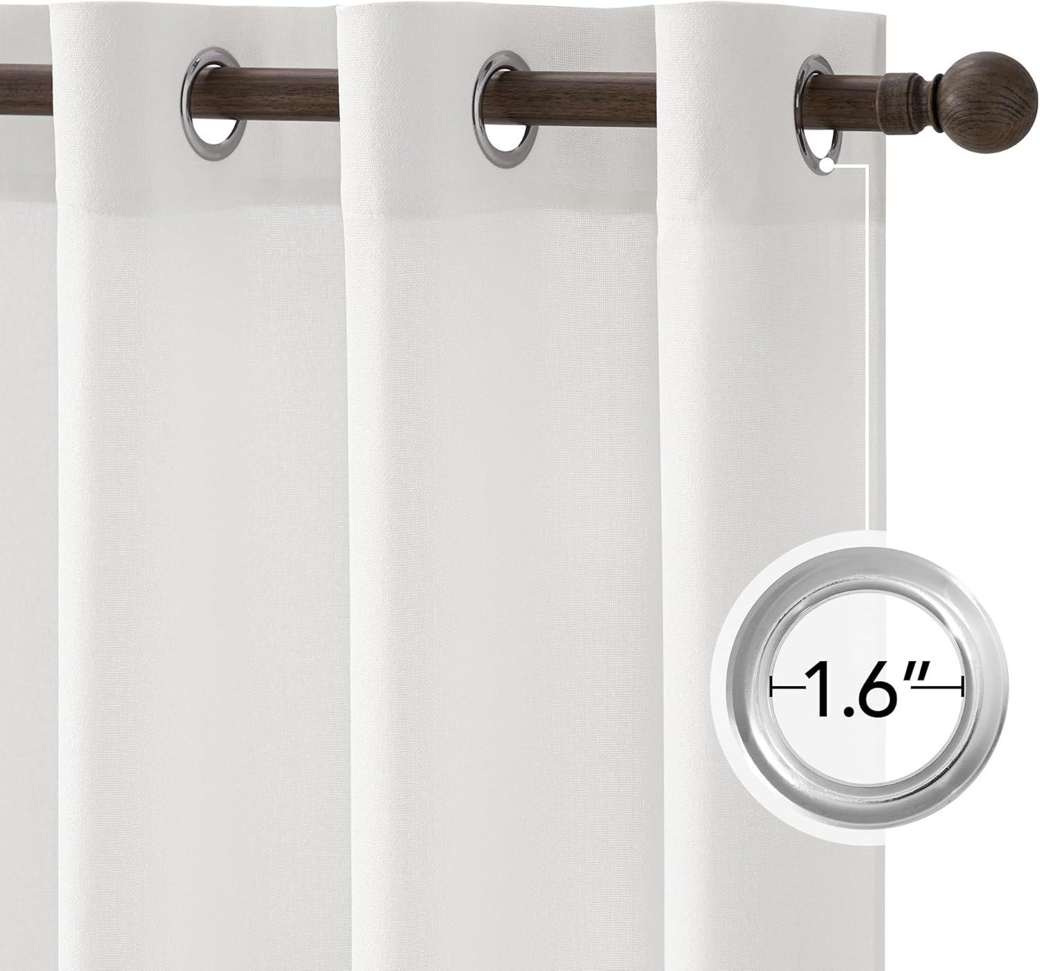 imageNICETOWN Linen Curtains 96 Inch Length for Living Room 2 Panels Farmhouse Light Filtering White Semi Sheer Curtain Soft Grommet Linen Textured Privacy Window Drapes for Bedroom 52 W x 96 LWhite