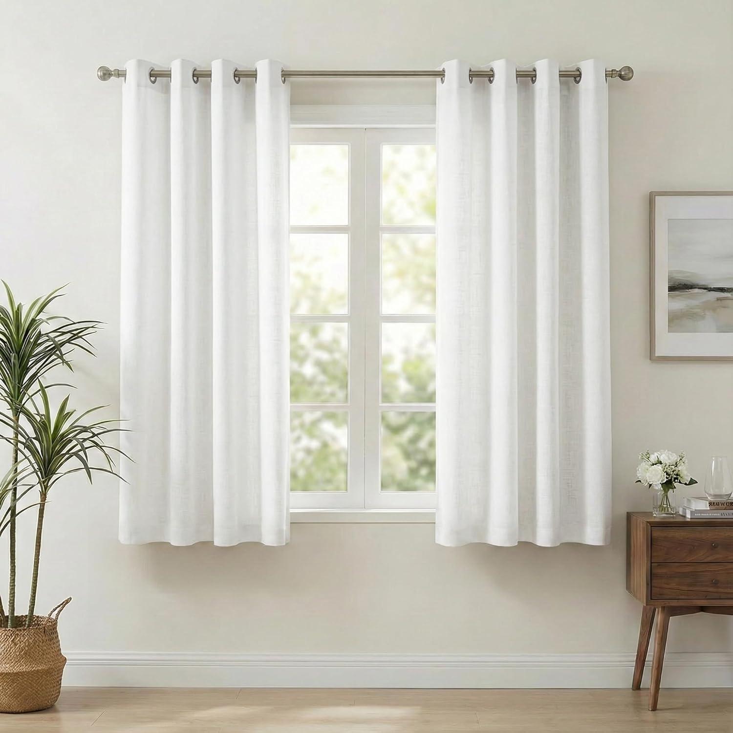 NICETOWN Linen Curtains 96 Inch Length for Living Room 2 Panels, Farmhouse Light Filtering White Semi Sheer Curtain Soft Grommet Linen Textured Privacy Window Drapes for Bedroom, 52″ W x 96″ L(White)