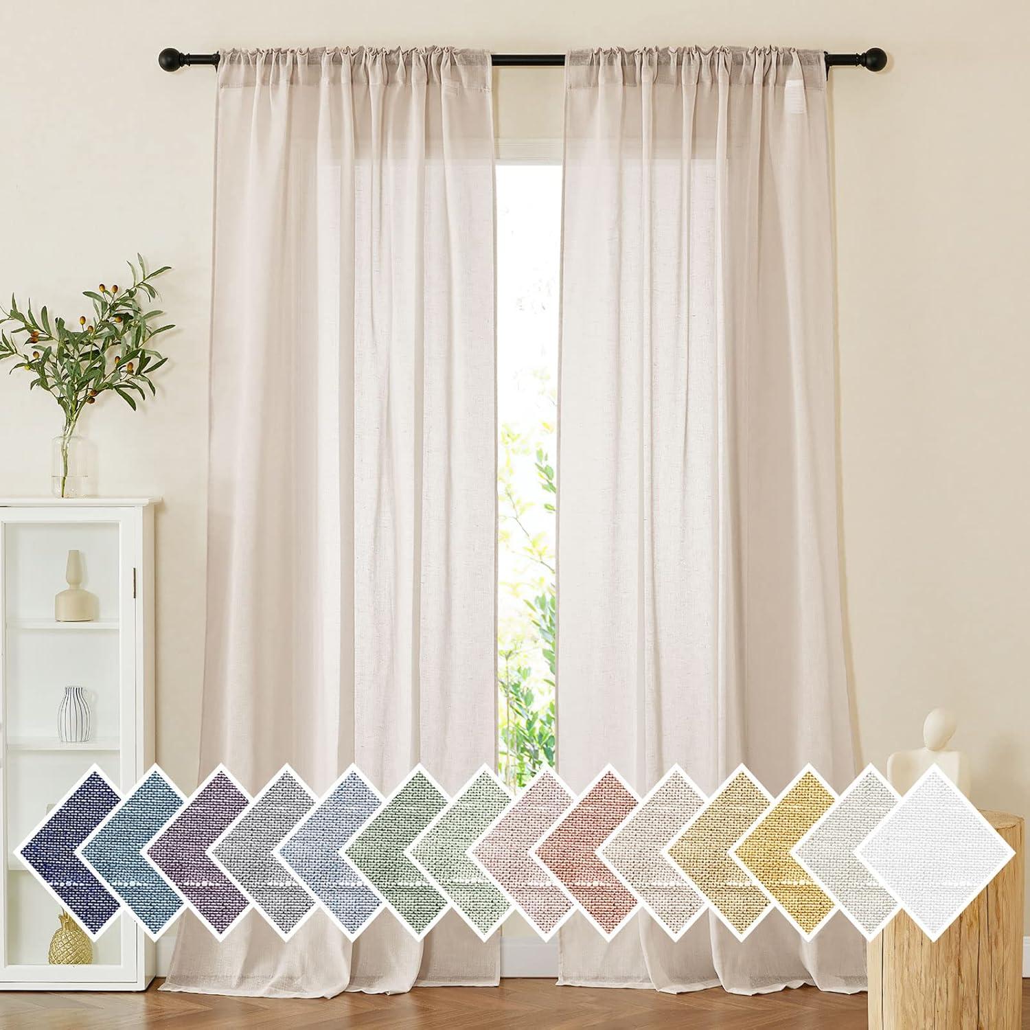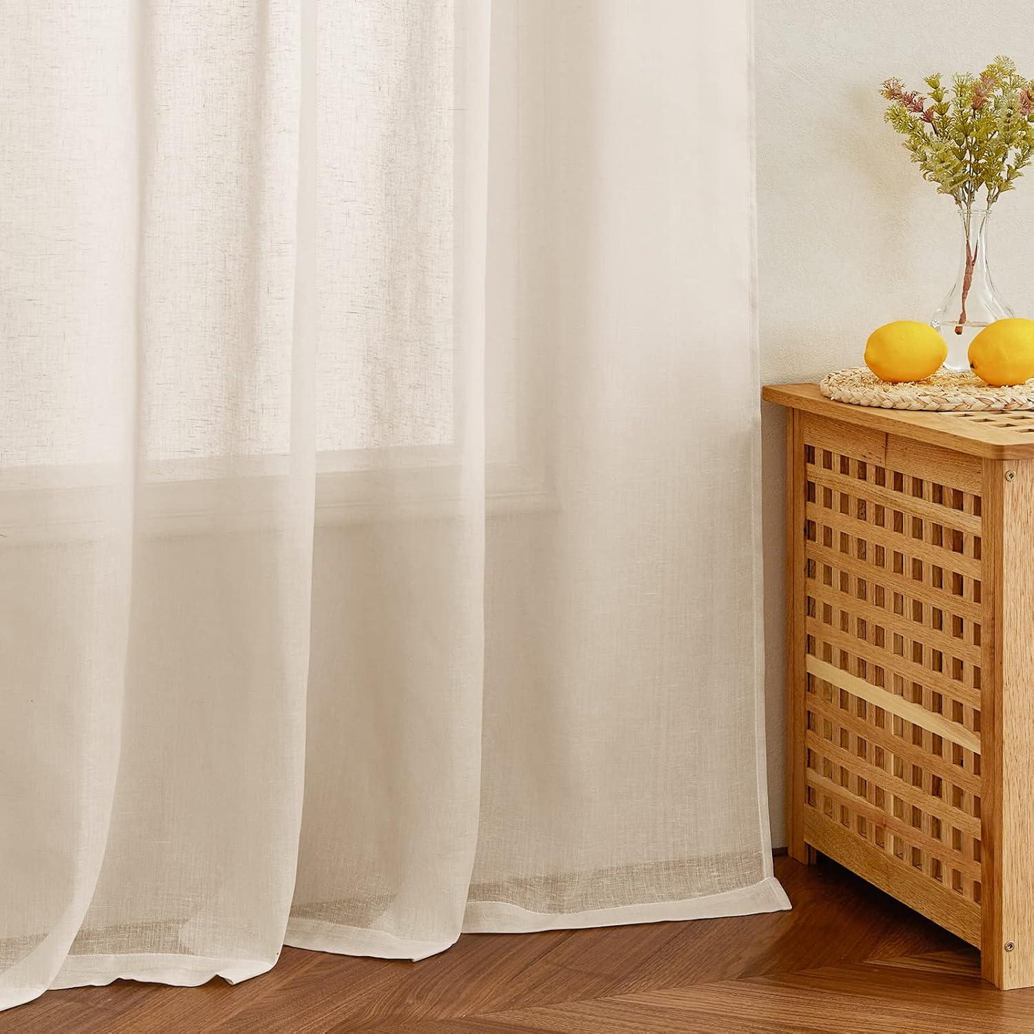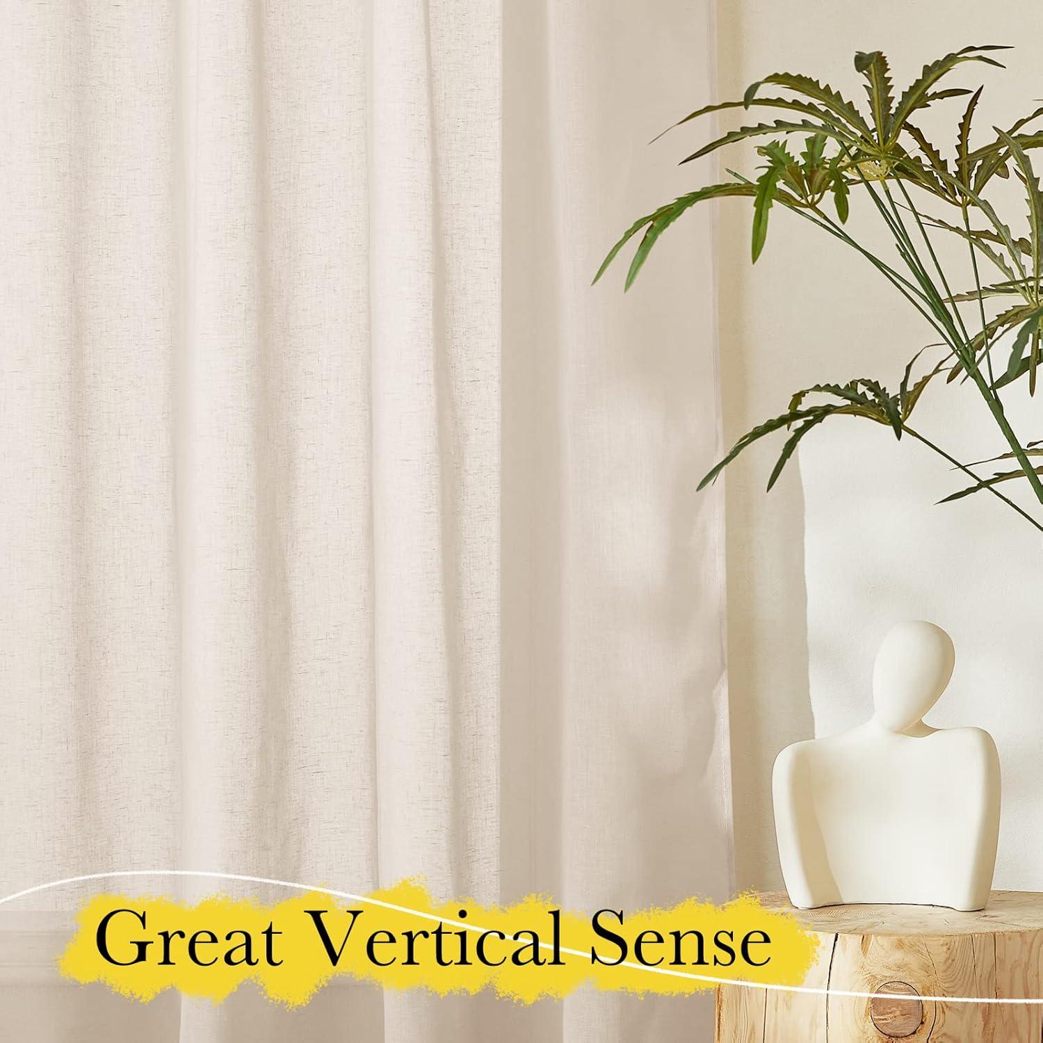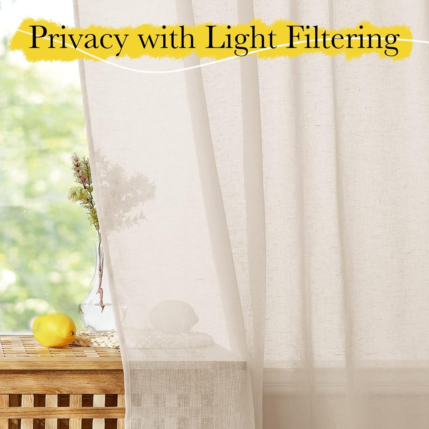 NICETOWN Linen Curtains for Windows 84 inch Length, Rod Pocket & Back Tab Semi Sheer Linen Curtains & Drapes Privacy with Light Through for Bedroom/Living Room, Natural, W52 x L84, 2 Pieces(Beige)