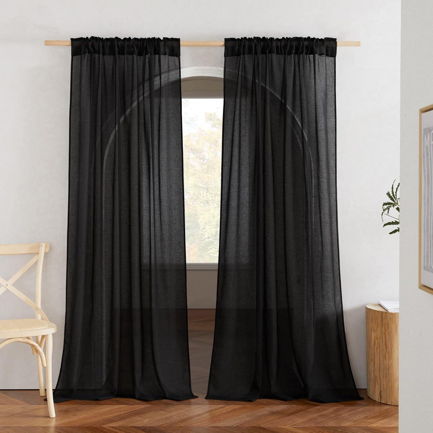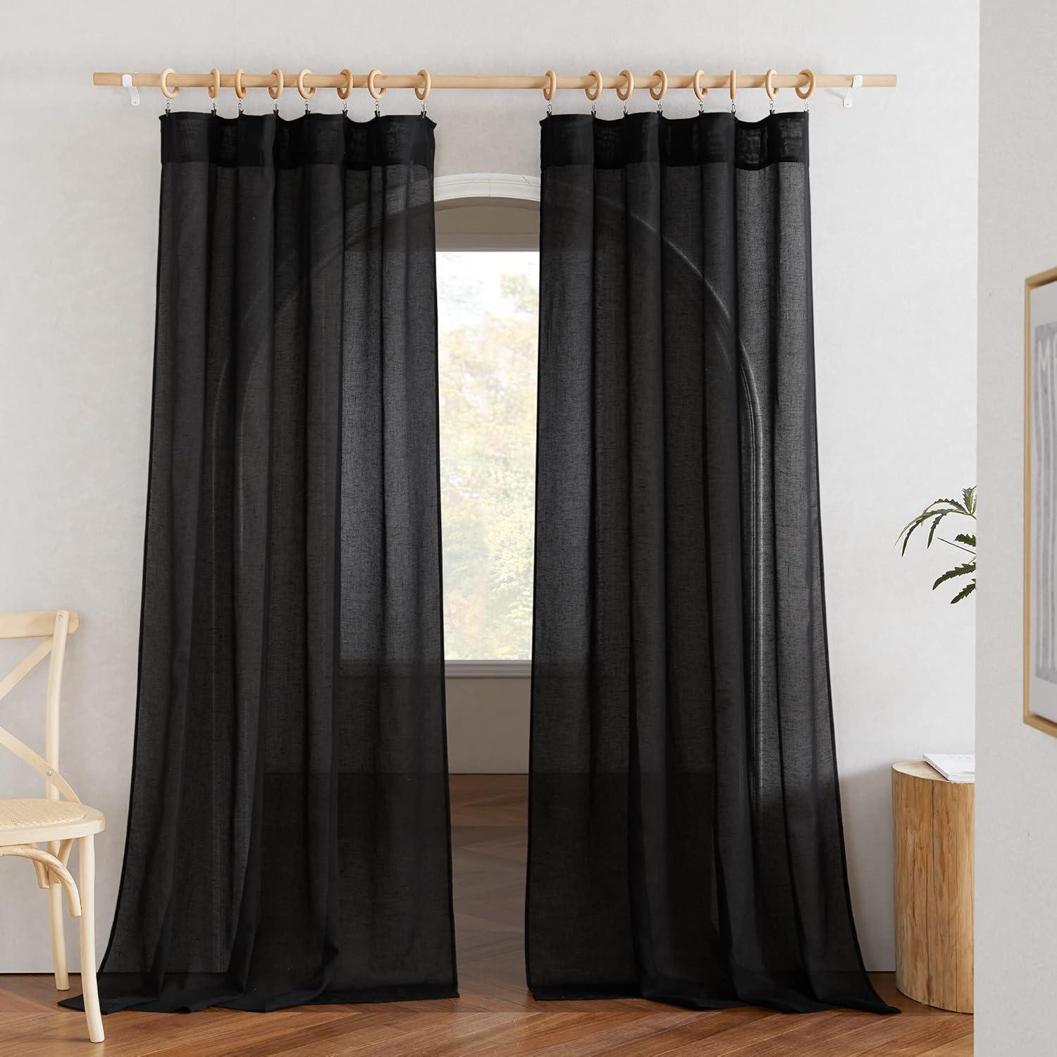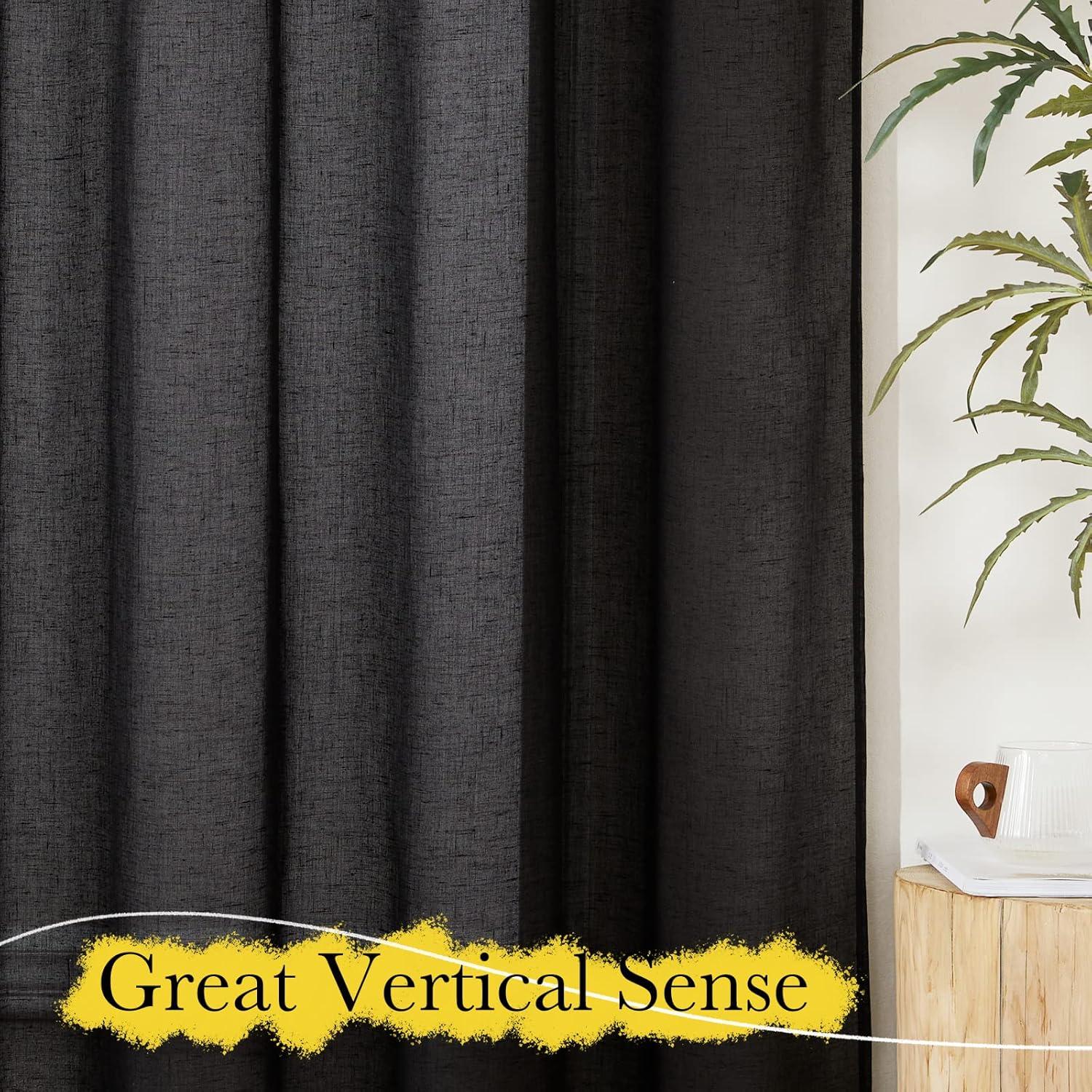 NICETOWN Linen Curtains for Windows 84 inch Length, Rod Pocket & Back Tab Semi Sheer Linen Curtains & Drapes Privacy with Light Through for Bedroom/Living Room, Natural, W52 x L84, 2 Pieces(Black)