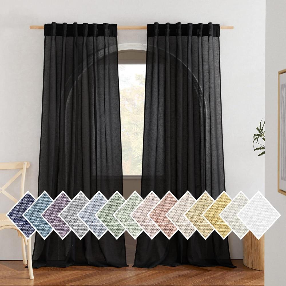 imageNICETOWN Linen Curtains for Windows 84 inch Length Rod Pocket ampamp Back Tab Semi Sheer Linen Curtains ampamp Drapes Privacy with Light Through for BedroomLiving Room Natural W52 x L84 2 PiecesBlack