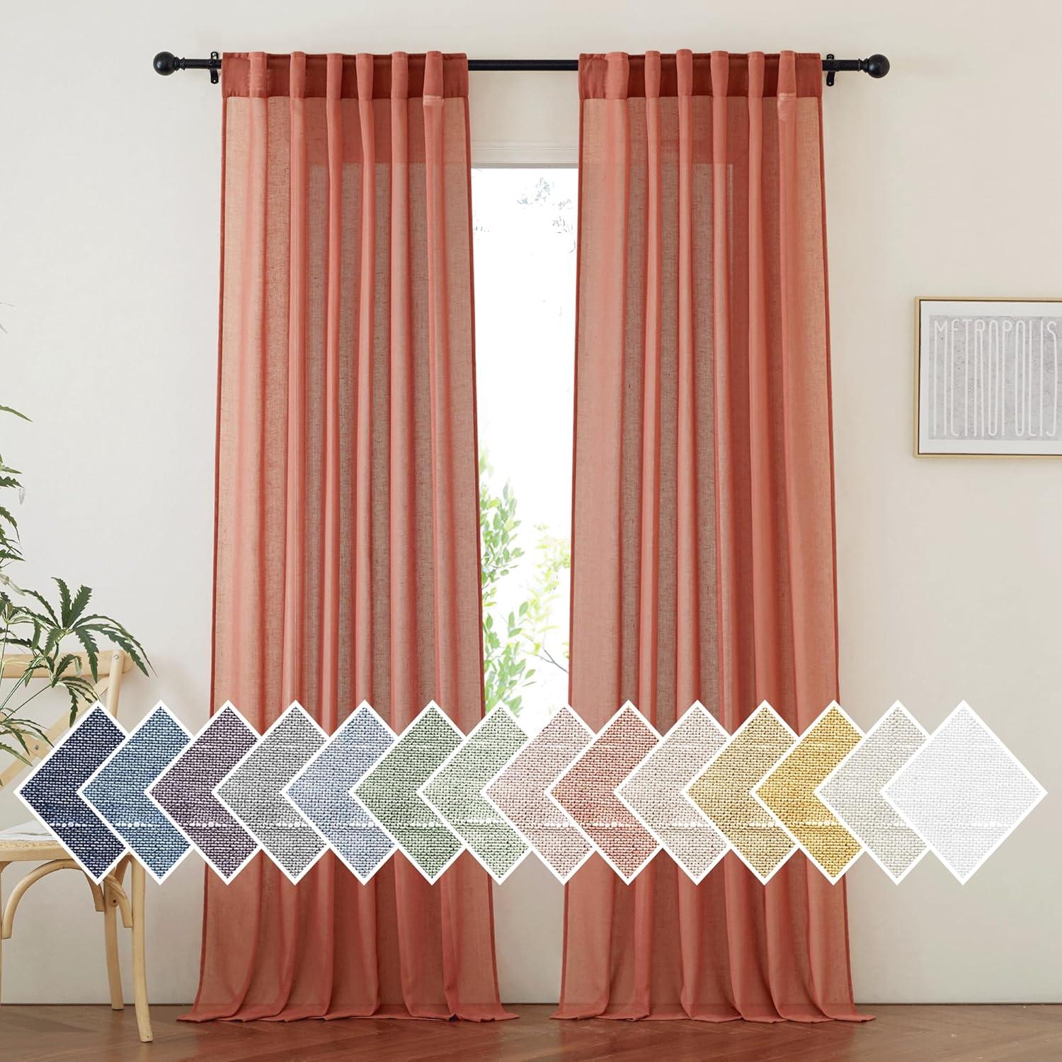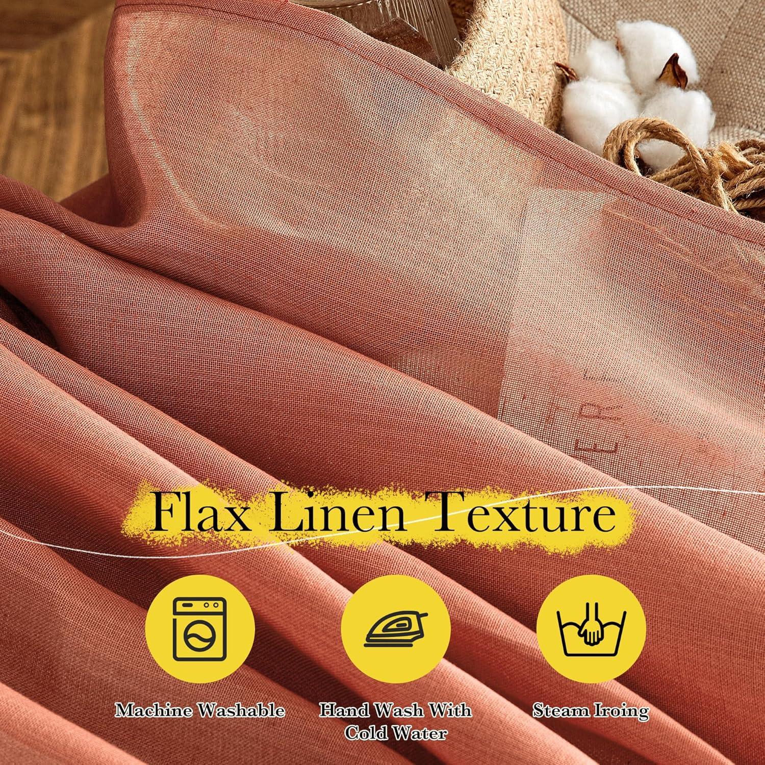 NICETOWN Linen Curtains for Windows 84 inch Length, Rod Pocket & Back Tab Semi Sheer Linen Curtains & Drapes Privacy with Light Through for Bedroom/Living Room, Natural, W52 x L84, 2 Pieces(Burnt Orange)
