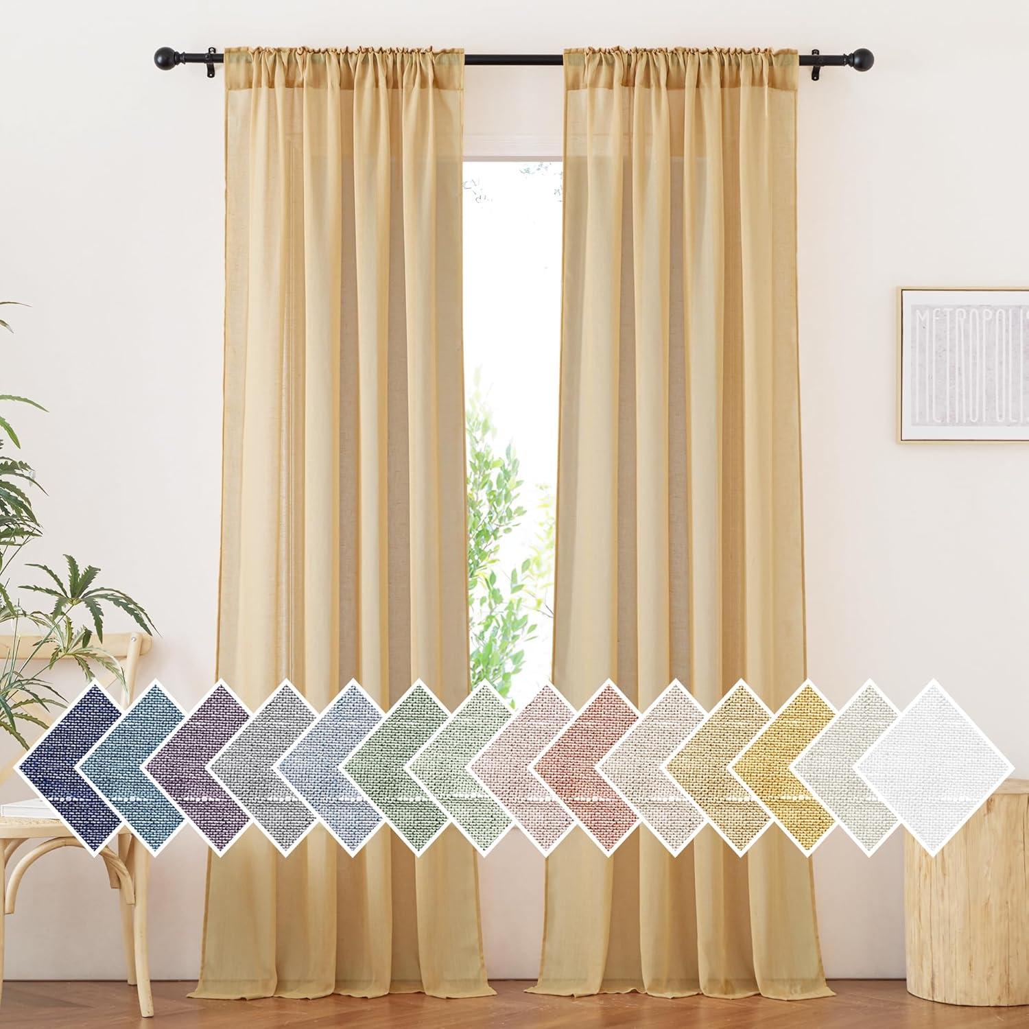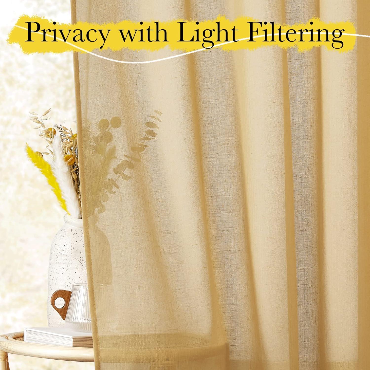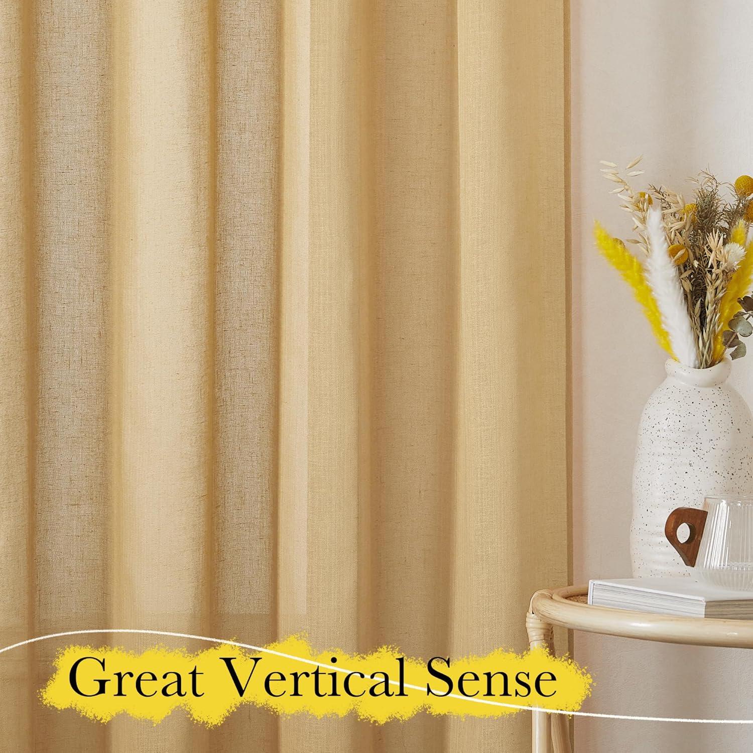 NICETOWN Linen Curtains for Windows 84 inch Length, Rod Pocket & Back Tab Semi Sheer Linen Curtains & Drapes Privacy with Light Through for Bedroom/Living Room, Natural, W52 x L84, 2 Pieces(Desert Yellow)