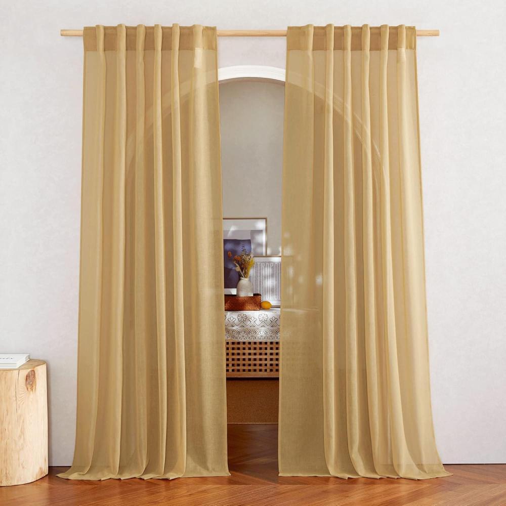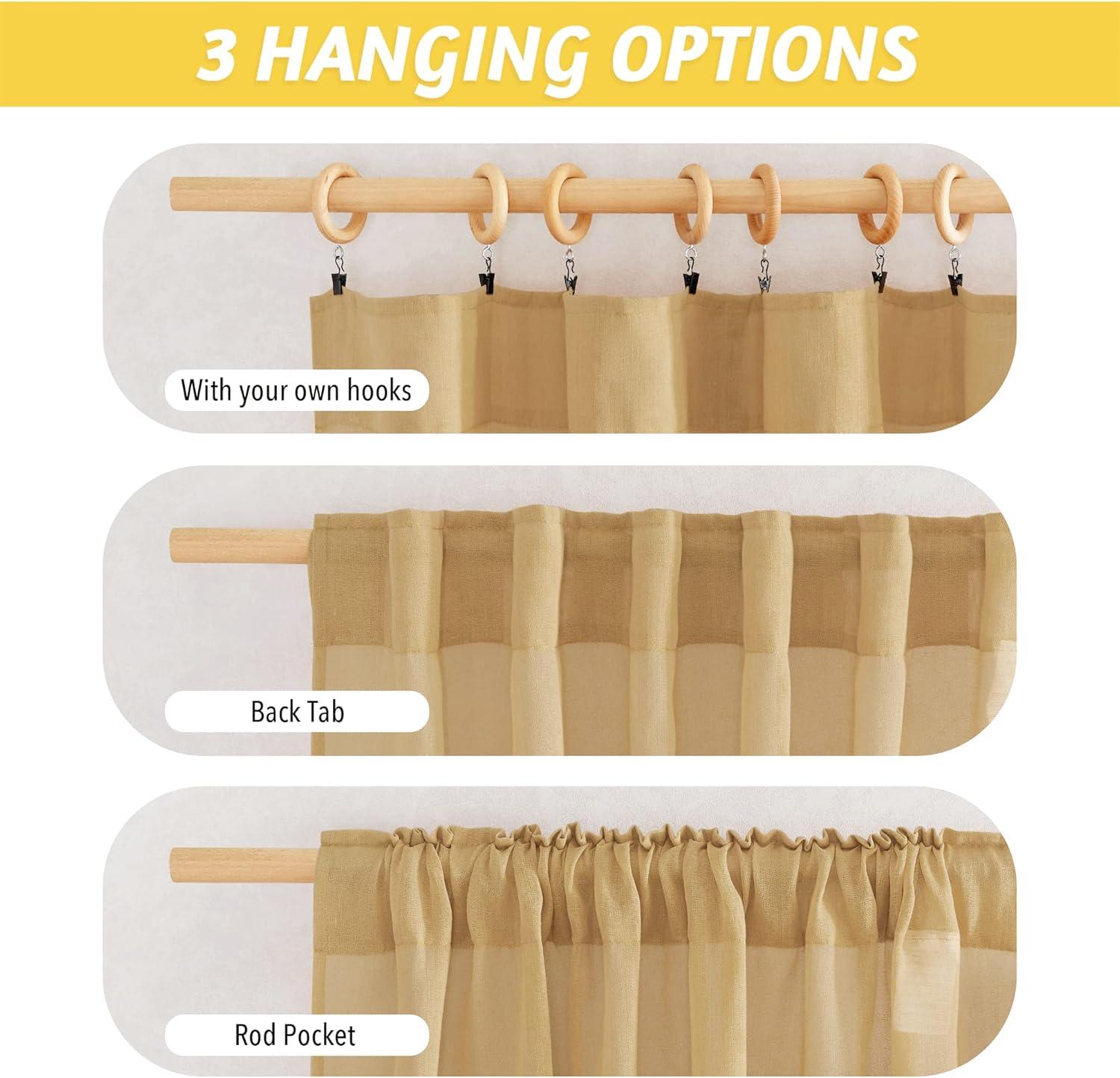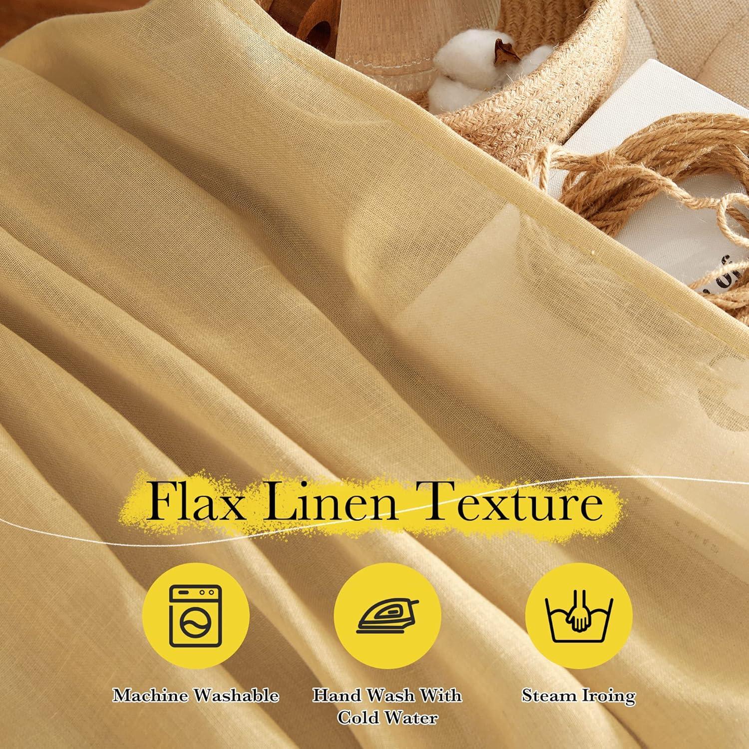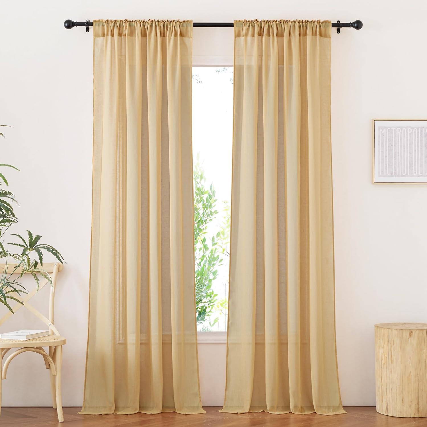 NICETOWN Linen Curtains for Windows 84 inch Length, Rod Pocket & Back Tab Semi Sheer Linen Curtains & Drapes Privacy with Light Through for Bedroom/Living Room, Natural, W52 x L84, 2 Pieces(Desert Yellow)