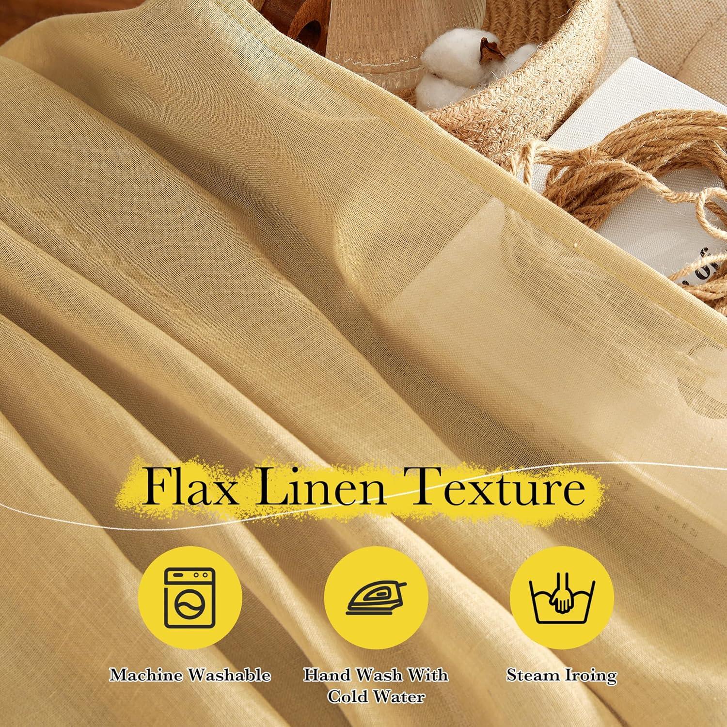 NICETOWN Linen Curtains for Windows 84 inch Length, Rod Pocket & Back Tab Semi Sheer Linen Curtains & Drapes Privacy with Light Through for Bedroom/Living Room, Natural, W52 x L84, 2 Pieces(Gold)
