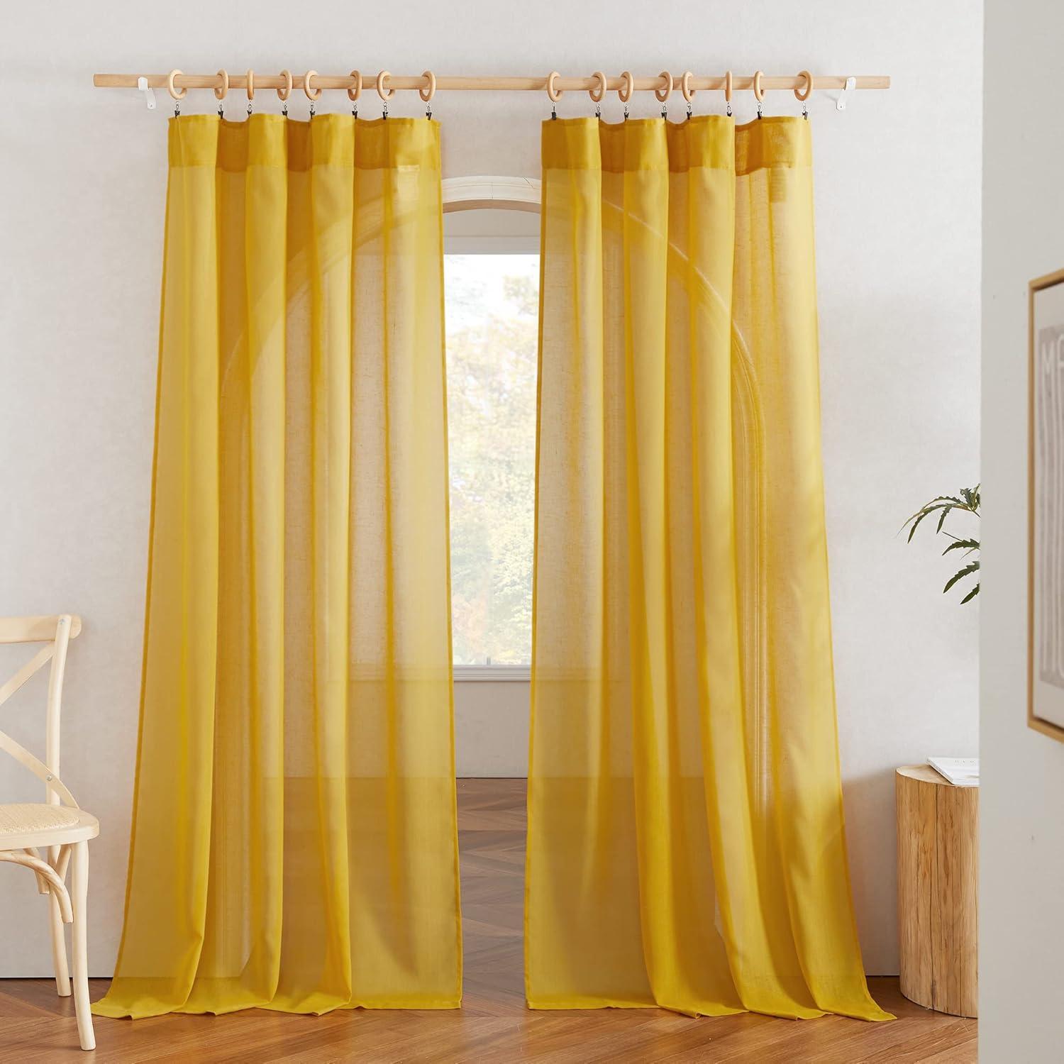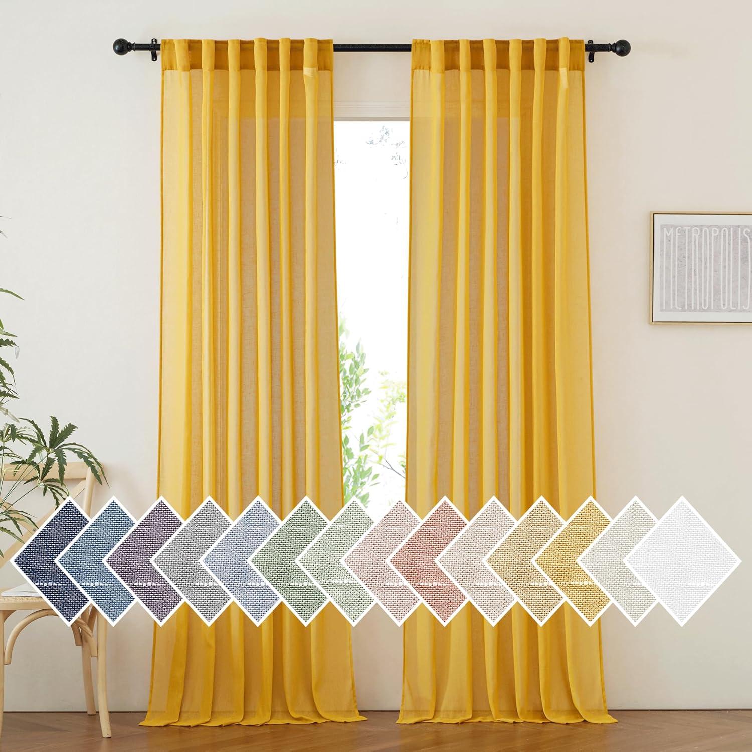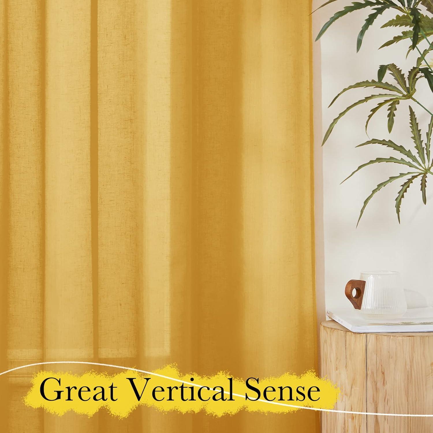 NICETOWN Linen Curtains for Windows 84 inch Length, Rod Pocket & Back Tab Semi Sheer Linen Curtains & Drapes Privacy with Light Through for Bedroom/Living Room, Natural, W52 x L84, 2 Pieces(Desert Yellow)