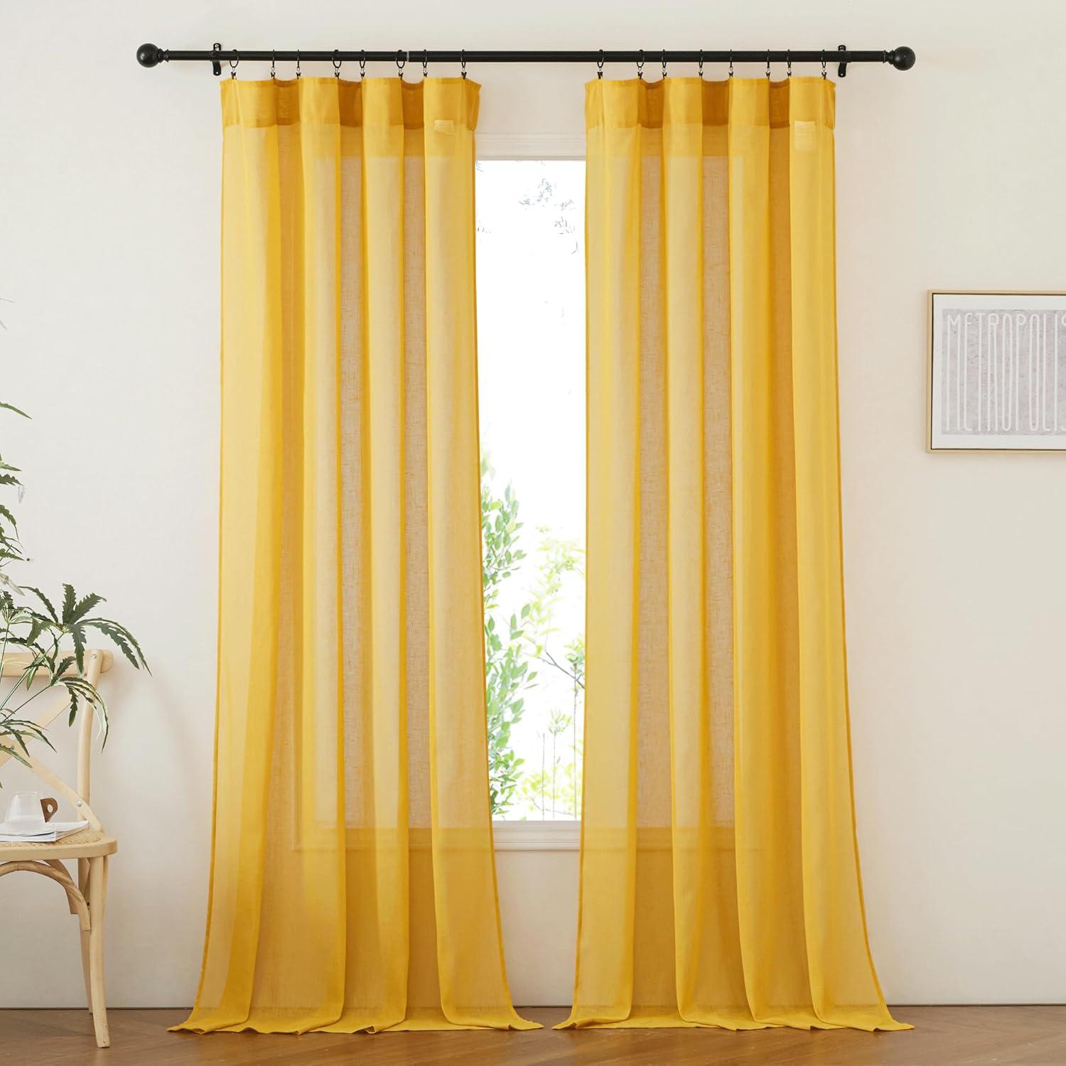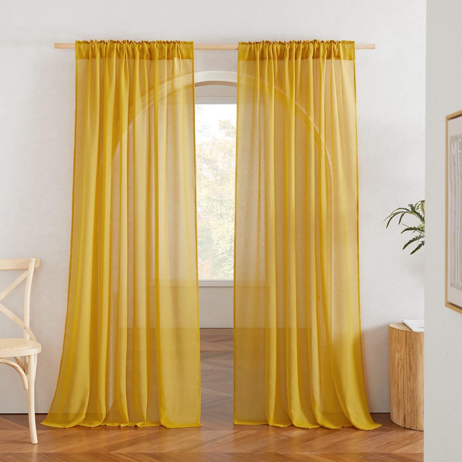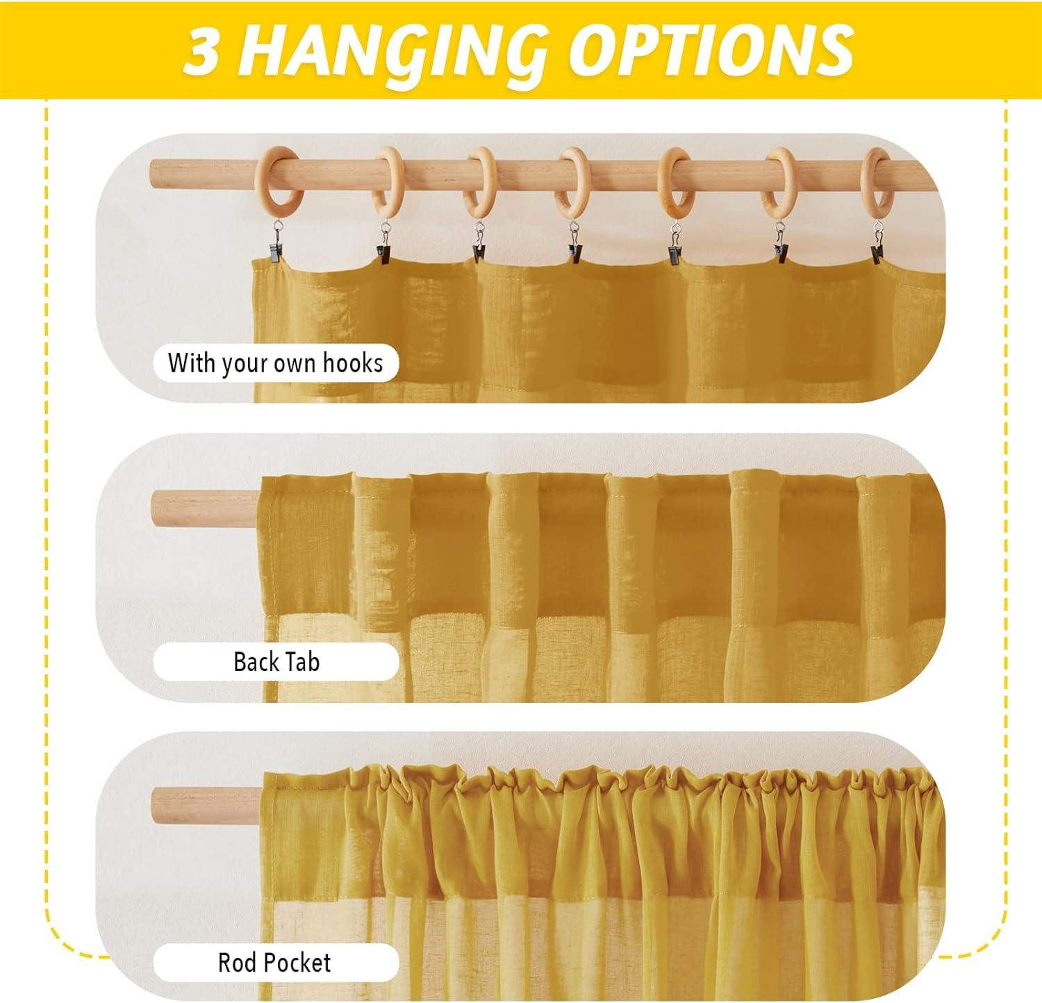 NICETOWN Linen Curtains for Windows 84 inch Length, Rod Pocket & Back Tab Semi Sheer Linen Curtains & Drapes Privacy with Light Through for Bedroom/Living Room, Natural, W52 x L84, 2 Pieces(Desert Yellow)