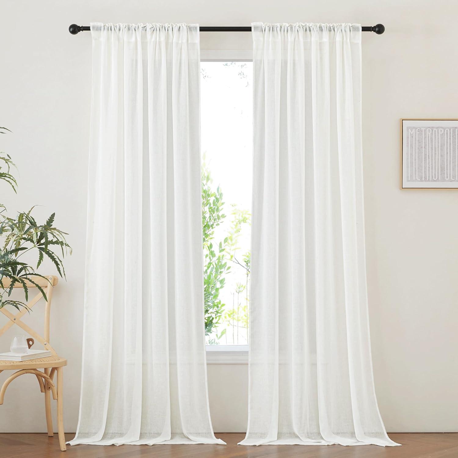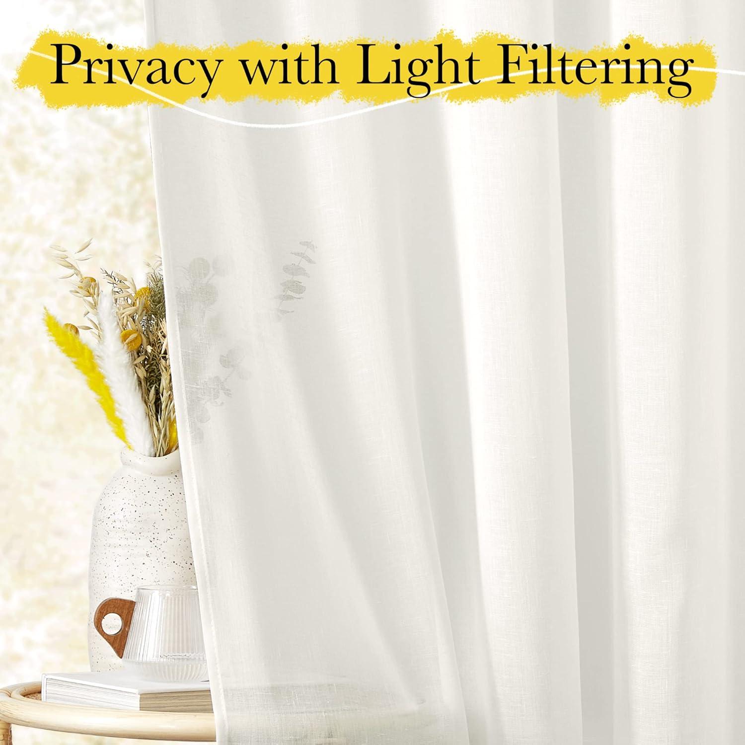 NICETOWN Linen Curtains for Windows 84 inch Length, Rod Pocket & Back Tab Semi Sheer Linen Curtains & Drapes Privacy with Light Through for Bedroom/Living Room, Natural, W52 x L84, 2 Pieces(Ivory)