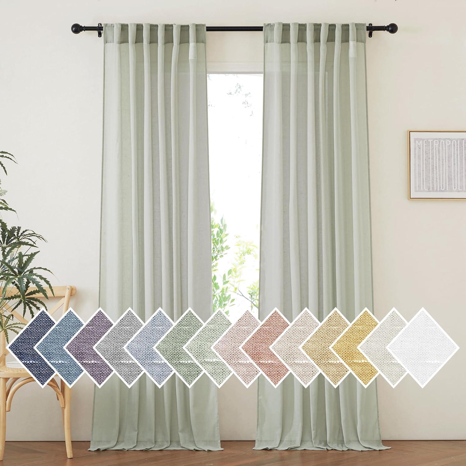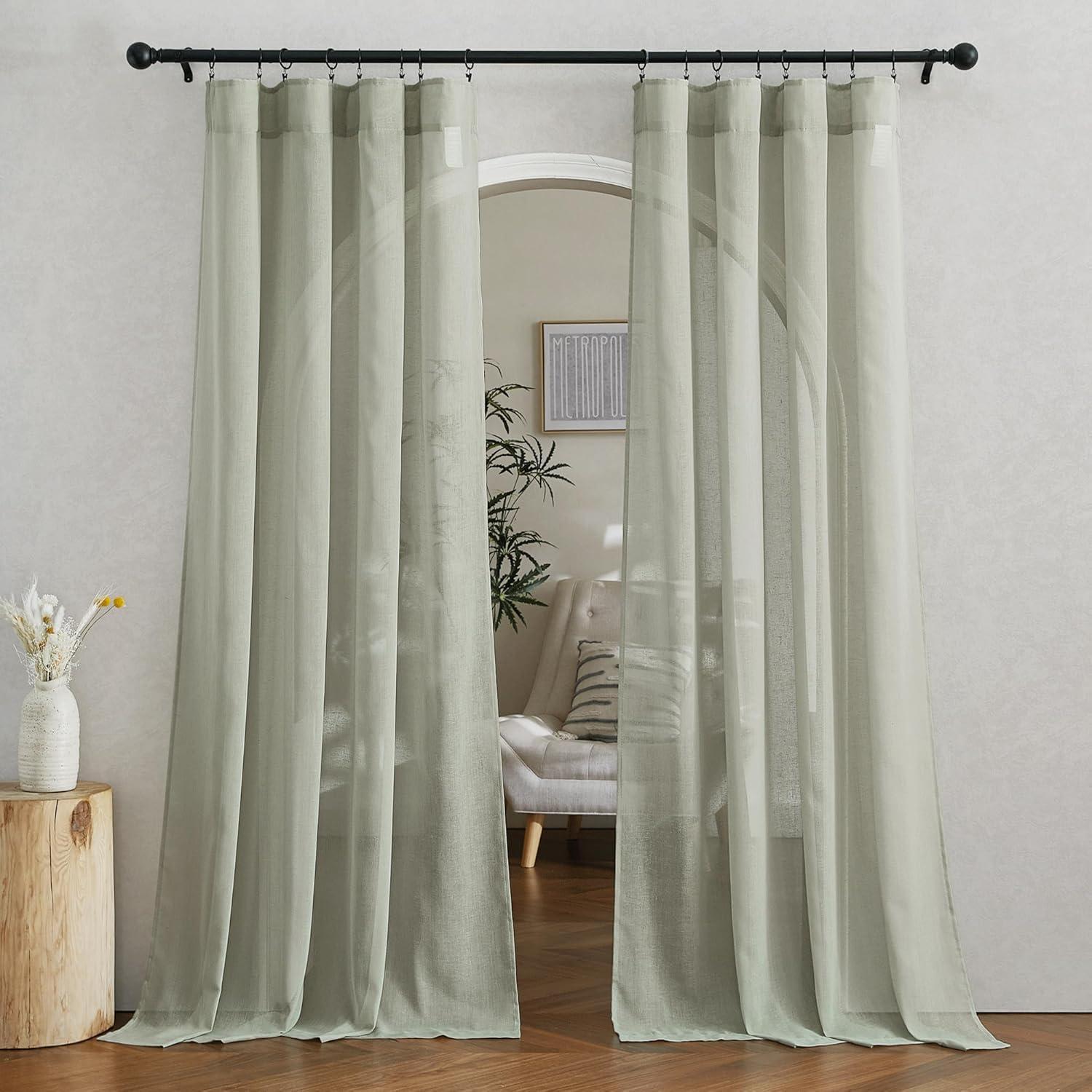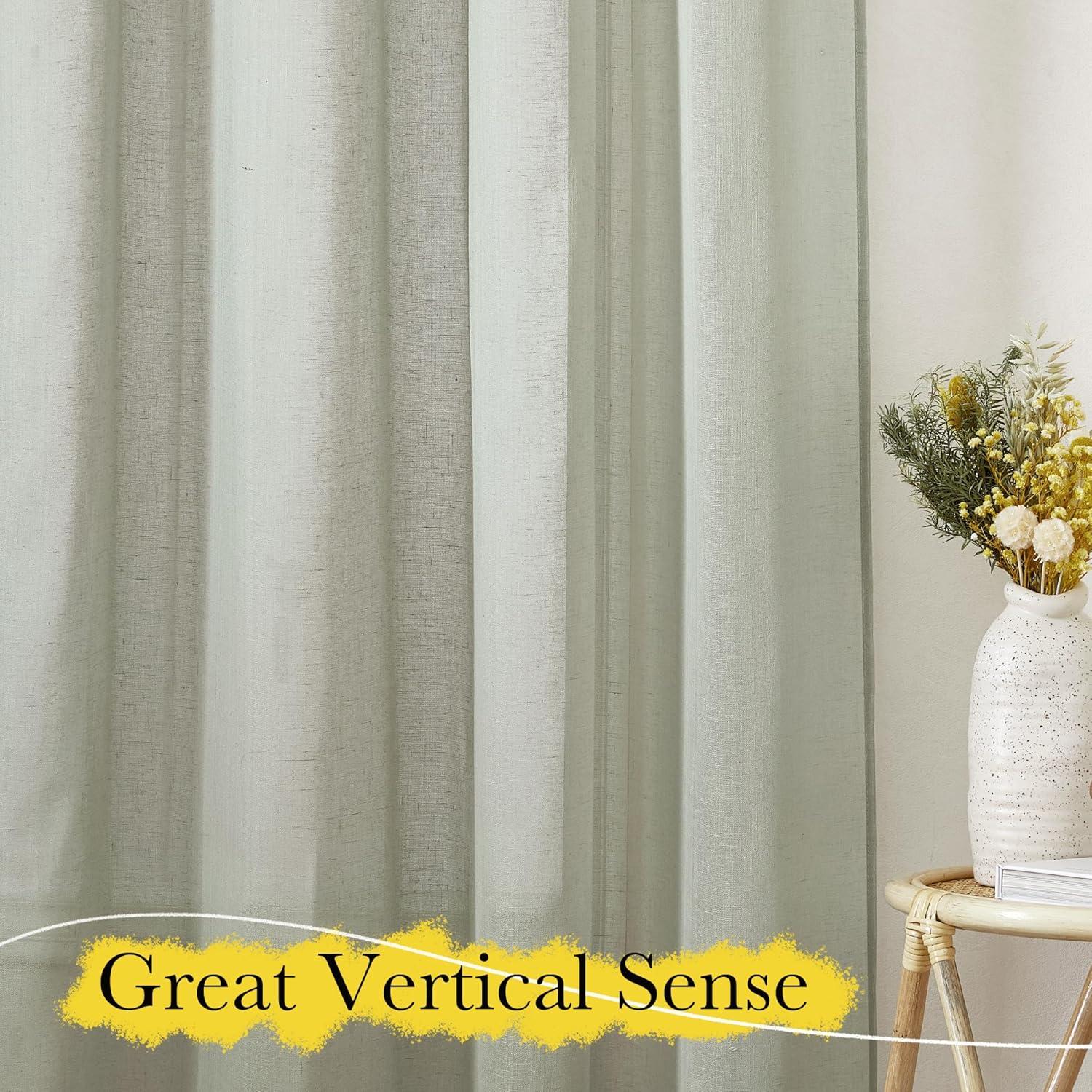 NICETOWN Linen Curtains for Windows 84 inch Length, Rod Pocket & Back Tab Semi Sheer Linen Curtains & Drapes Privacy with Light Through for Bedroom/Living Room, Natural, W52 x L84, 2 Pieces(Sage Green)