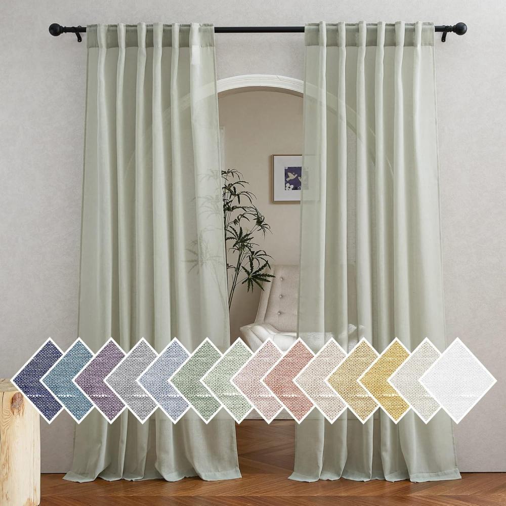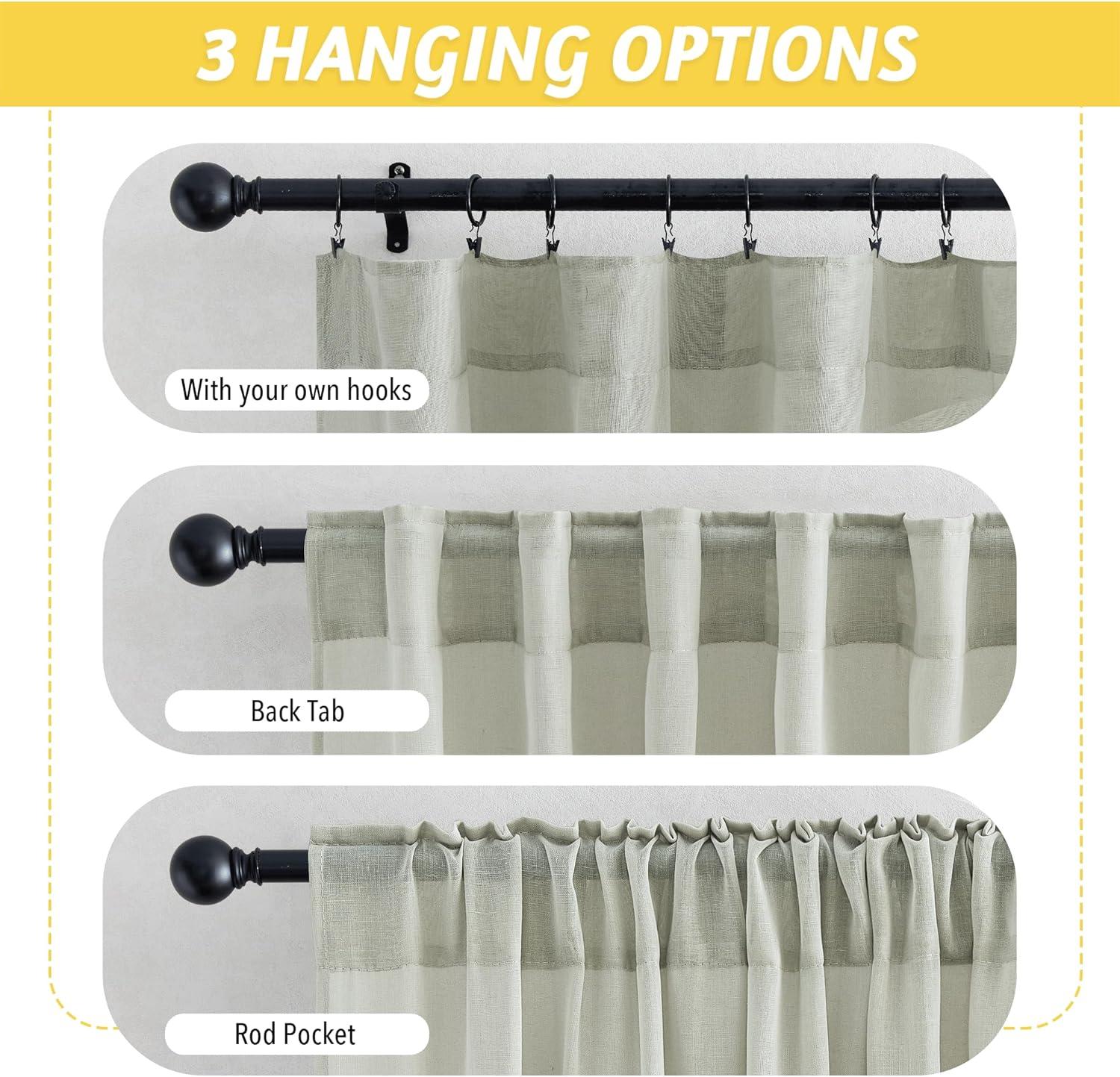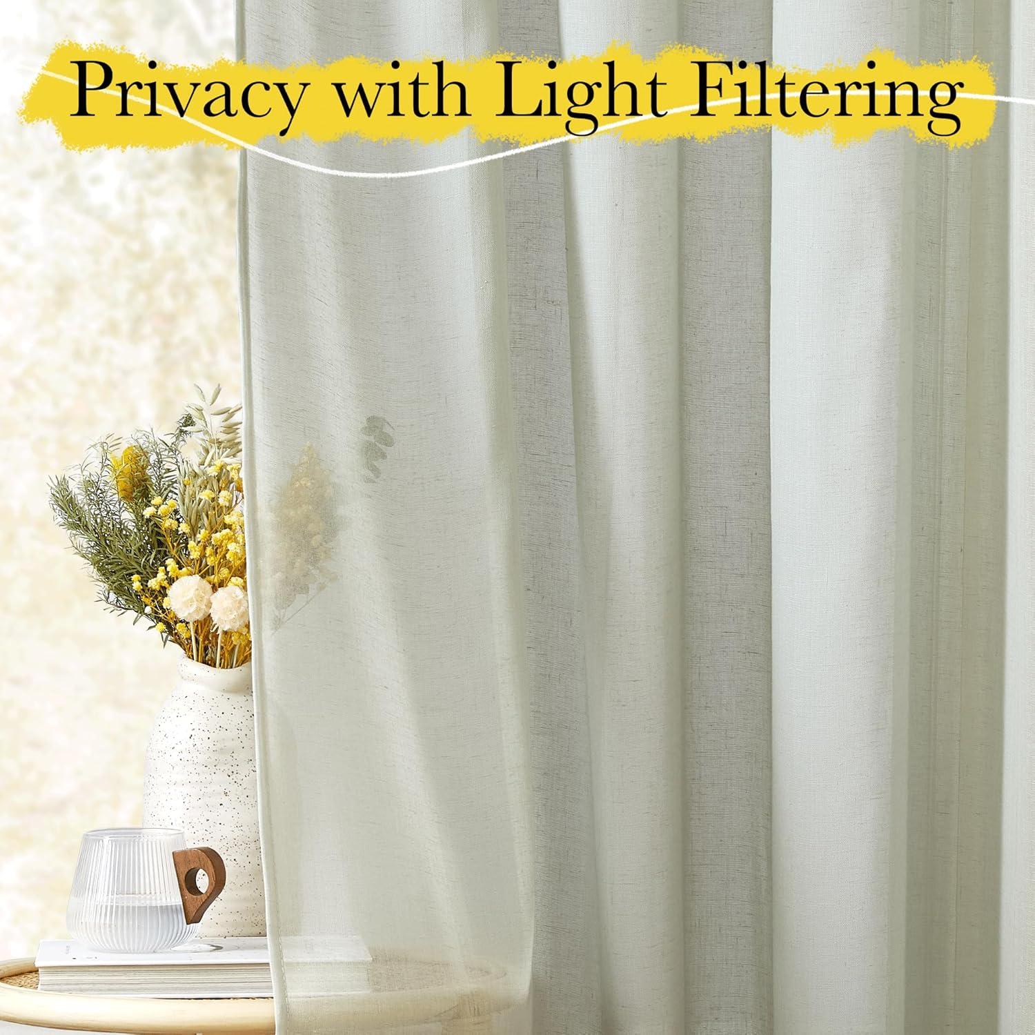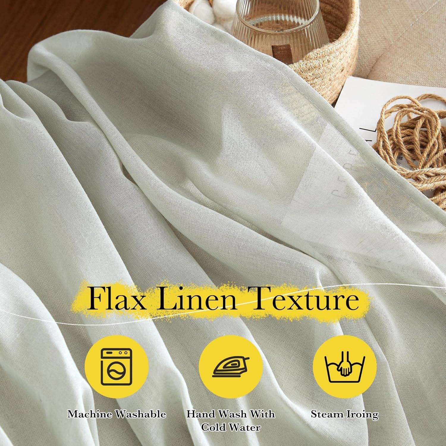 NICETOWN Linen Curtains for Windows 84 inch Length, Rod Pocket & Back Tab Semi Sheer Linen Curtains & Drapes Privacy with Light Through for Bedroom/Living Room, Natural, W52 x L84, 2 Pieces(Sage Green)
