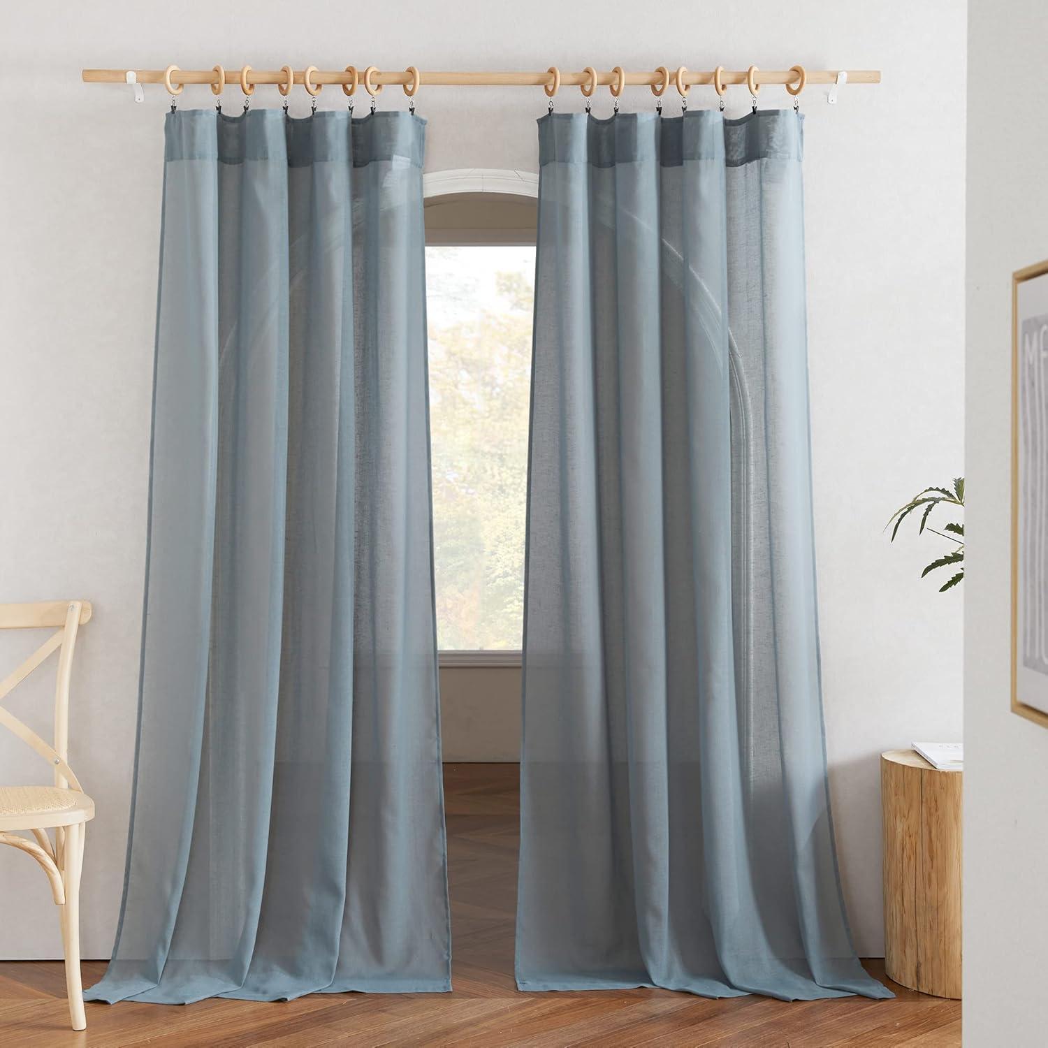 NICETOWN Linen Curtains for Windows 84 inch Length, Rod Pocket & Back Tab Semi Sheer Linen Curtains & Drapes Privacy with Light Through for Bedroom/Living Room, Natural, W52 x L84, 2 Pieces(Smoke Blue)