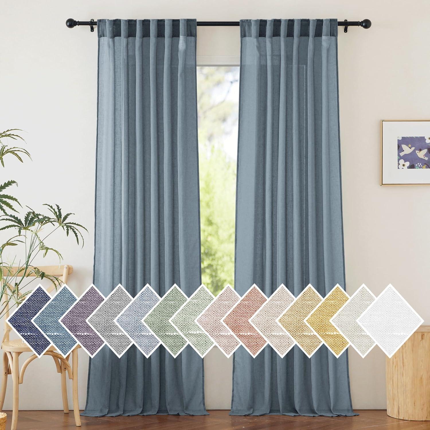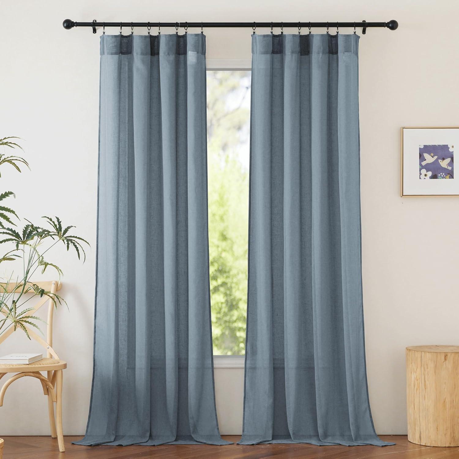 NICETOWN Linen Curtains for Windows 84 inch Length, Rod Pocket & Back Tab Semi Sheer Linen Curtains & Drapes Privacy with Light Through for Bedroom/Living Room, Natural, W52 x L84, 2 Pieces(Smoke Blue)