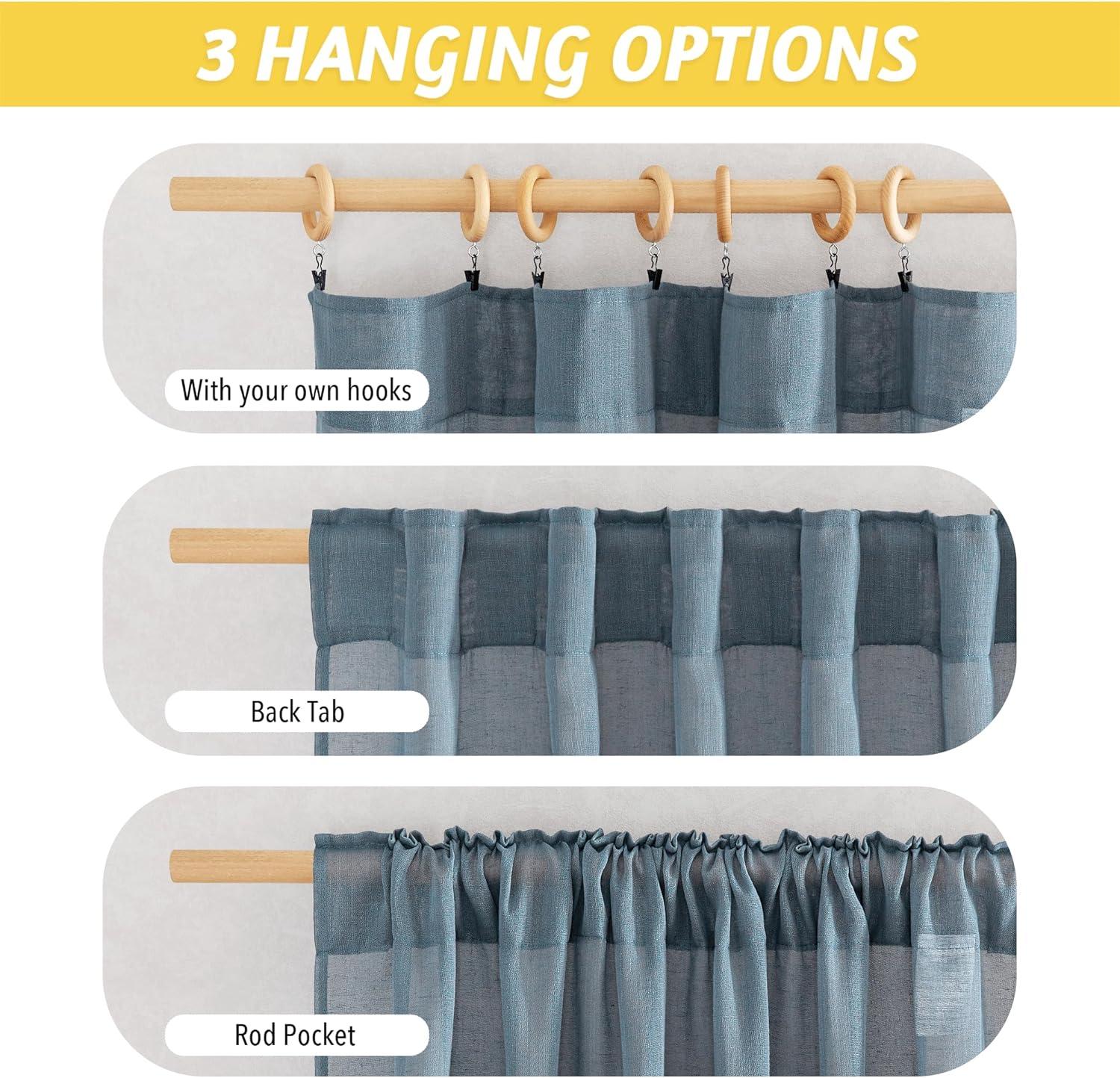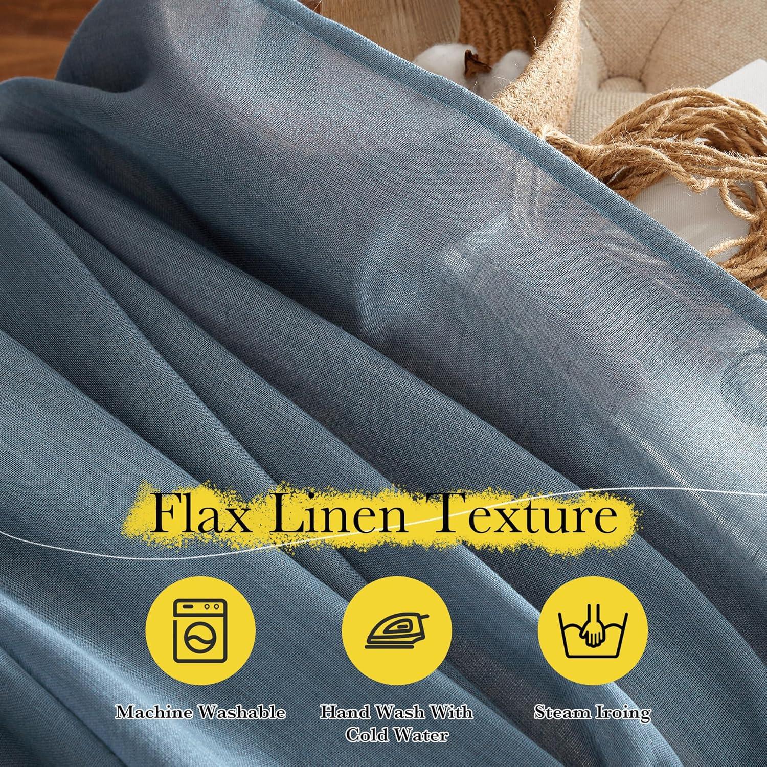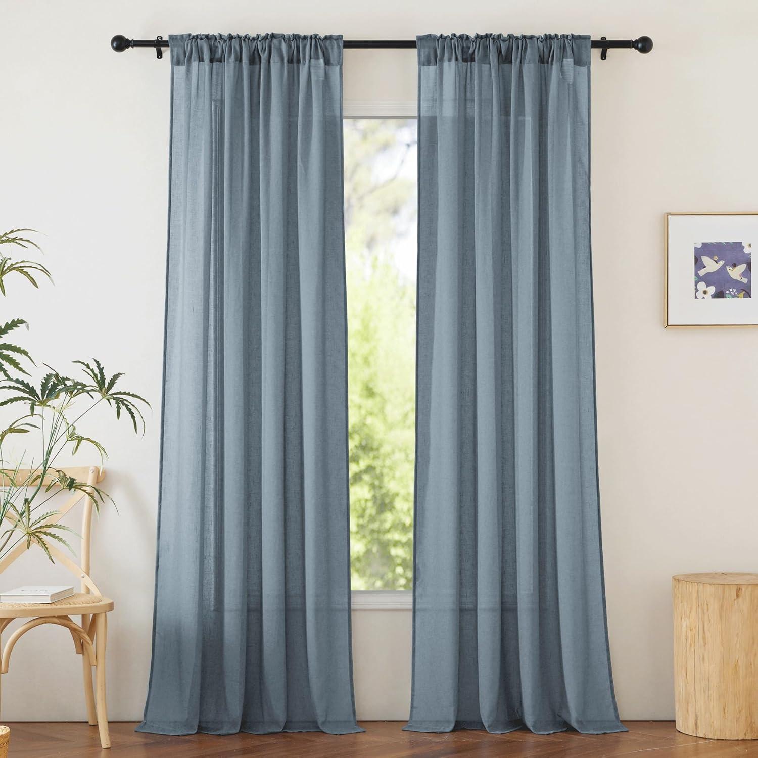 NICETOWN Linen Curtains for Windows 84 inch Length, Rod Pocket & Back Tab Semi Sheer Linen Curtains & Drapes Privacy with Light Through for Bedroom/Living Room, Natural, W52 x L84, 2 Pieces(Stone Blue)