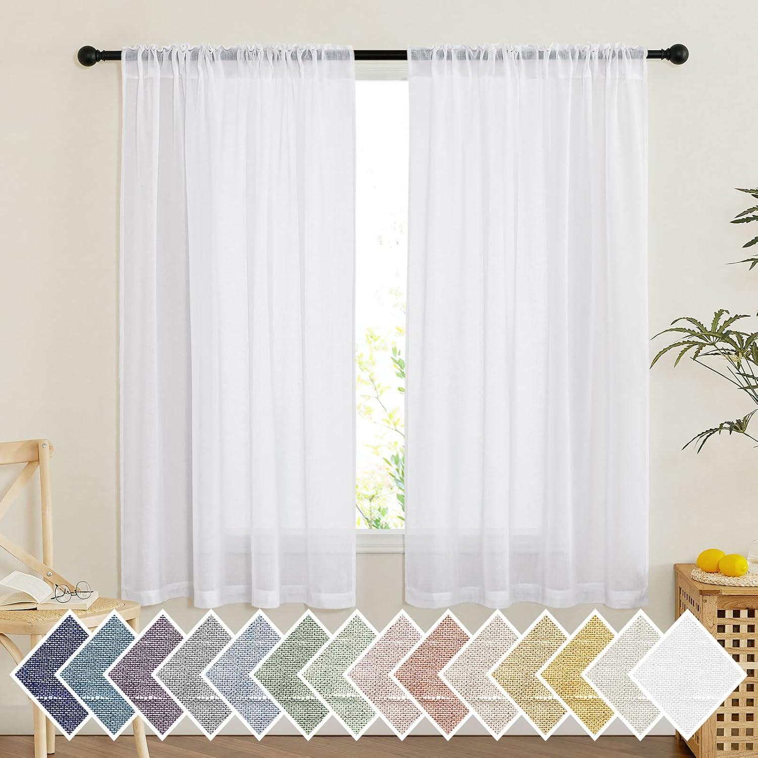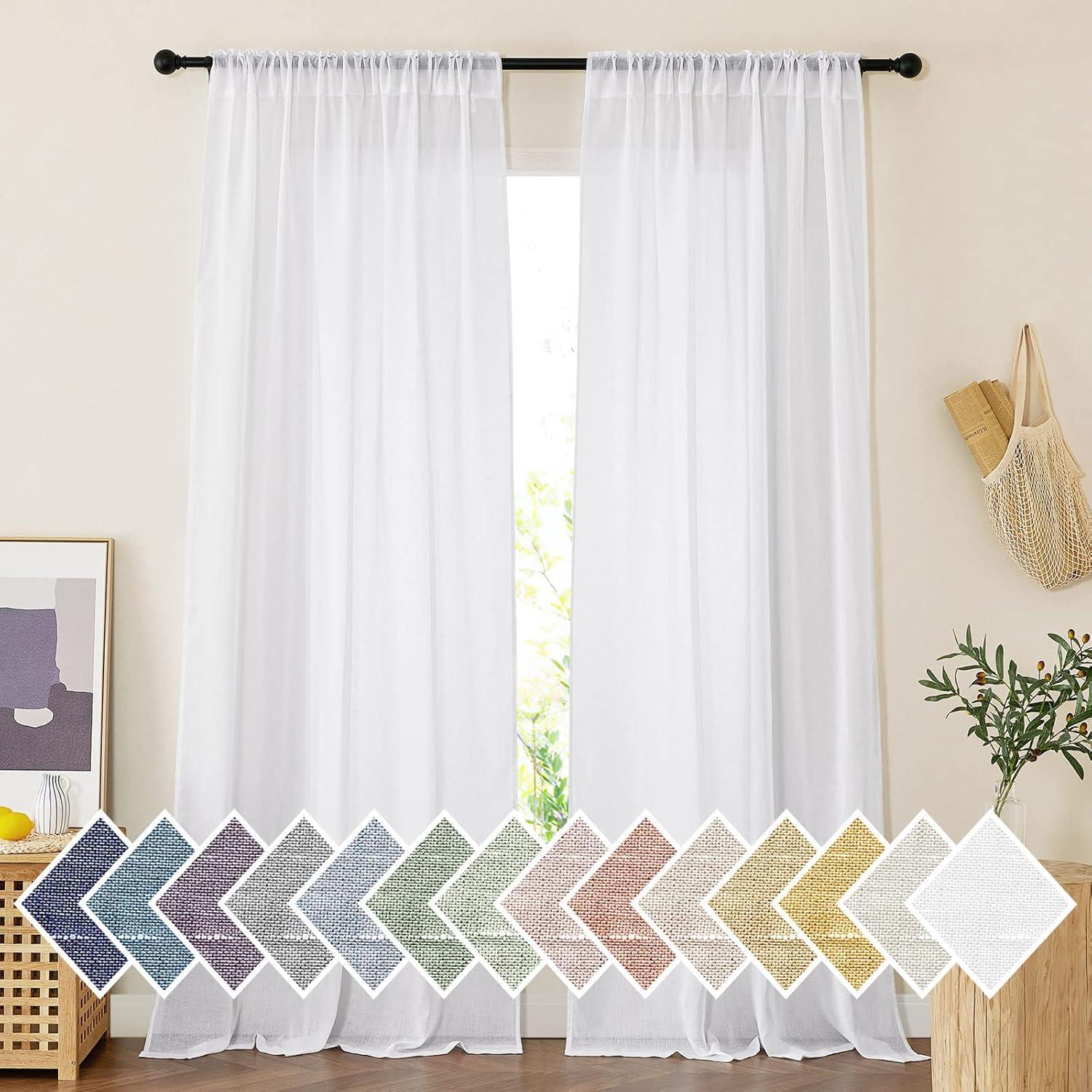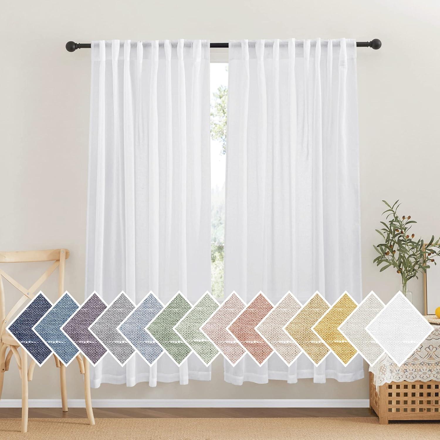 NICETOWN Linen Curtains for Windows 84 inch Length, Rod Pocket & Back Tab Semi Sheer Linen Curtains & Drapes Privacy with Light Through for Bedroom/Living Room, Natural, W52 x L84, 2 Pieces(White)