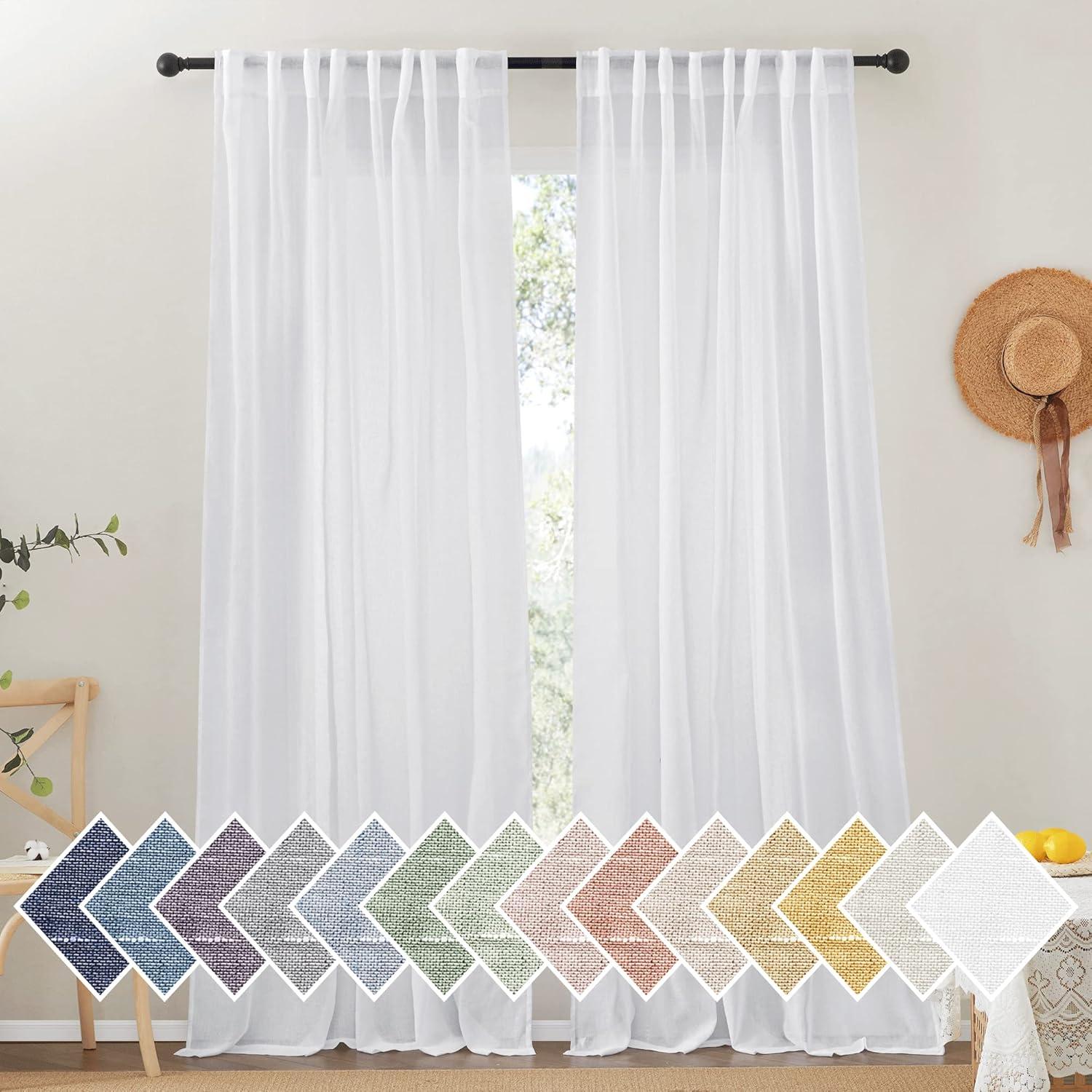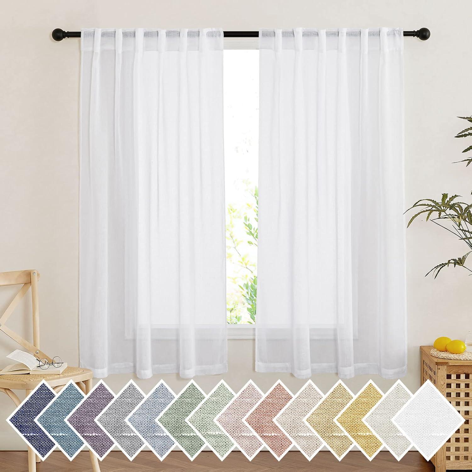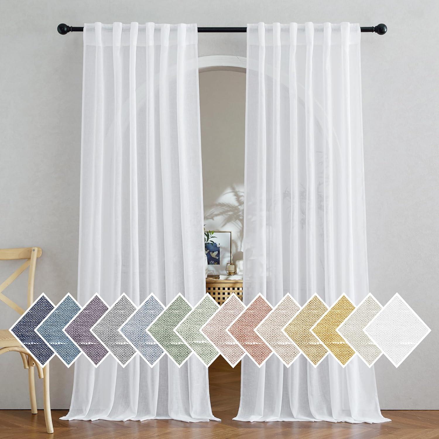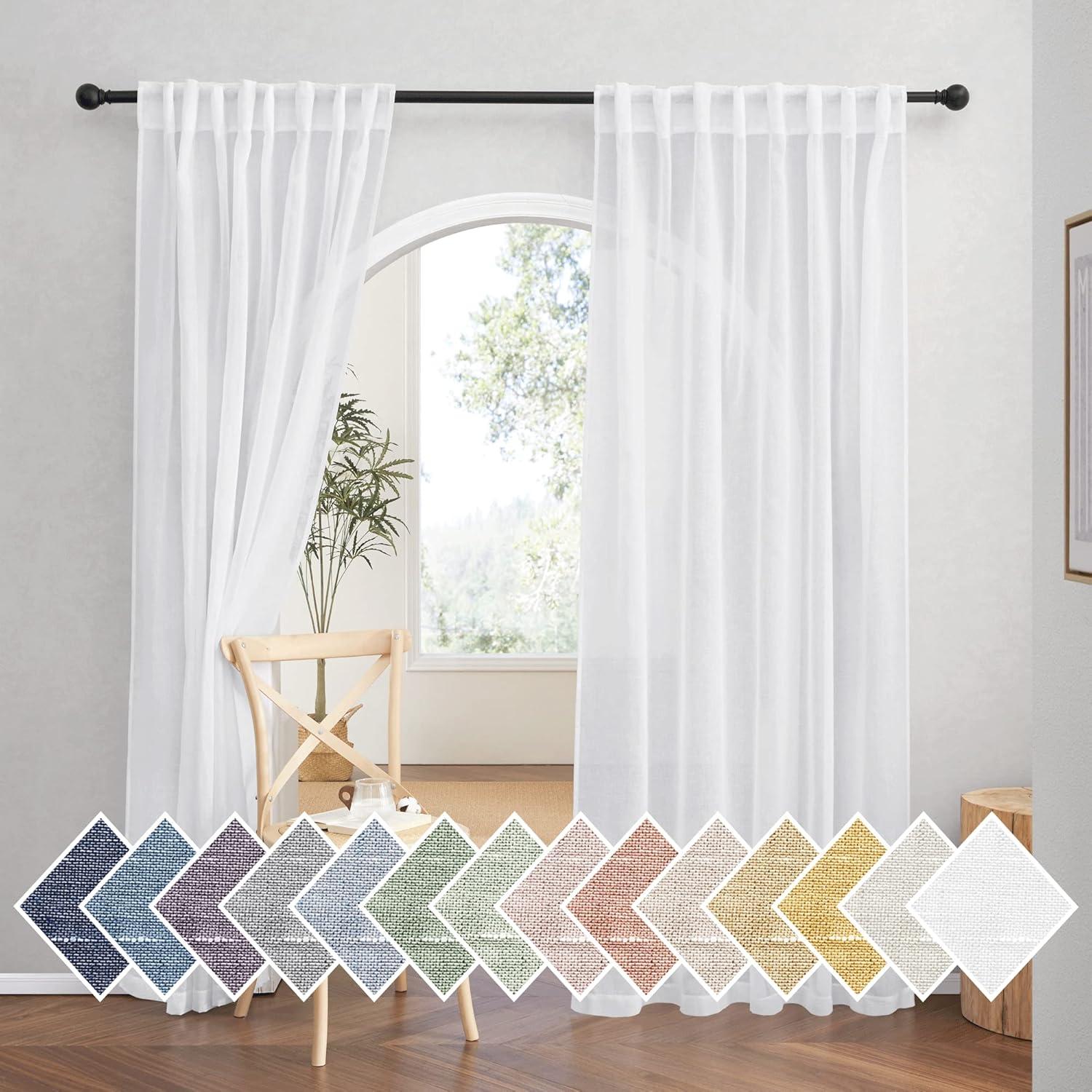 NICETOWN Linen Curtains for Windows 84 inch Length, Rod Pocket & Back Tab Semi Sheer Linen Curtains & Drapes Privacy with Light Through for Bedroom/Living Room, Natural, W52 x L84, 2 Pieces(White)