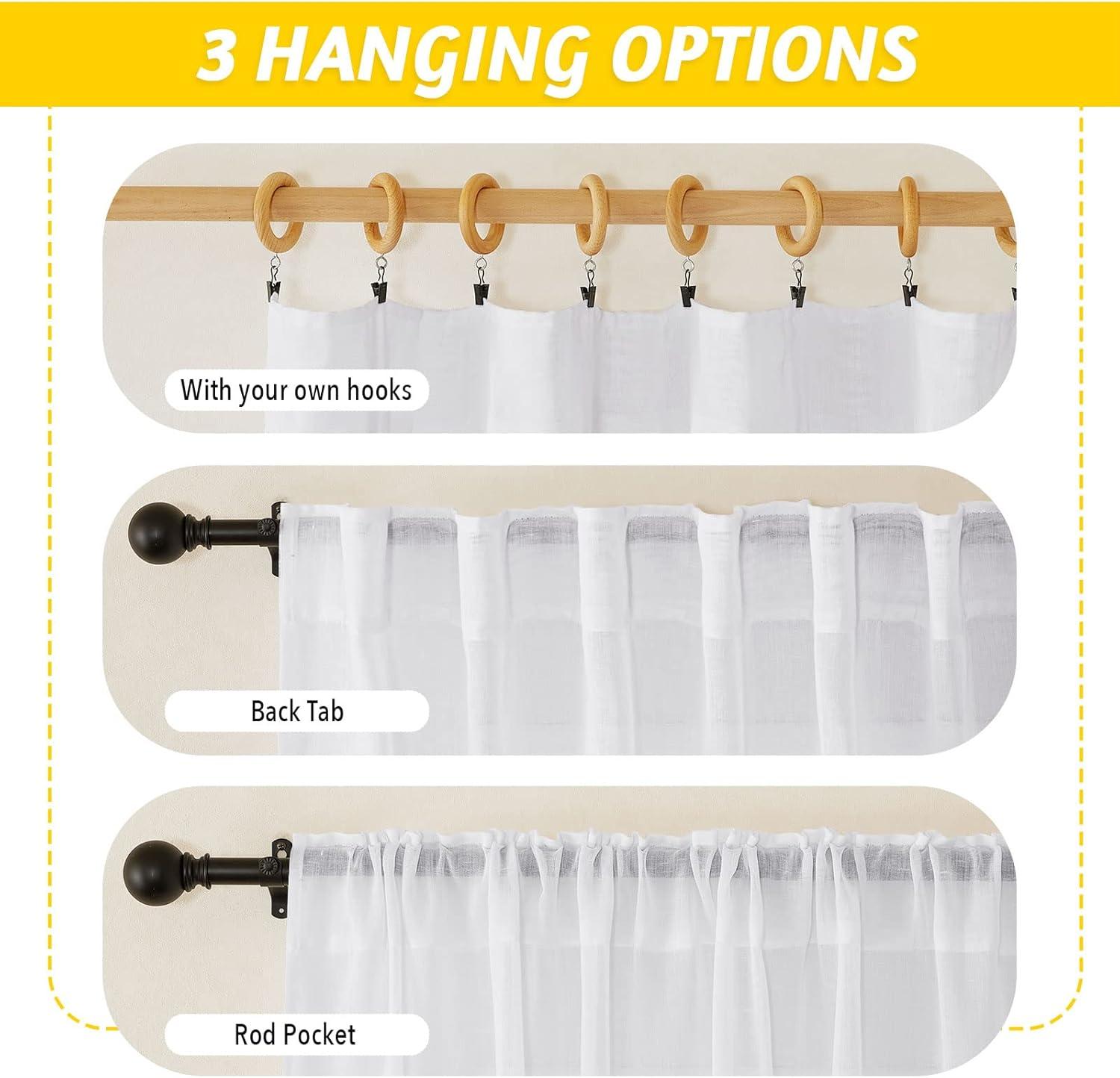 Ready Made: The package includes 2 panels of semi sheer linen curtain drapes, each measures 52″W (104″W for pair), with a rod pocket & Back tab design which 2 inch inner Diam to fit most of the curtain rods.