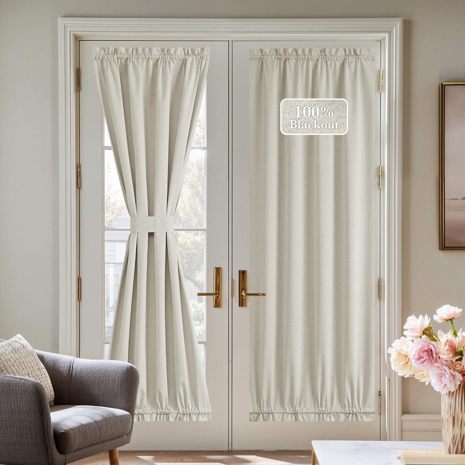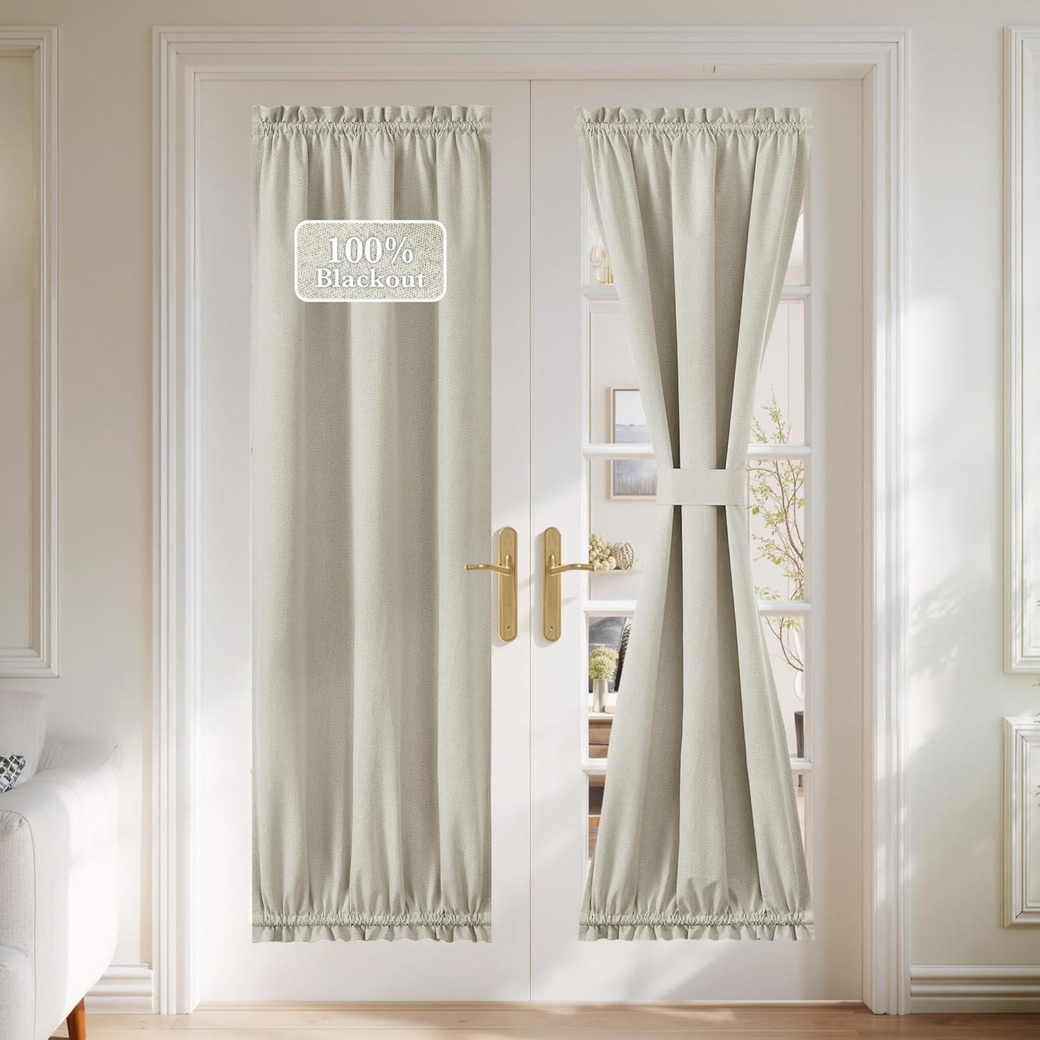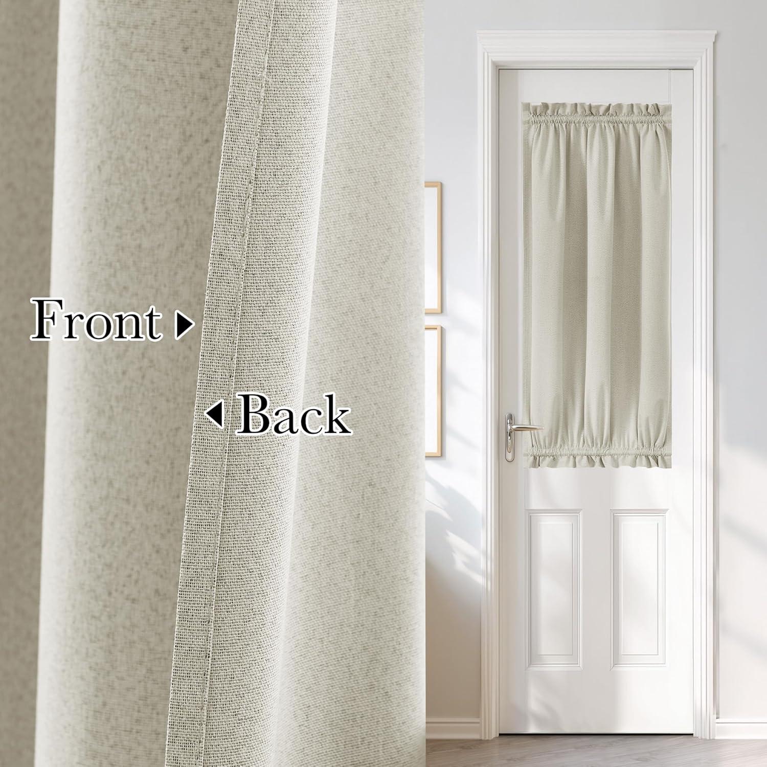 NICETOWN Linen Door Curtain for Windows, 100% Blackout French Door Curtains for Privacy, Thermal Insulated Window Covering for Bedroom Living Room (Stone Blue, 30" W x 72" L, 1 Panel)(Light Beige)