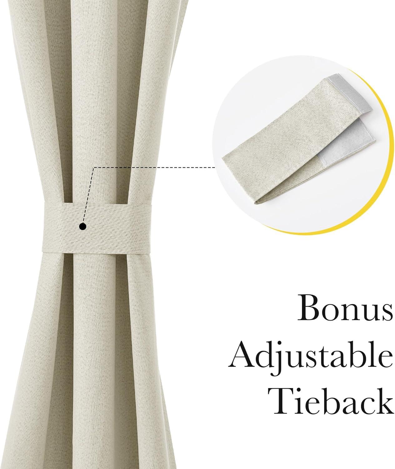 imageNICETOWN Linen Door Curtain for Windows 100 Blackout French Door Curtains for Privacy Thermal Insulated Window Covering for Bedroom Living Room Stone Blue 30quot W x 72quot L 1 PanelLight Beige