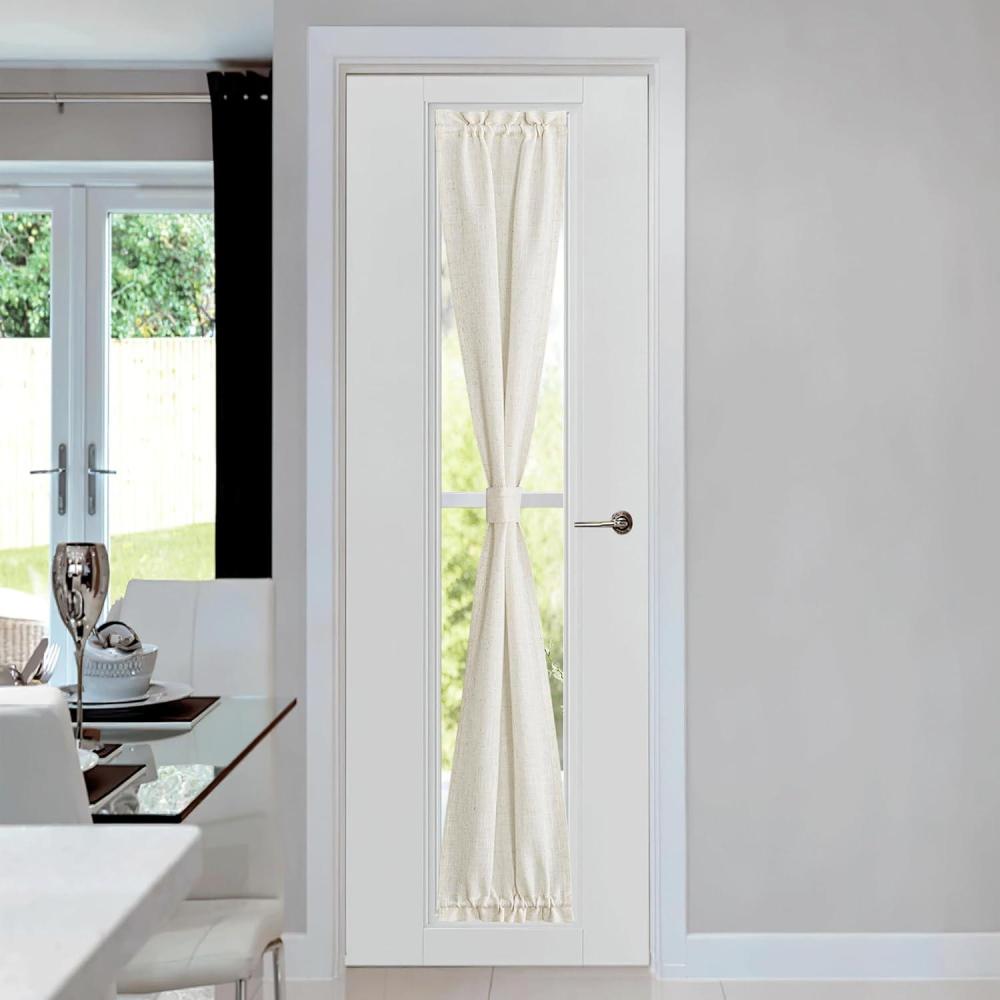 NICETOWN Linen Textured Door Curtain - White Sidelight Panel Curtain Semi Sheer French Front Door Curtain with Tieback for Kitchen, 30 inches W x 40 inches L, Single Panel(Linen)